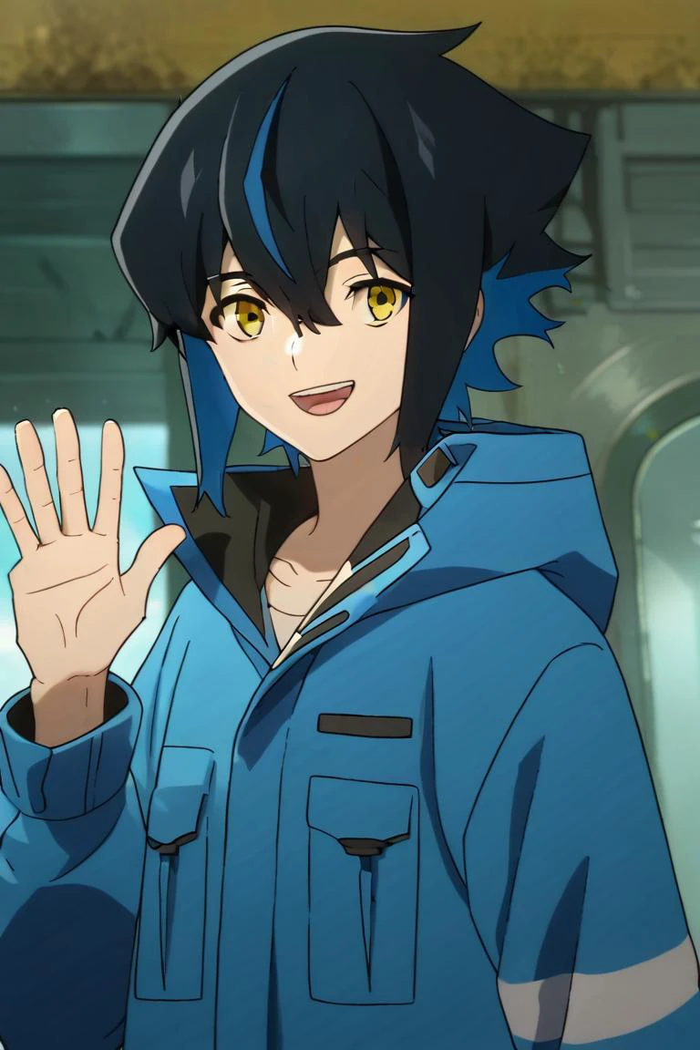 Hallelujah,blue hair,black hair,yellow eyes,multicolored hair,two-tone hair,streaked hair,hair between eyes,bangs,short hair,