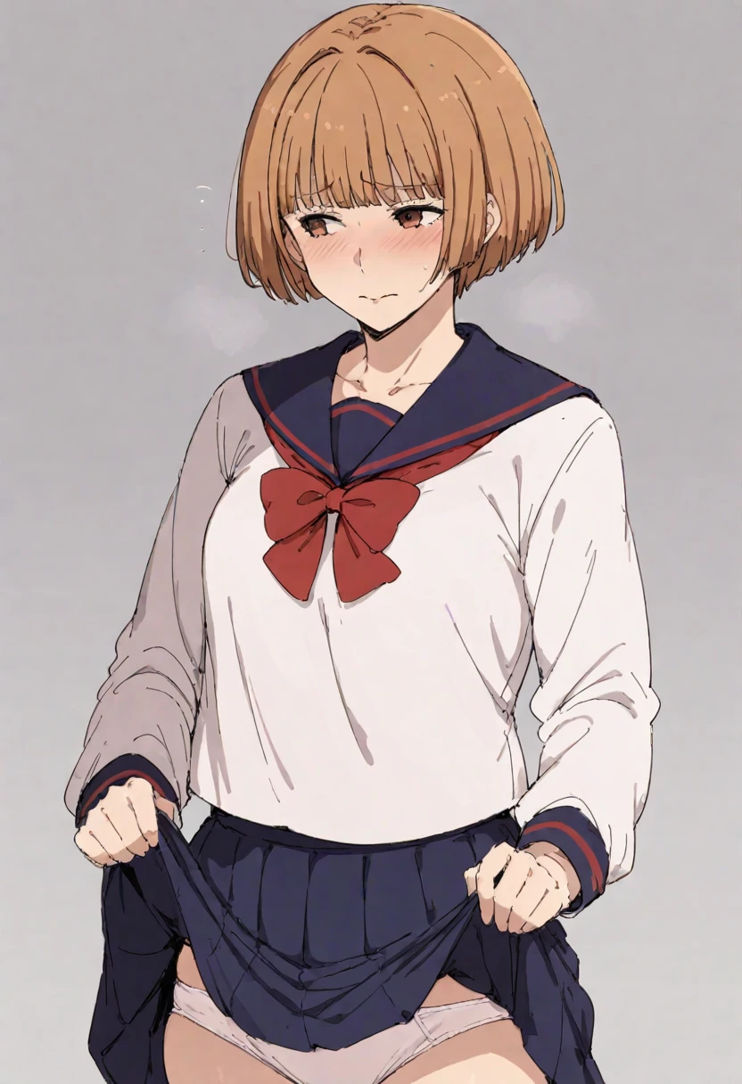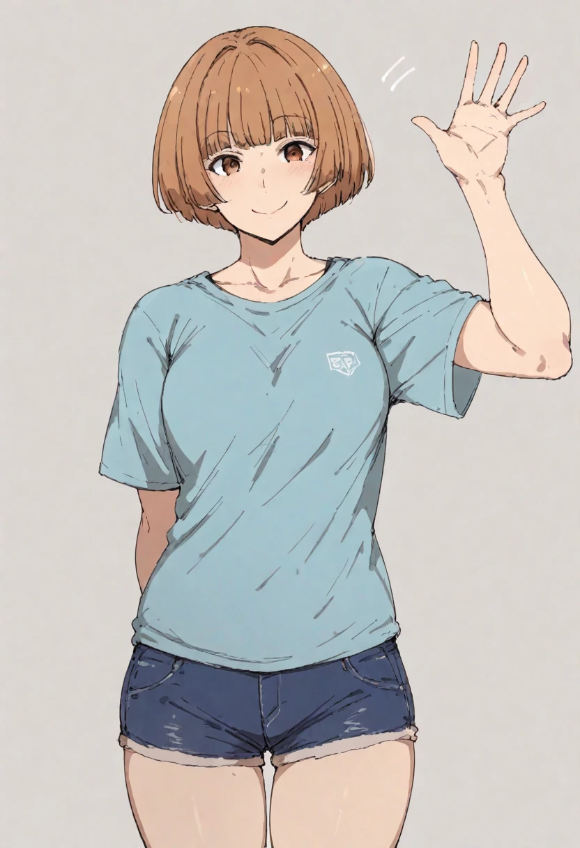 1girl,Katsuta_Hanako,light brown hair,short hair, bob cut,brown eyes,medium breasts