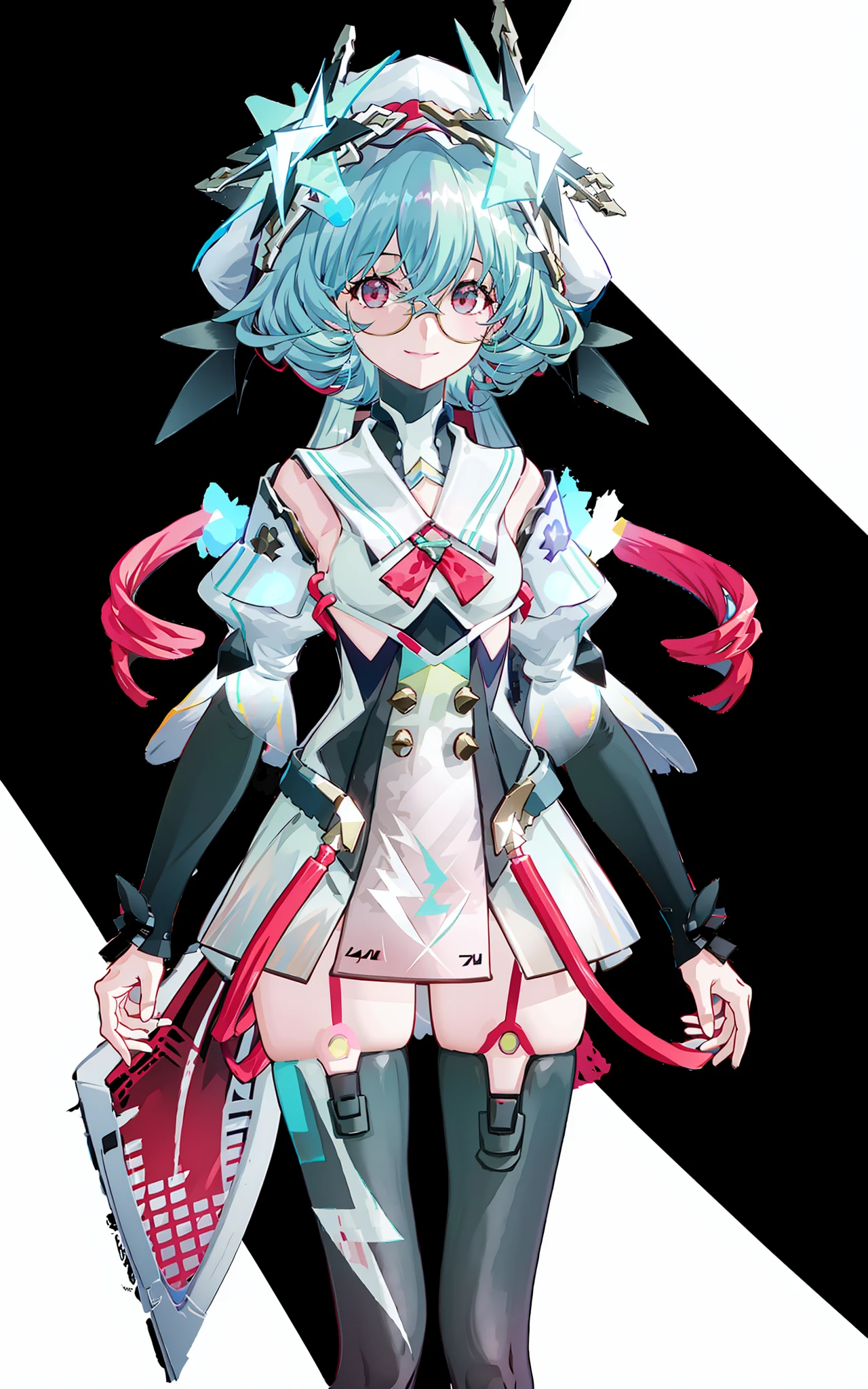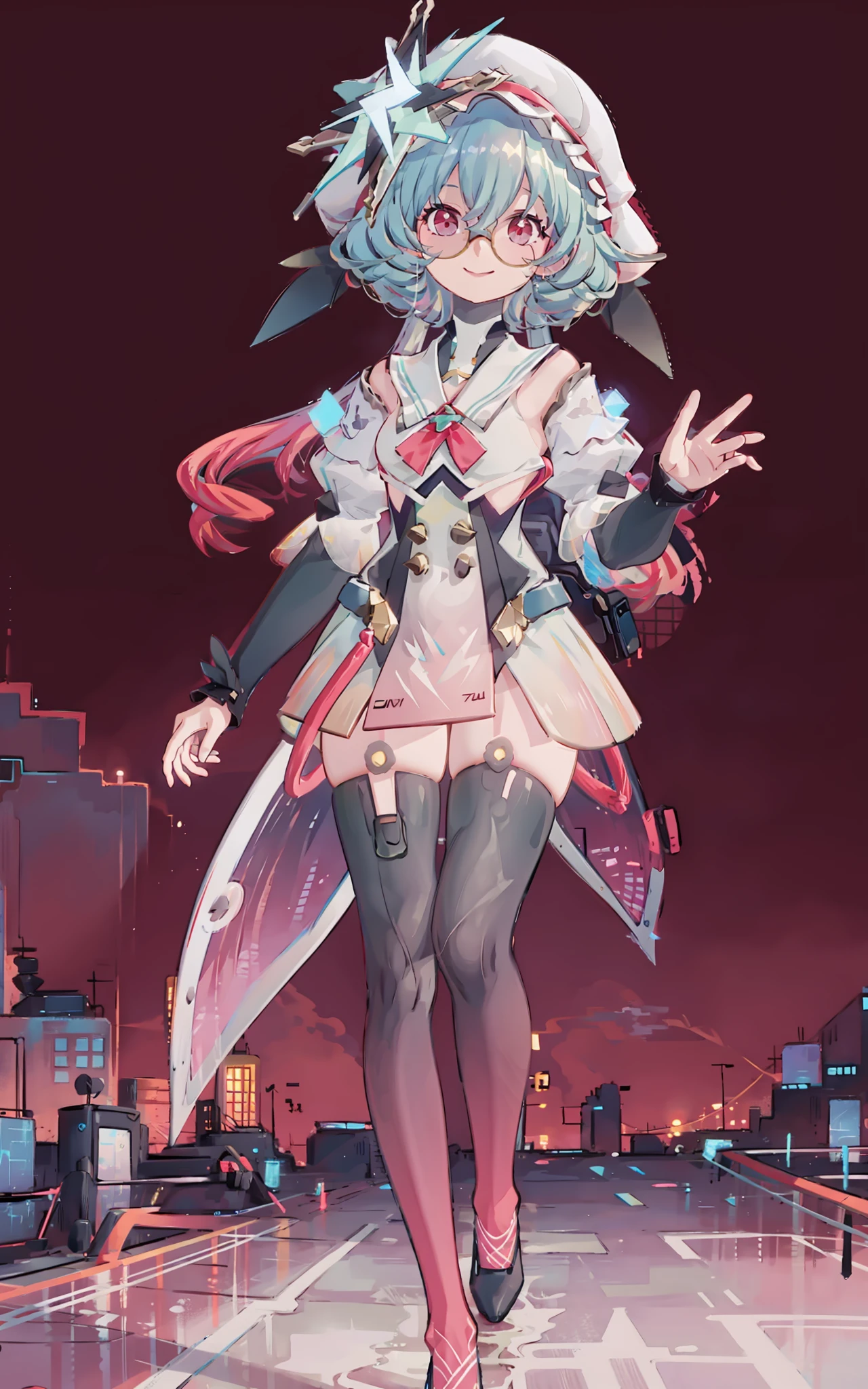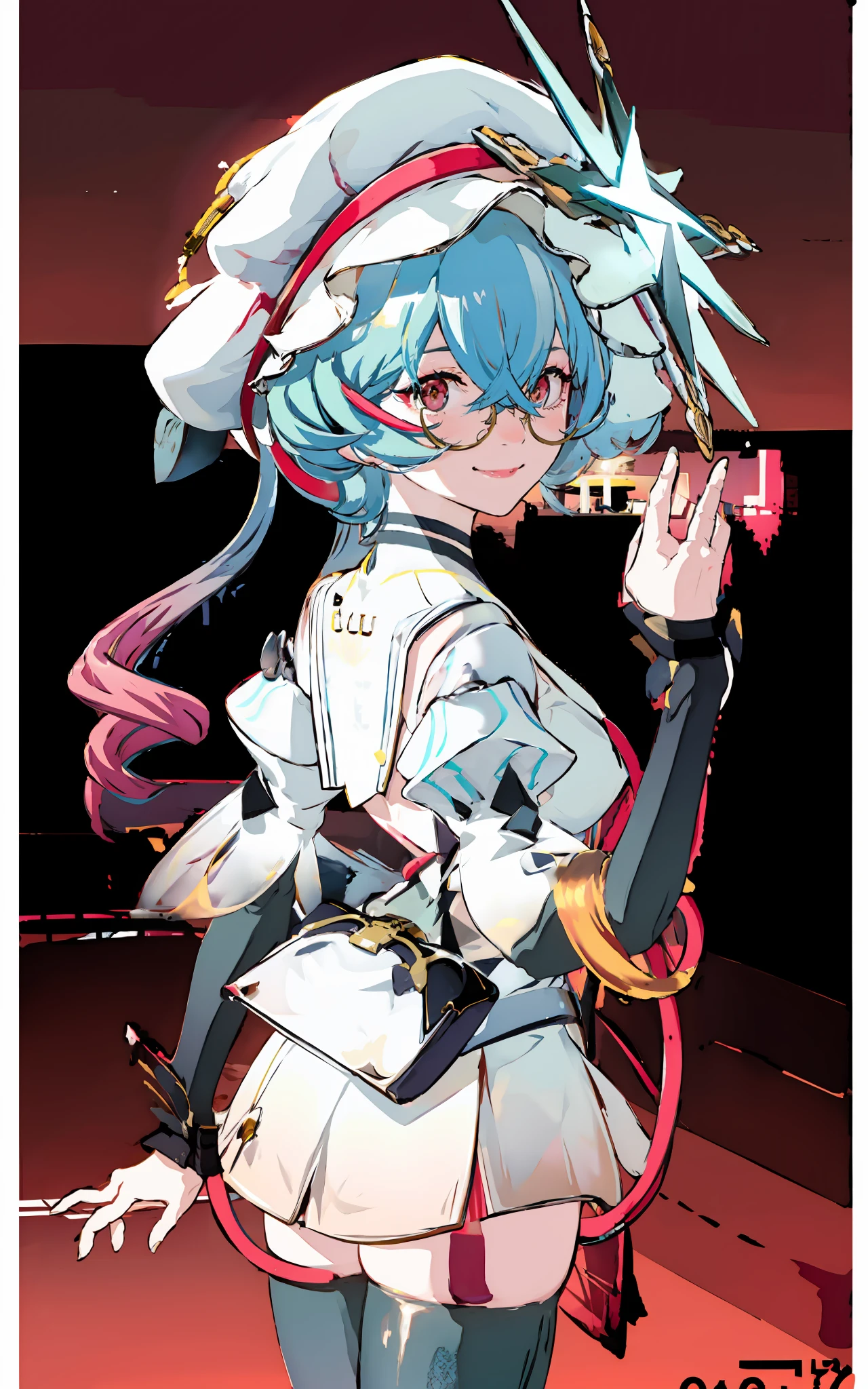 推荐添加 glasses, thighhighs, blue hair, hat等tag,推荐权重:0.75~0.9,其他权重也可尝试。