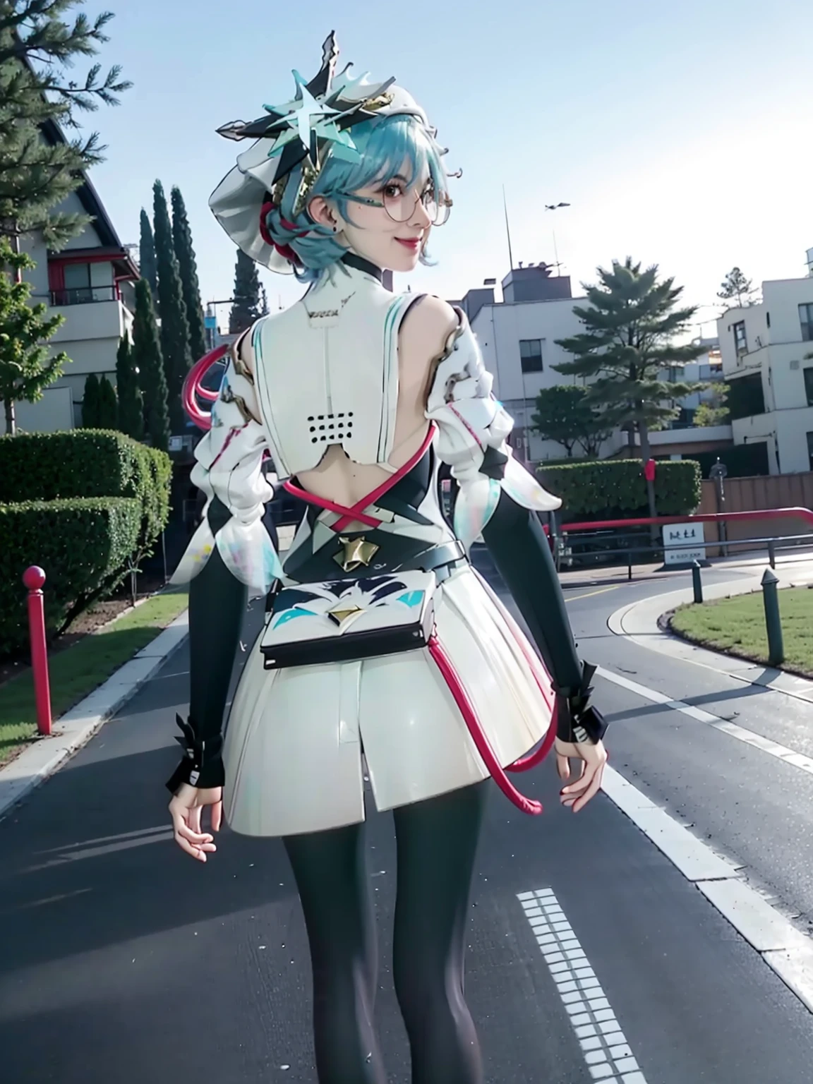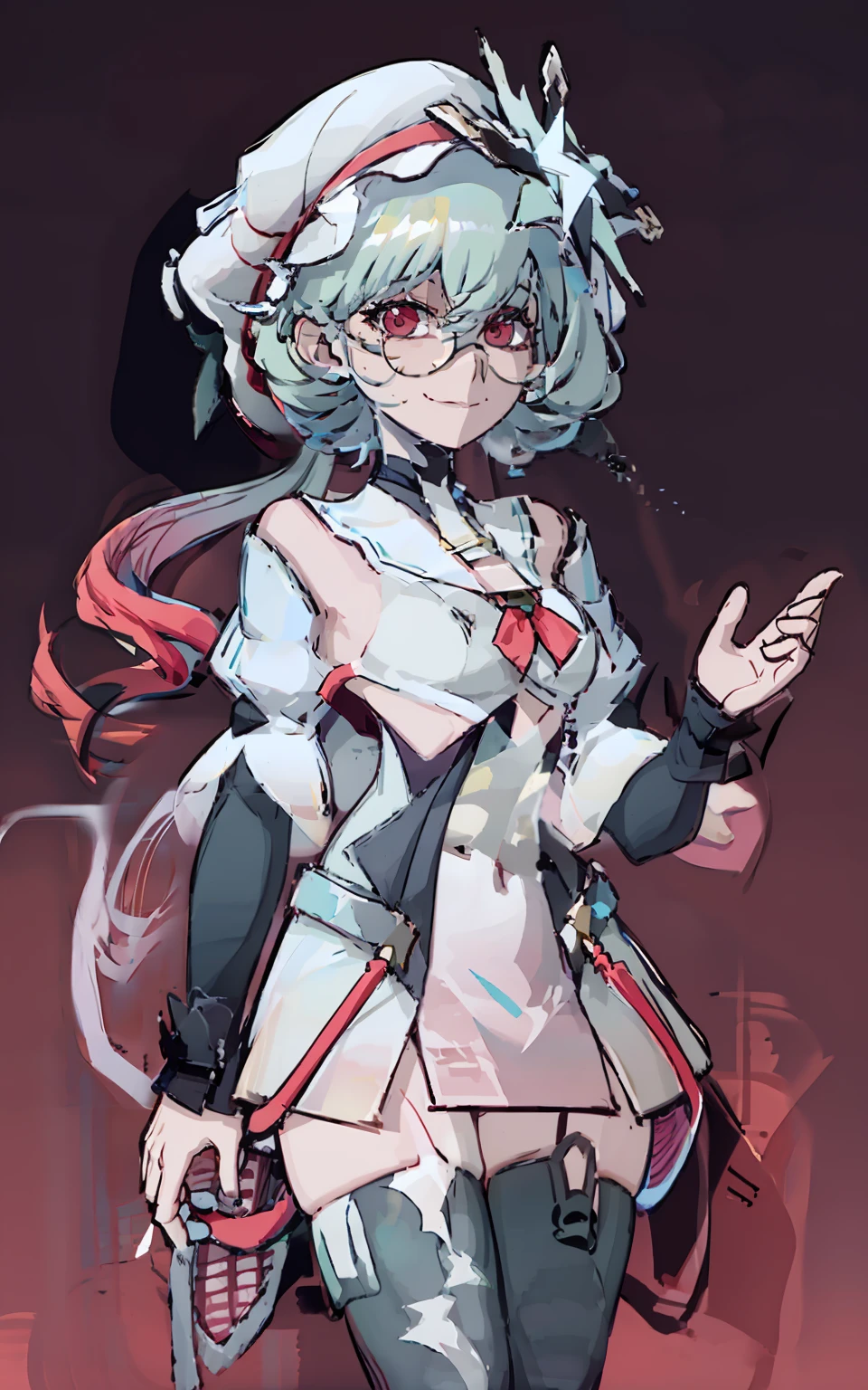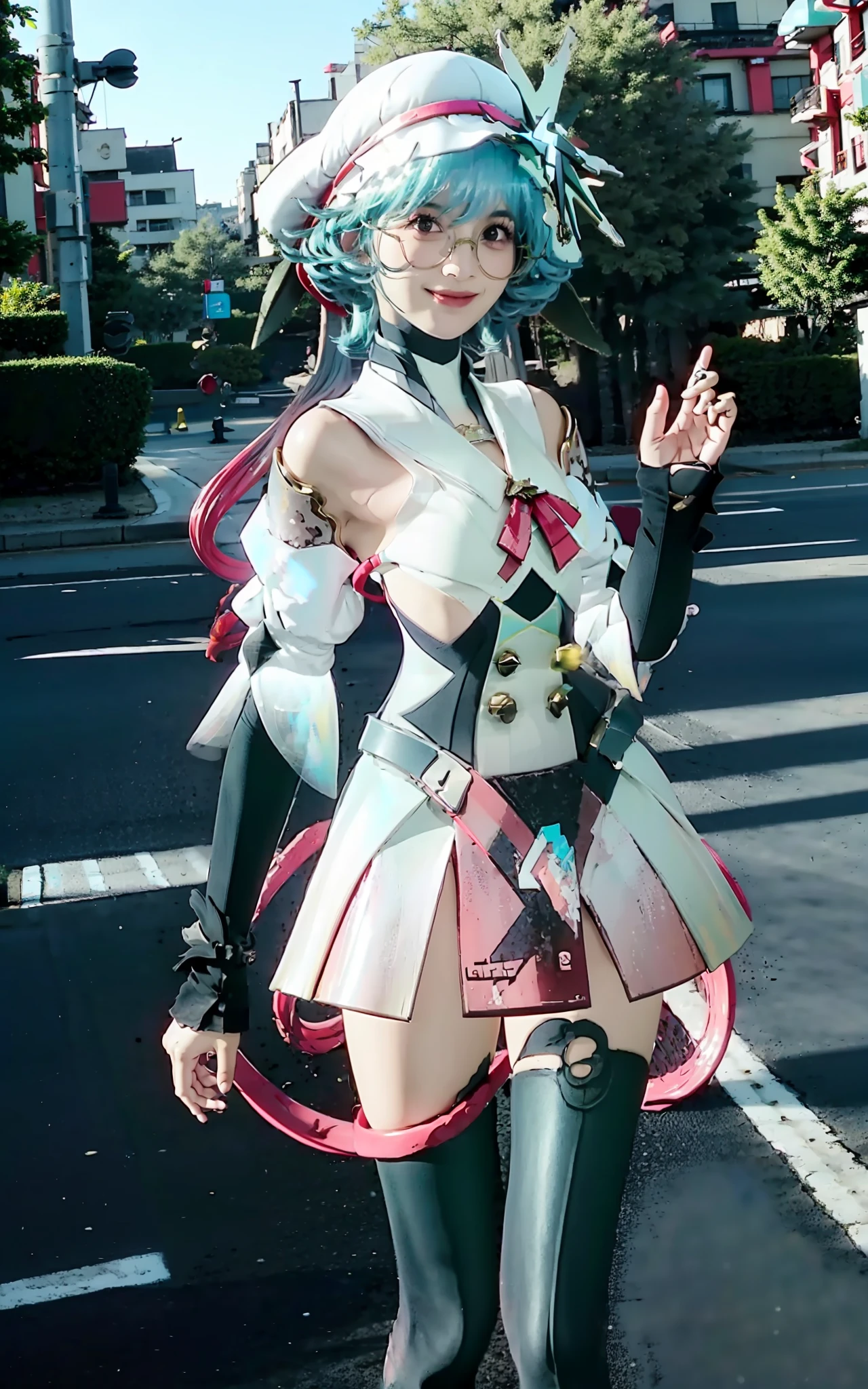 推荐添加 glasses, thighhighs, blue hair, hat等tag,推荐权重:0.75~0.9,其他权重也可尝试。