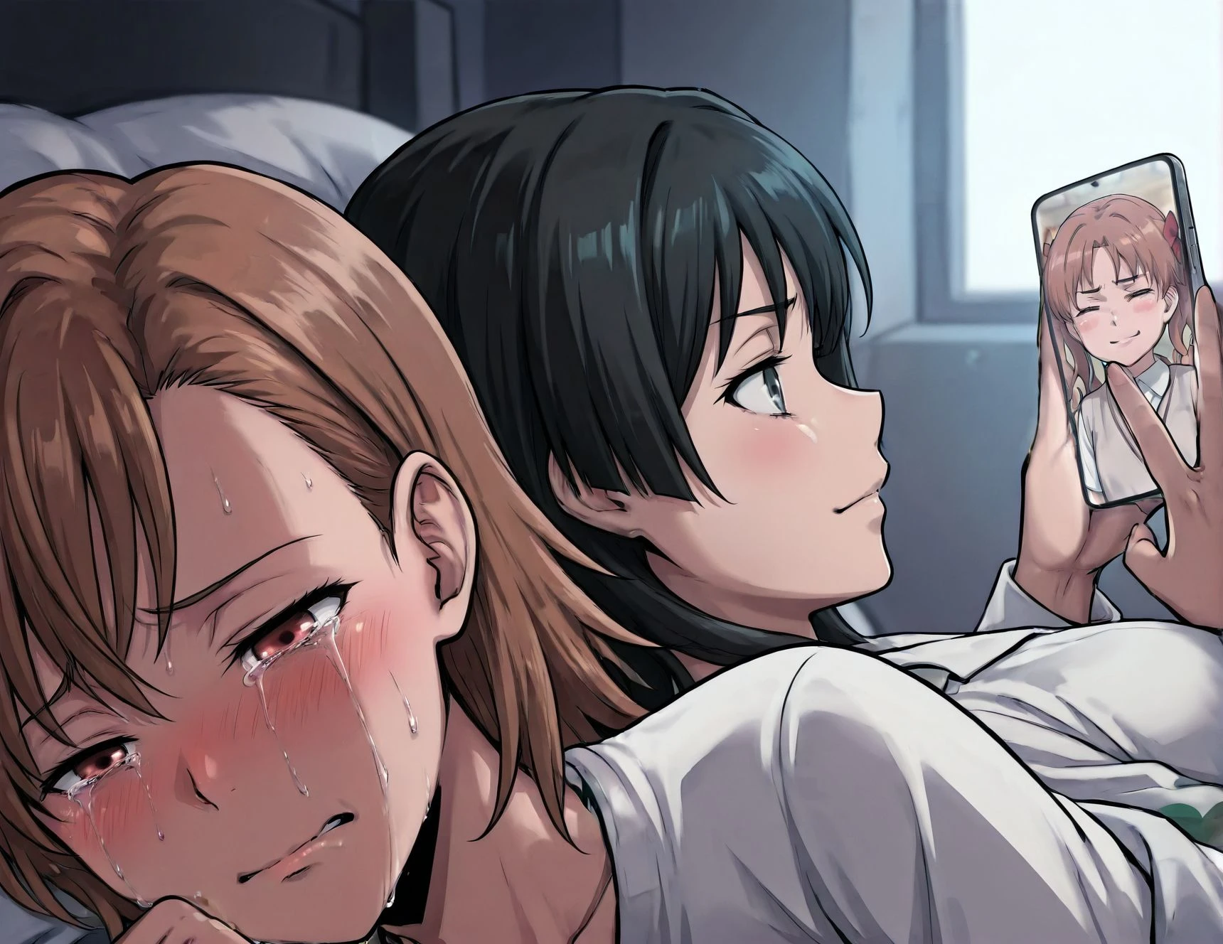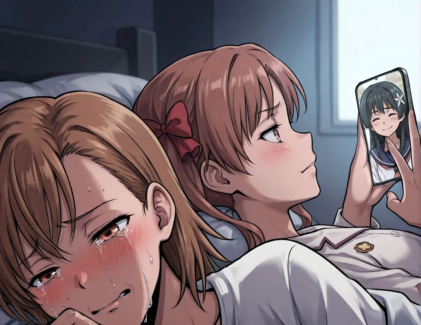 girl crying, tears, sweating, flushed face, red eyes, blushing, emotional, jealous,