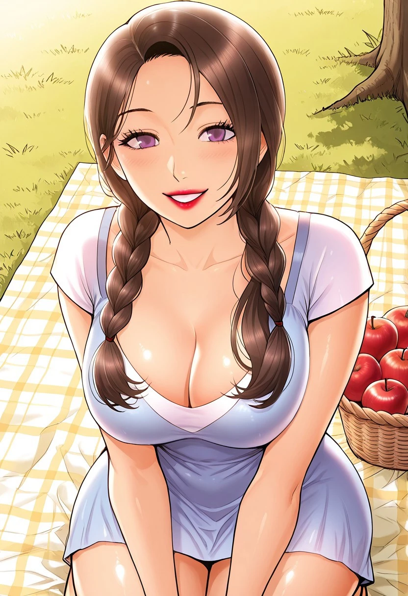 (( <lora:sung_min-ah:1> , sung_min-ah, beautiful purple eyes, clear eyes, bright pupils, beautiful eyes, beautiful brown hair, bangs, huge and shaggy breasts, thin waist, wide hips, beautiful skin, natural beauty, extraordinary beautiful woman, attractive woman, super sexy woman, lustful body, sexy woman with seductive obscene body, sensual body, voluptuous body, sexy beauty, ))