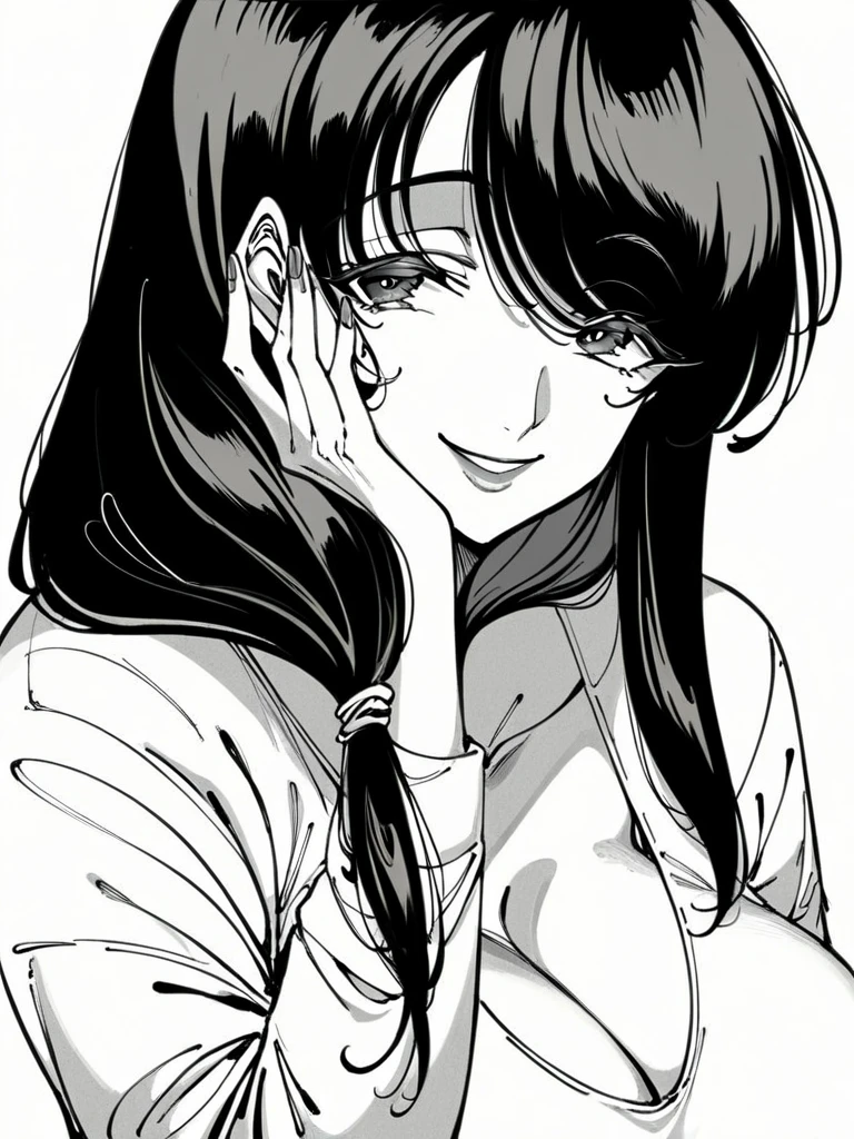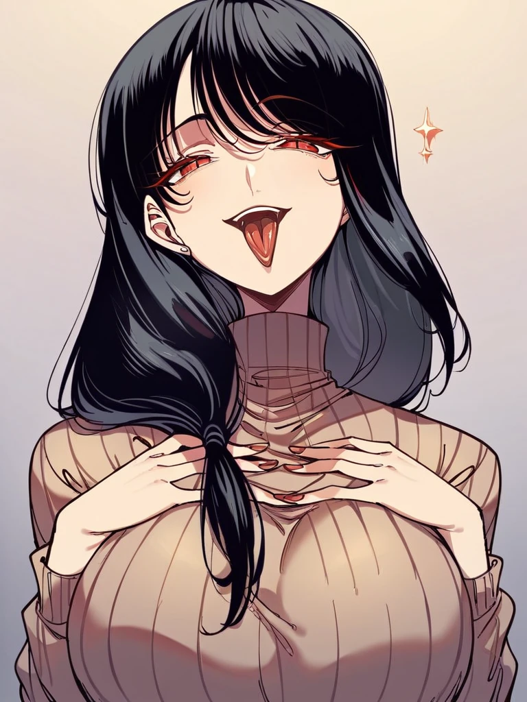Saku: saku kb, long hair, black hair, straight hair, blunt bangs, plump, large breasts,