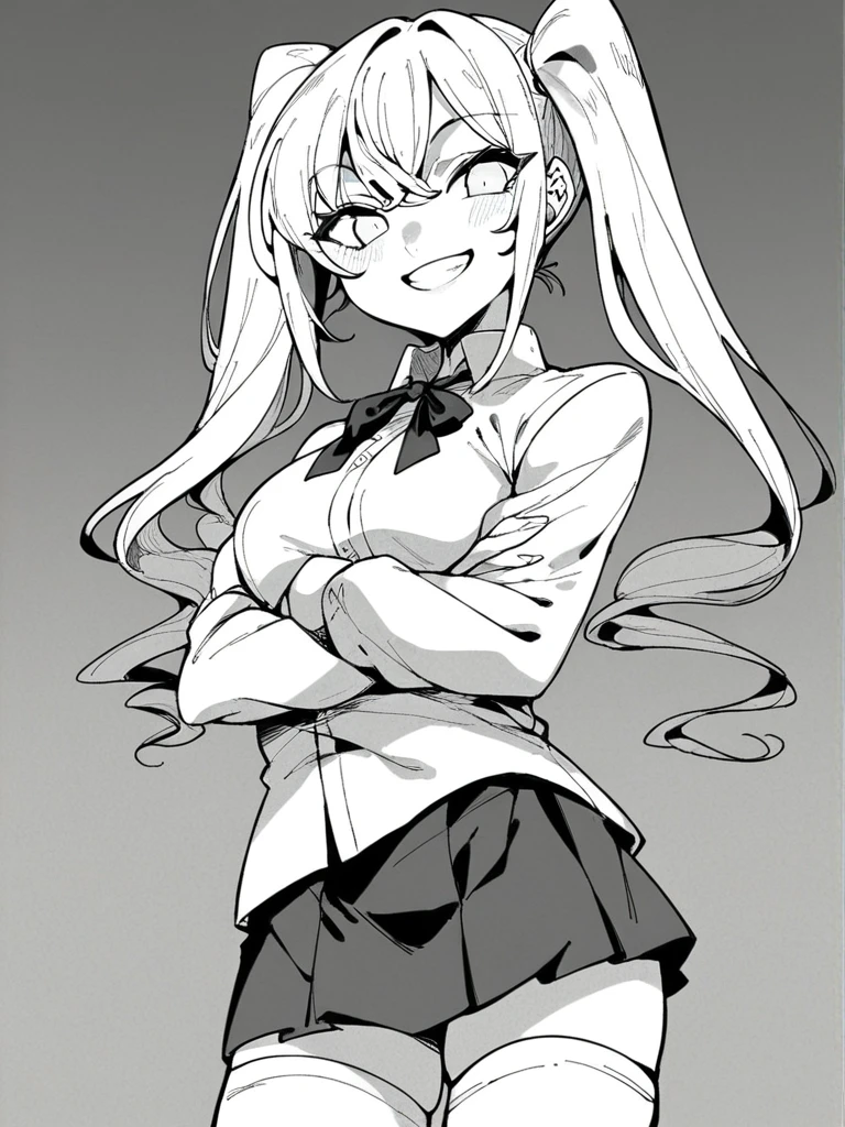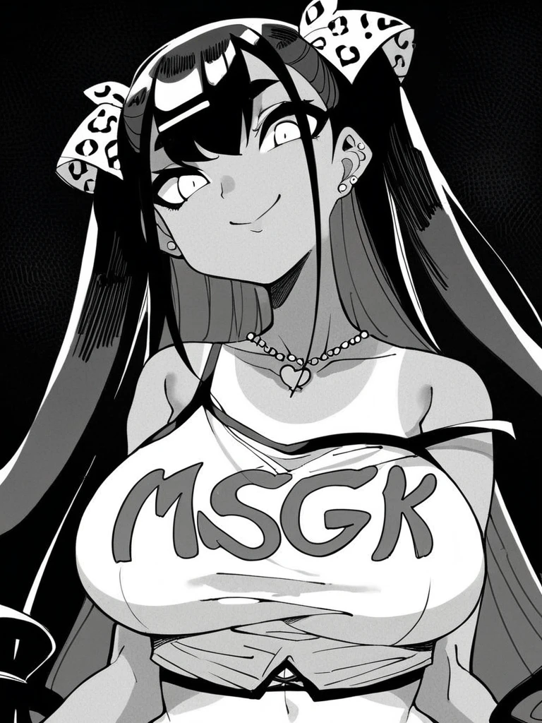 Monika: monika kb, white hair, ahoge, antenna hair, long hair, two side up, hair ribbon, dark-skinned female, large breasts,