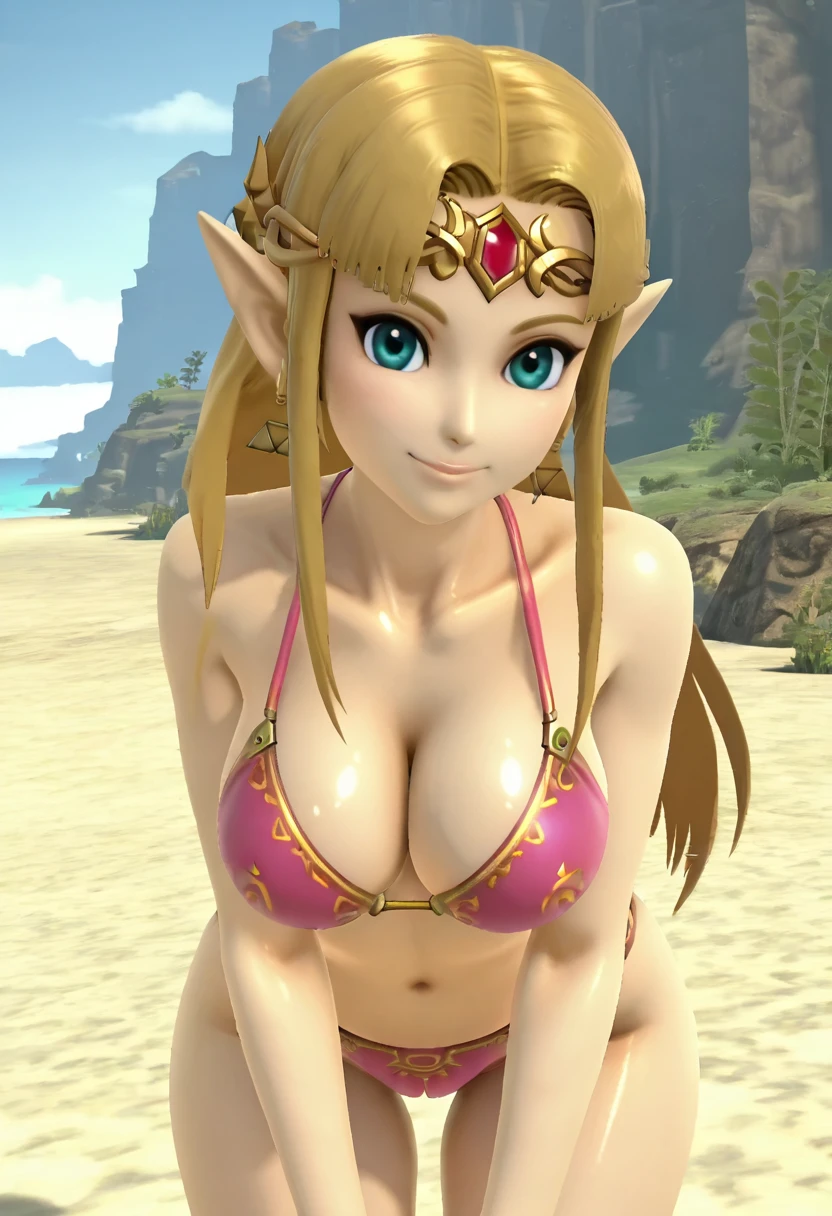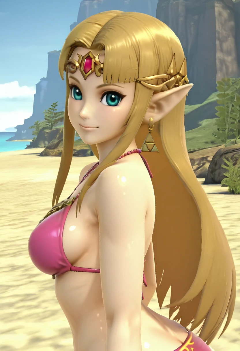 3d, zzZelda, blonde hair, jewelry, dress, pink tabard, triforce, circlet, armor, earrings, necklace, shoulder armor, tiara,