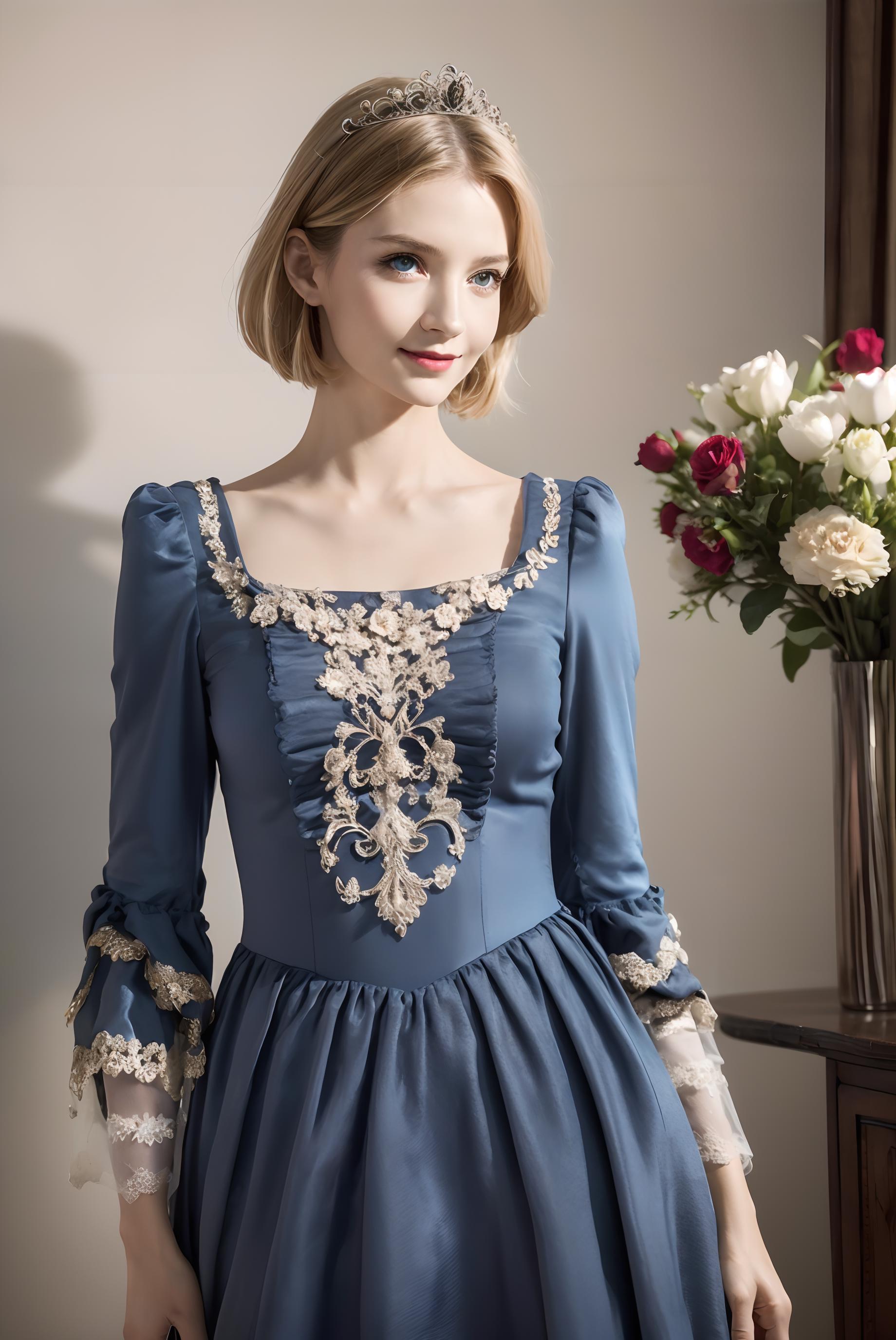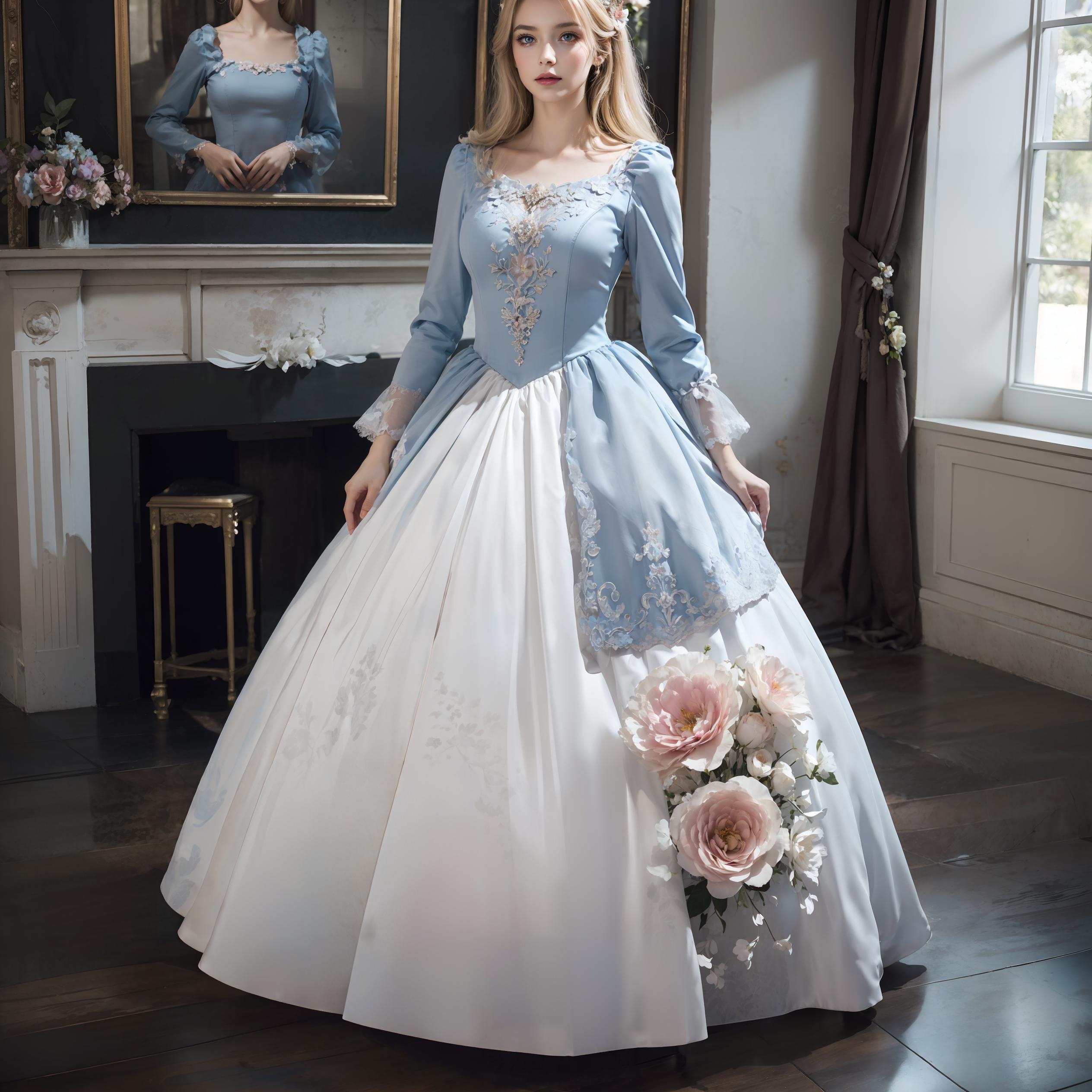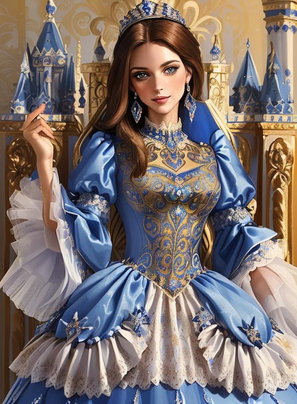 trigger words: "ornate white/blue/green/red/black/pink/purple european style princess dress", "long/short sleeves", "high heels". By the way, you don't have to stick to the template I gave, try to use your imagination to edit them appropriately, it'll help you get different results. And change weight of lora can also help you get different results.