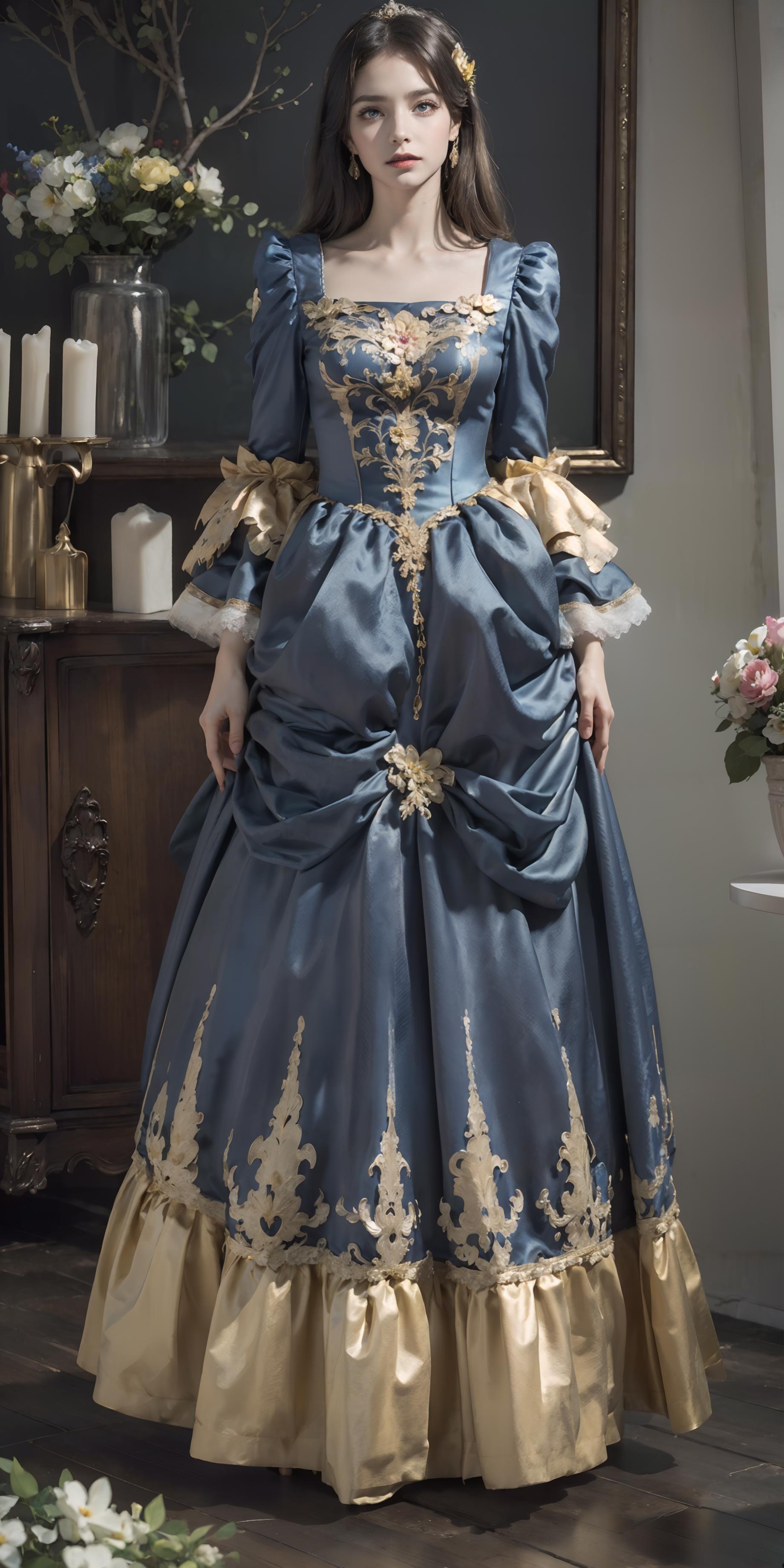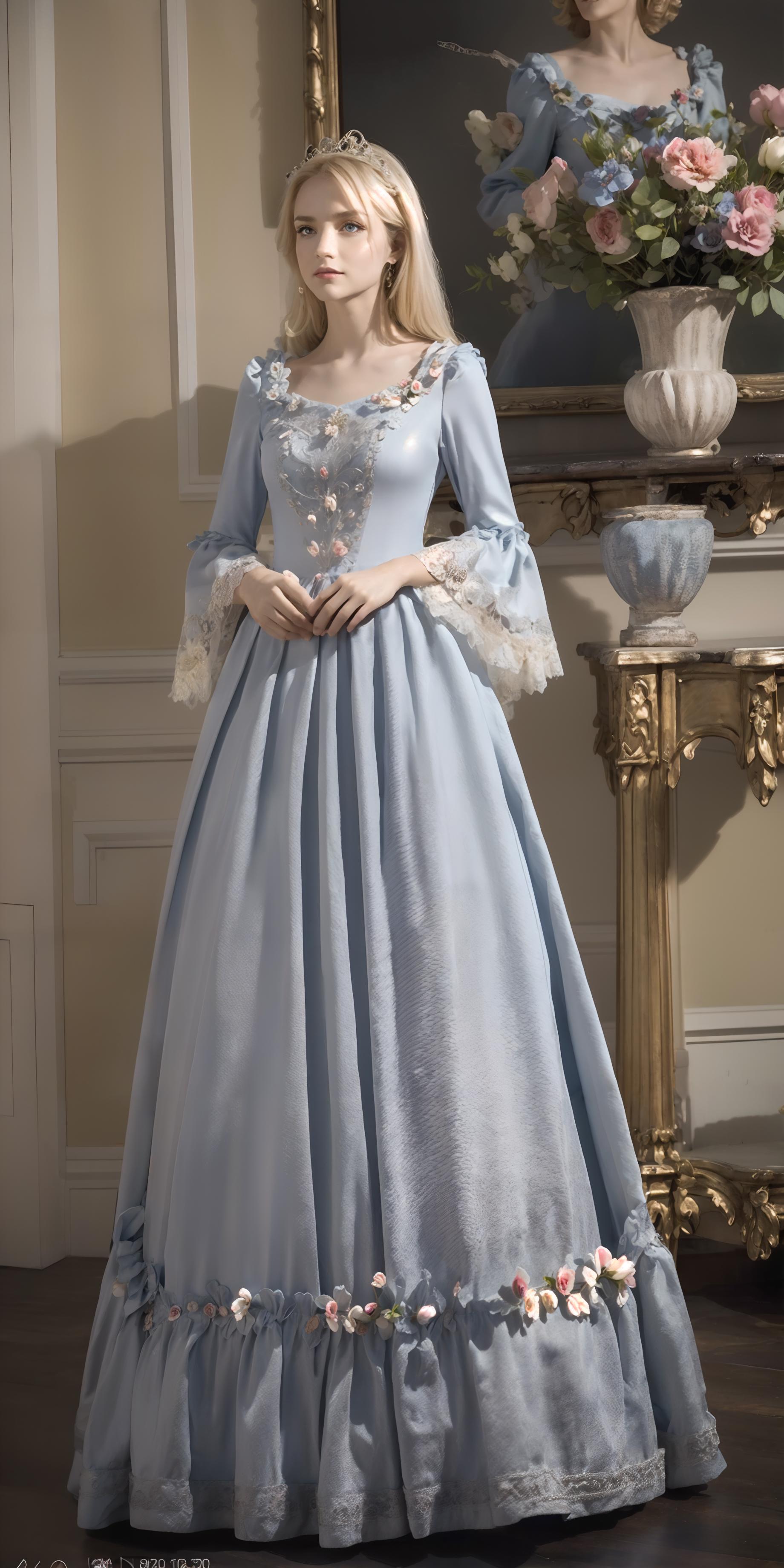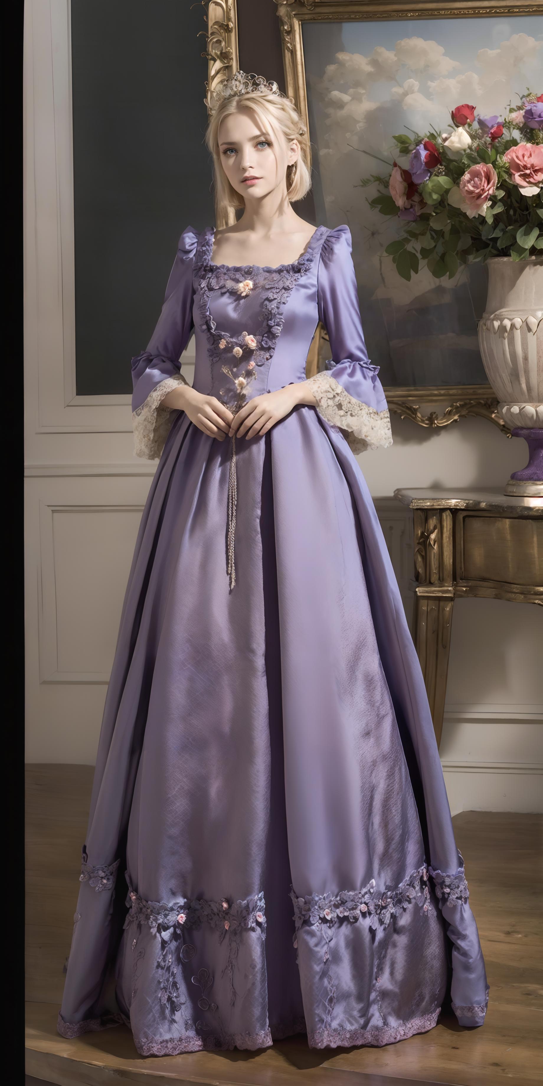 trigger words: "ornate white/blue/green/red/black/pink/purple european style princess dress", "long/short sleeves", "high heels". By the way, you don't have to stick to the template I gave, try to use your imagination to edit them appropriately, it'll help you get different results. And change weight of lora can also help you get different results.
