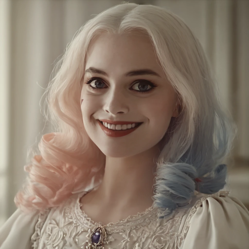 harqu1n, 1girl, makeup, solo, twintails, jewelry, blonde hair, red lips, lipstick, baseball bat, multicolored hair, smile