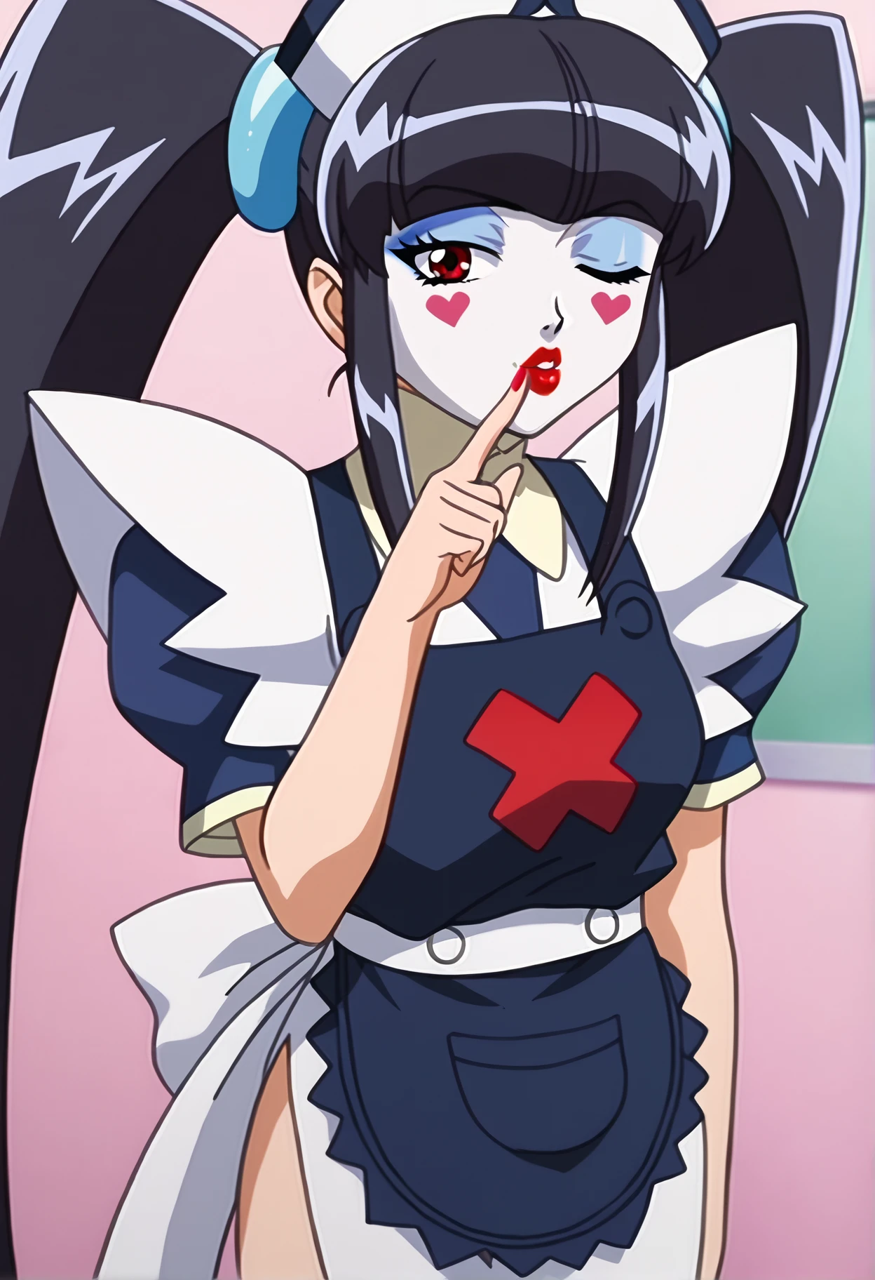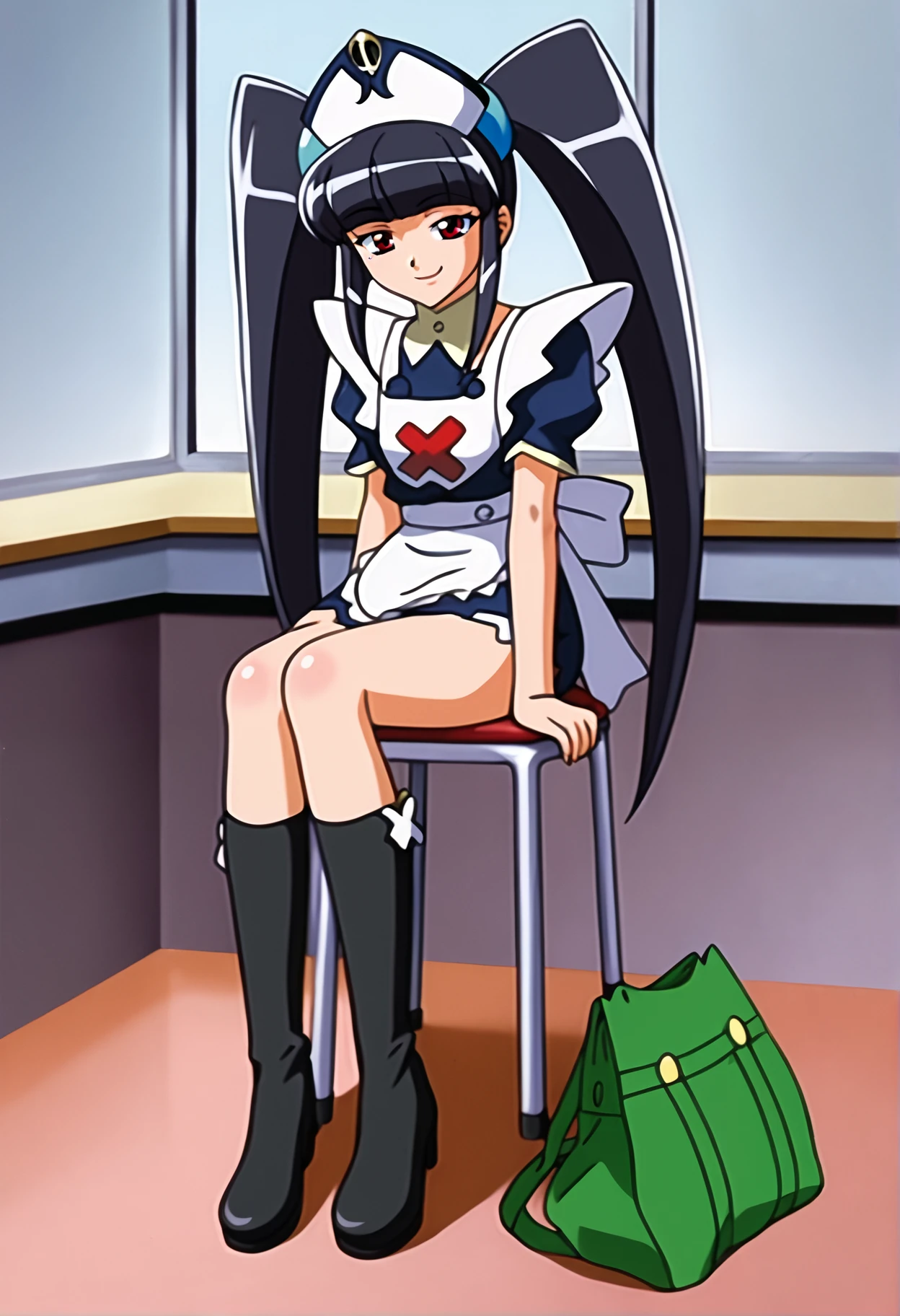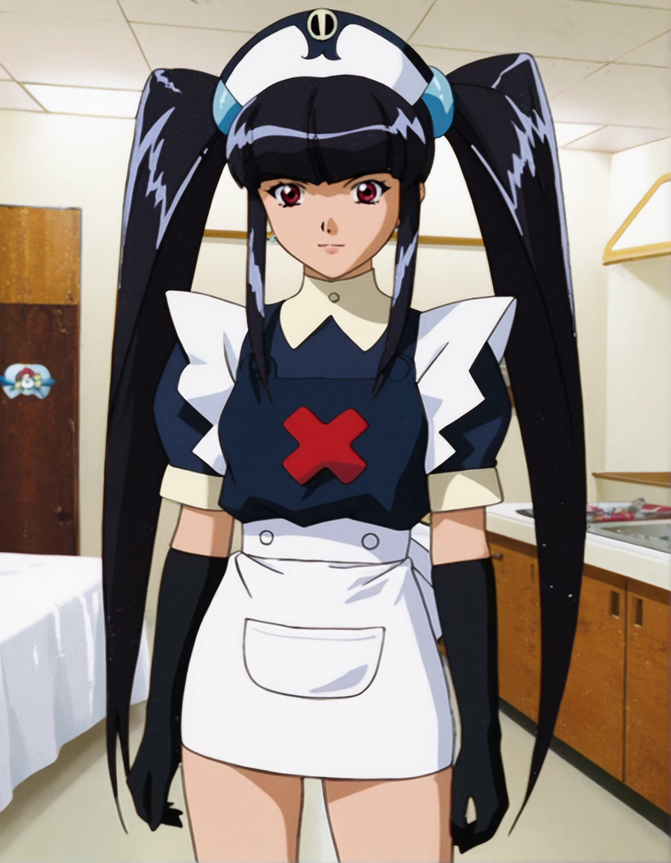 paiway_underberg, red eyes, long hair, black hair, twintails, very long hair, sidelocks, blunt bangs,