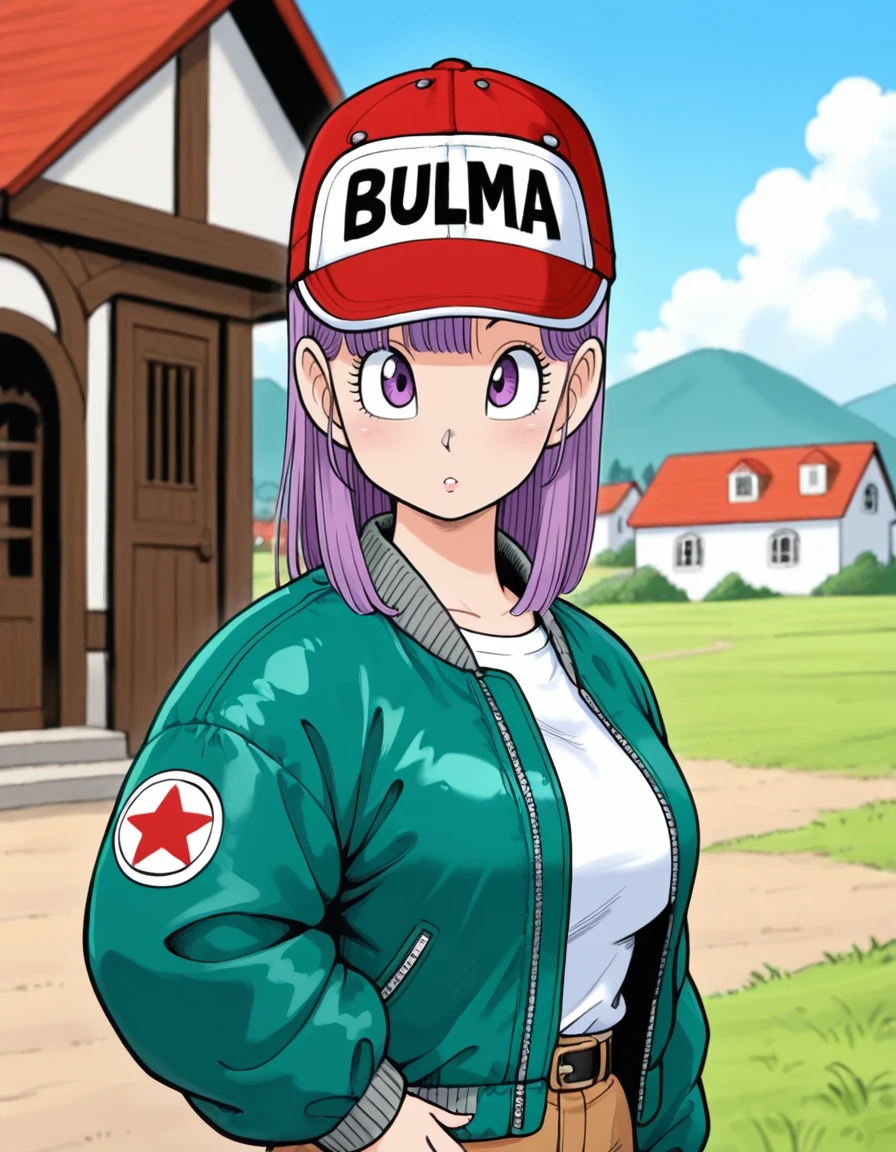 (straight hair, medium hair, blunt bangs), (red baseball cap, cap writing), (green bomber jacket, white t-shirt, brown short shorts, white socks, green sneakers)