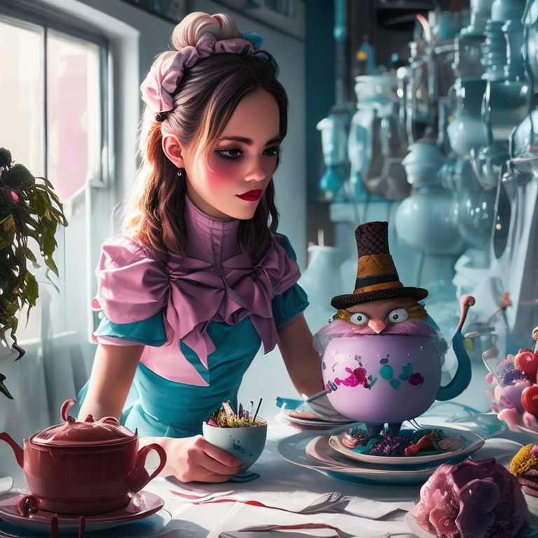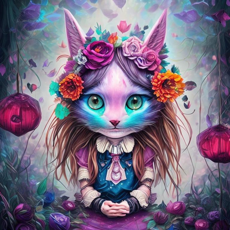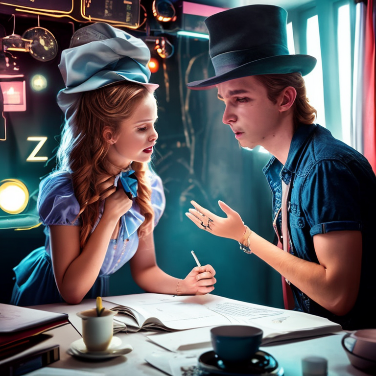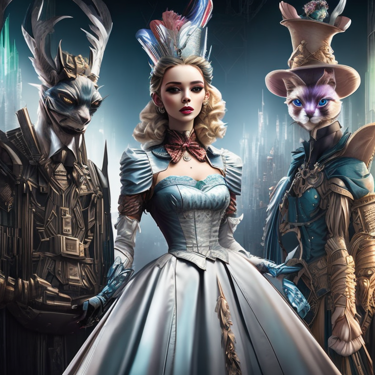 Characters like Alice in Wonderland, Cheshire Cat, the Mad Hatter, or the Queen of Hearts– how would they appear and interact in the digital world? What sort of otherworldly environments would they inhabit? (i.e. Digital tea party, code tangled forests, holographic food)