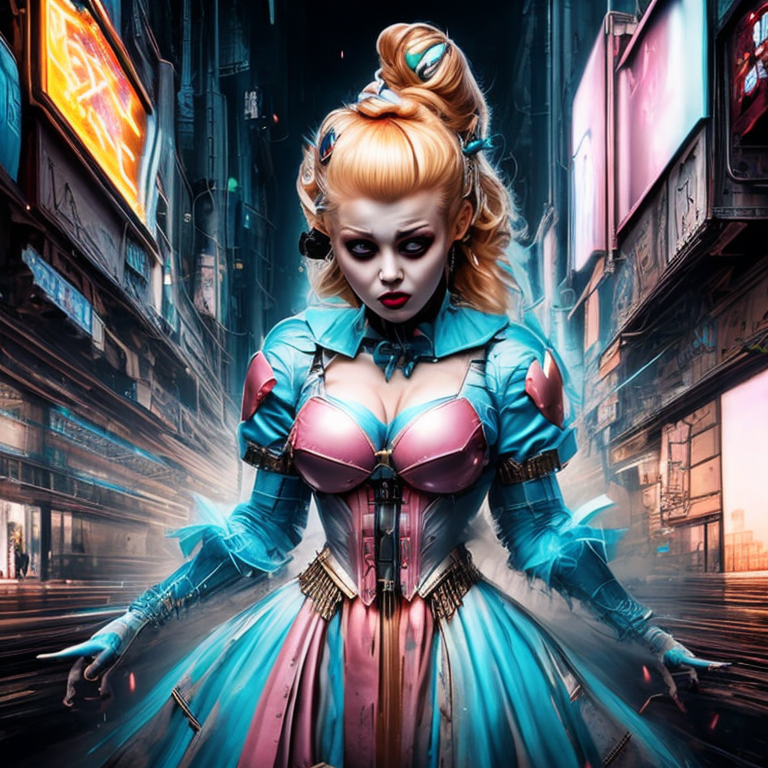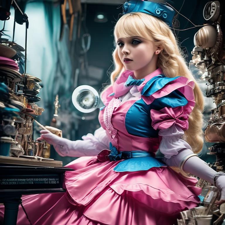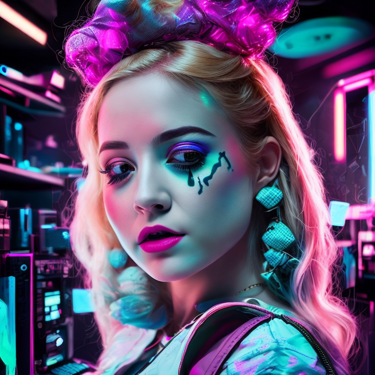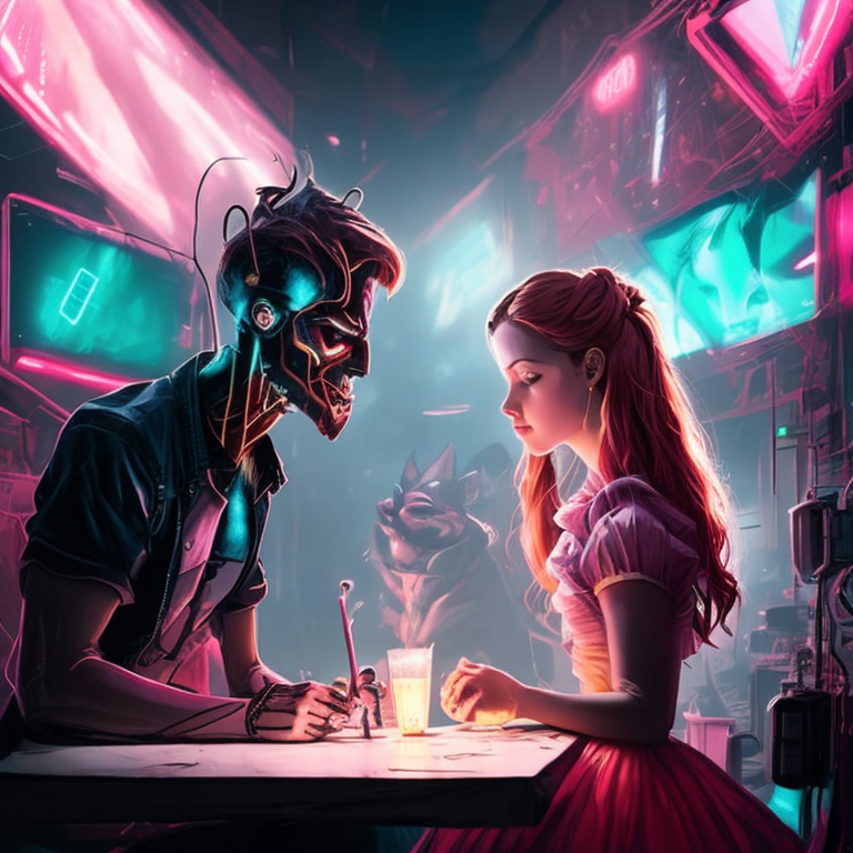 Create an image that rips off of Alice in Wonderland, but with a technological twist! How would Alice interact with the digital realm?