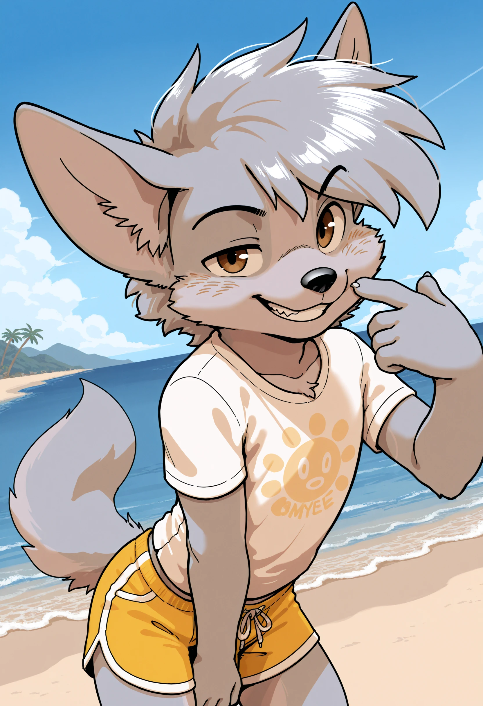 1boy, furry male, male focus, furry, animal ears, short hair, gray fur, brown eyes, gray hair, wolf boy, tail