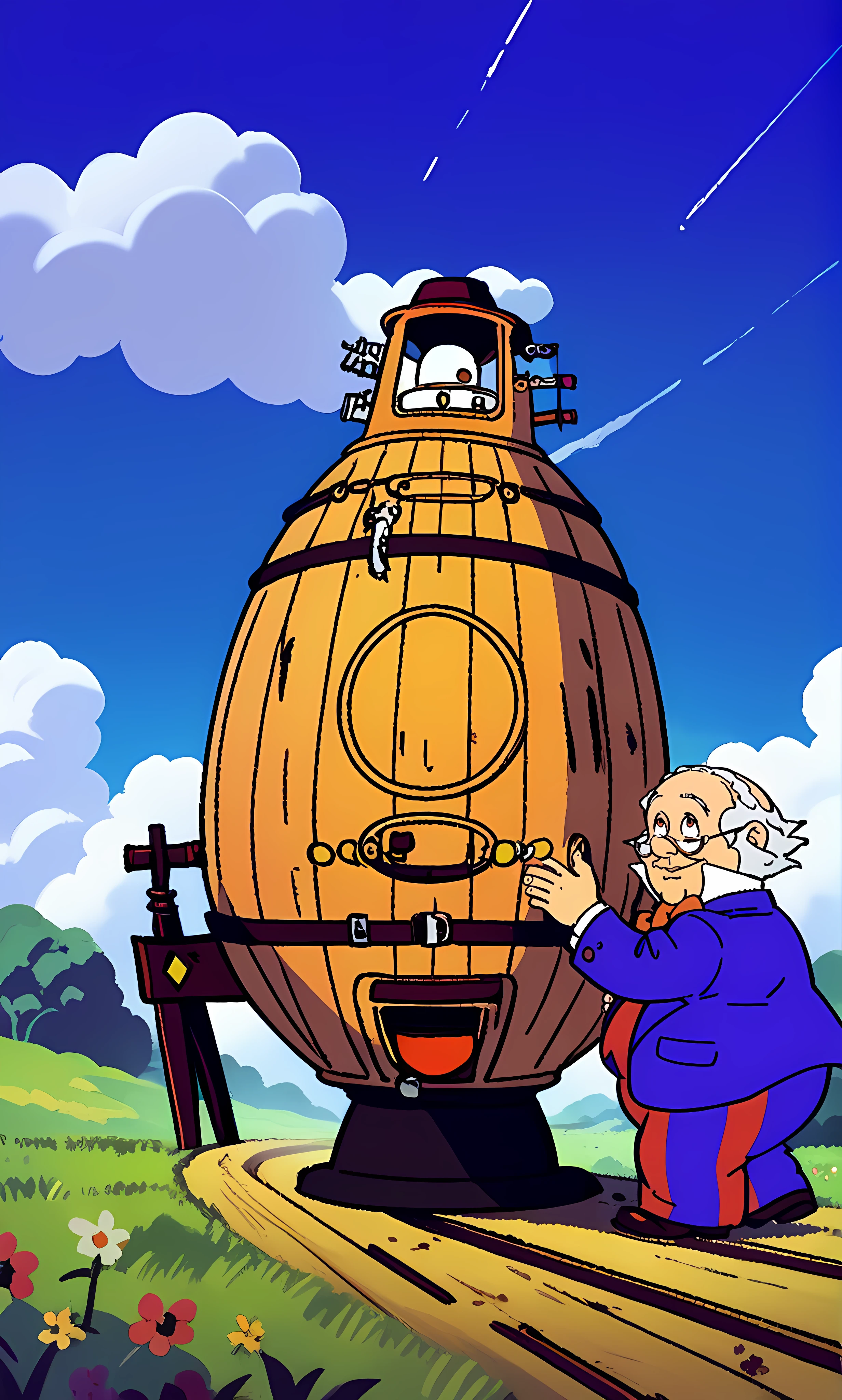 just invent about anything. He even took a wooden rocket and flew to the rainbow with it!!