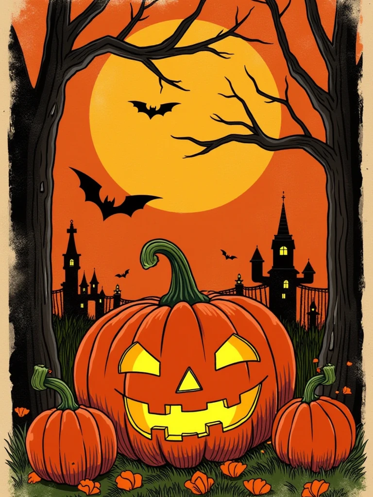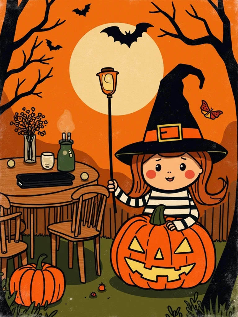 Halloween Retro Line illustration Flux1.d Lora
