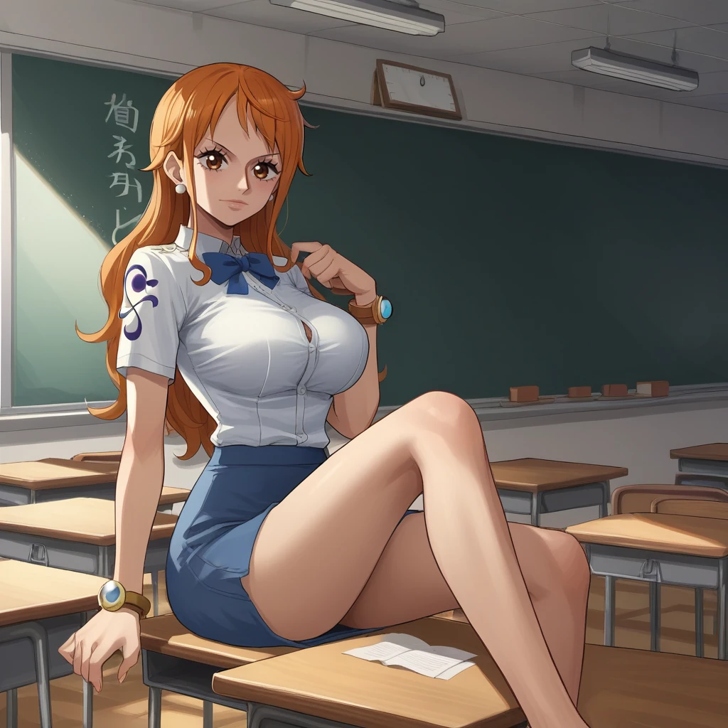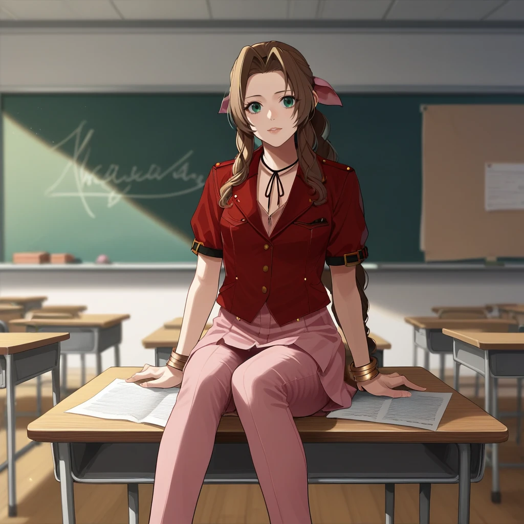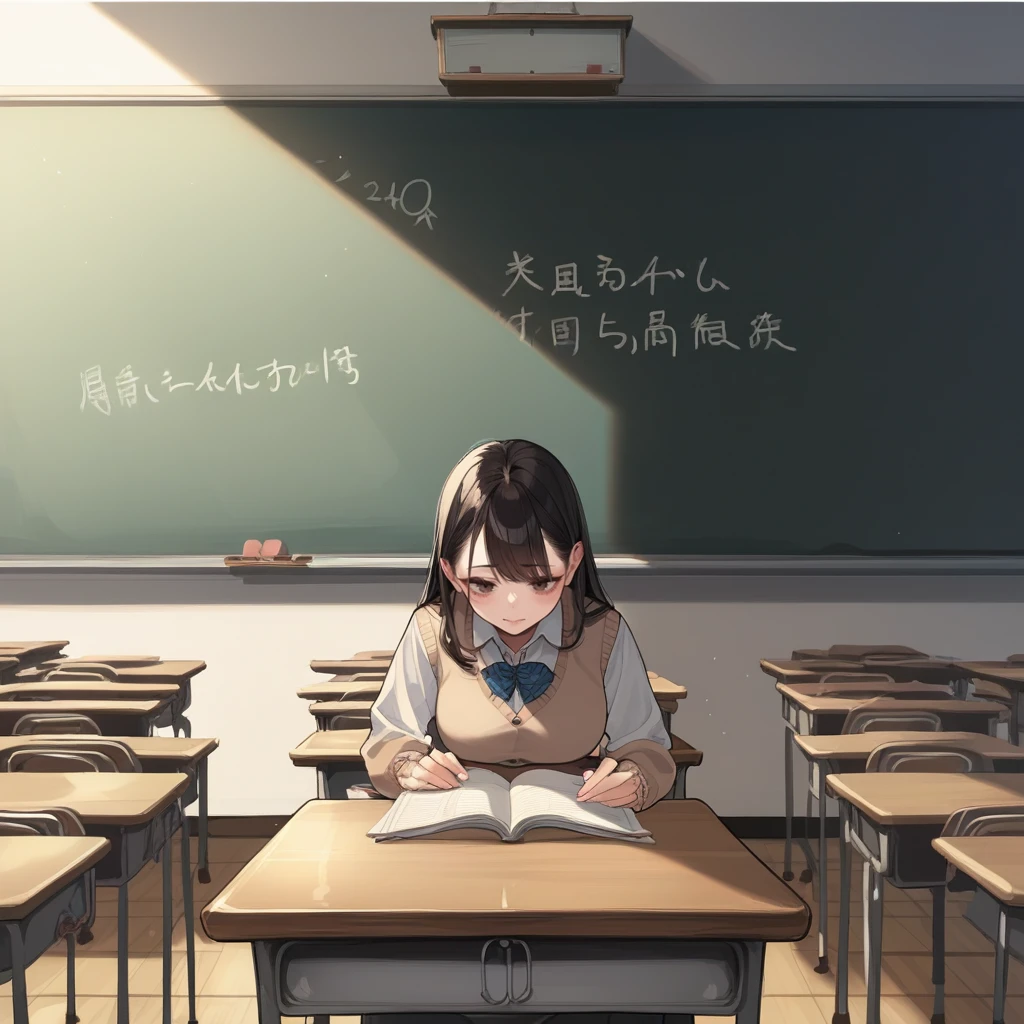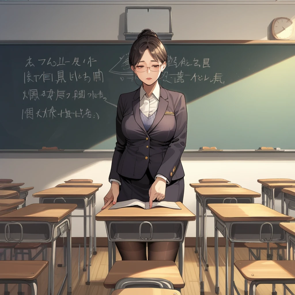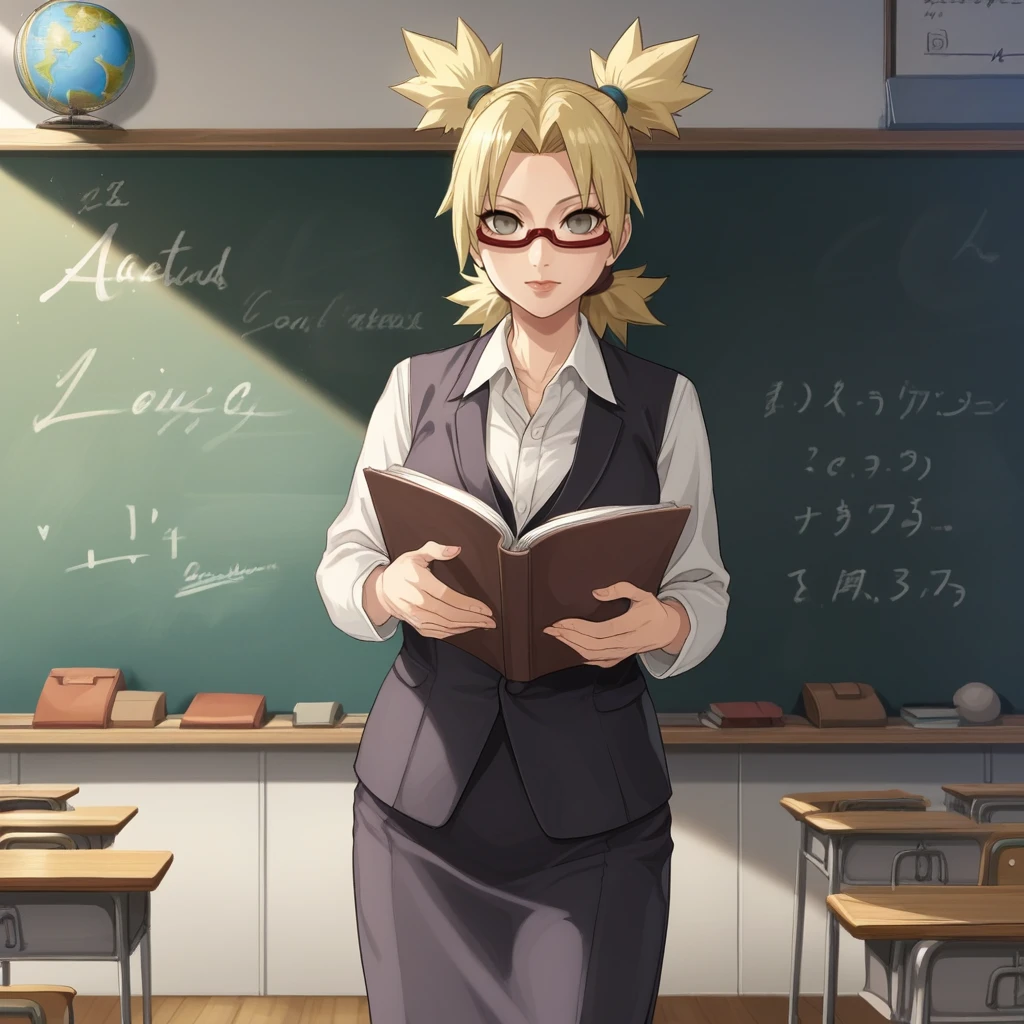Optional: chalkboard, indoors, classroom, podium, desks, bookcase, globe