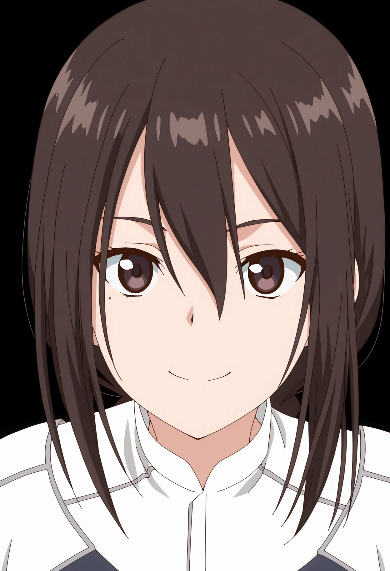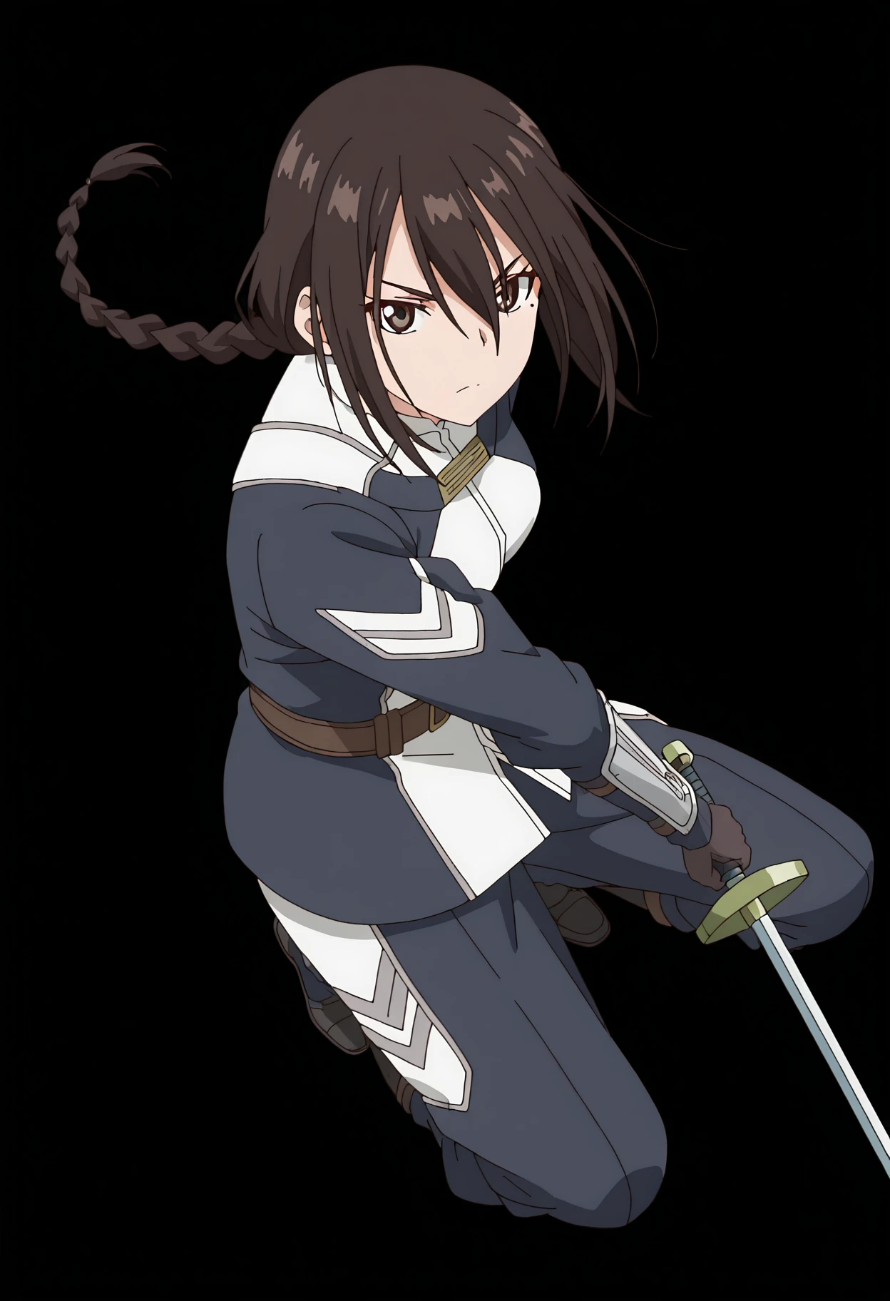 1girl, solo, lucius, black hair, brown hair, hair between eyes, long hair, brown eyes, braid, mole, single braid, mole under eye, sidelocks