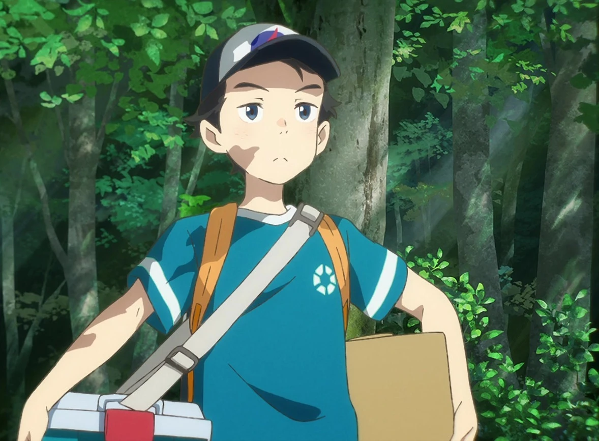 - aqua t-shirt, brown shorts, black with white baseball cap