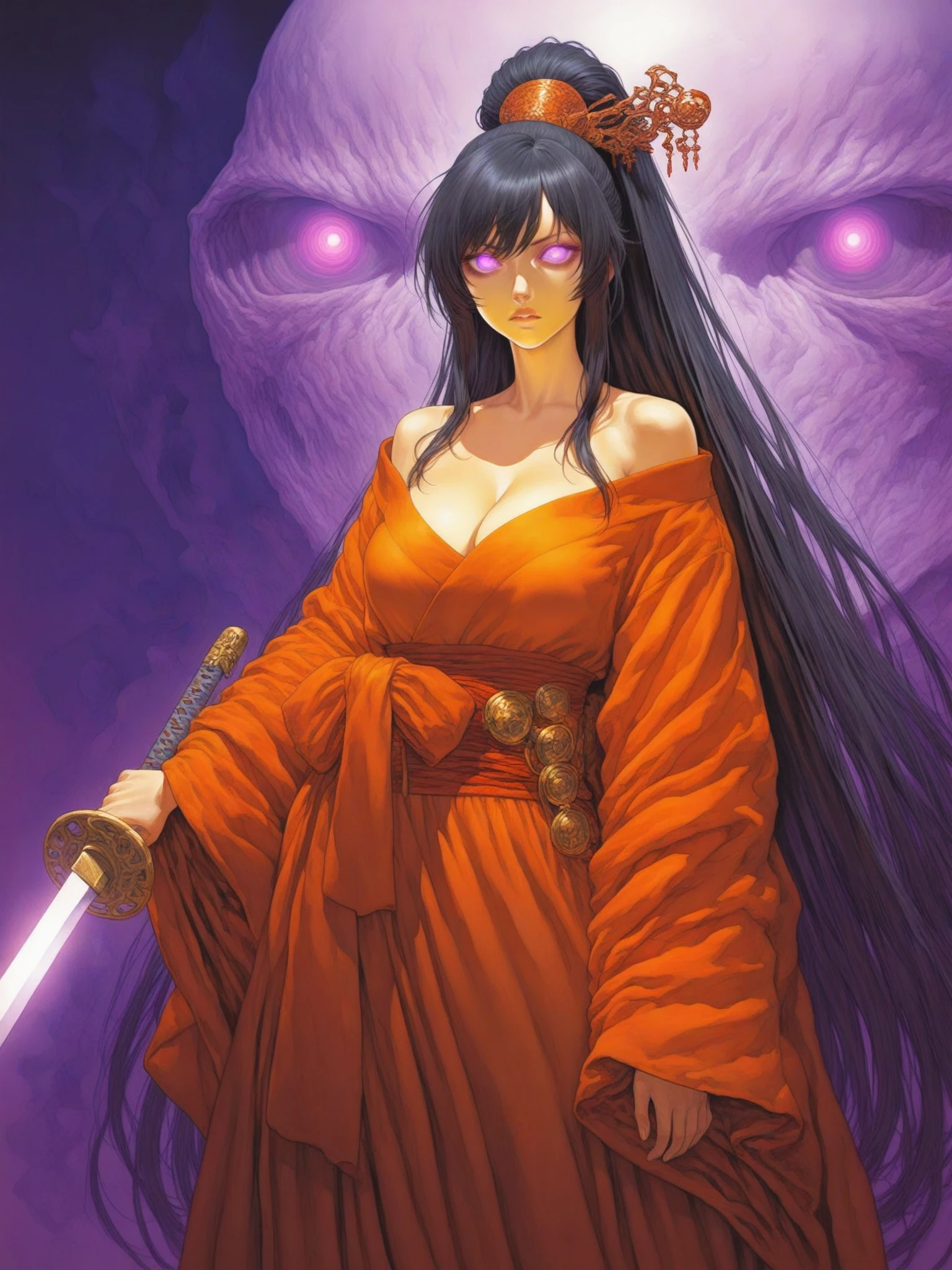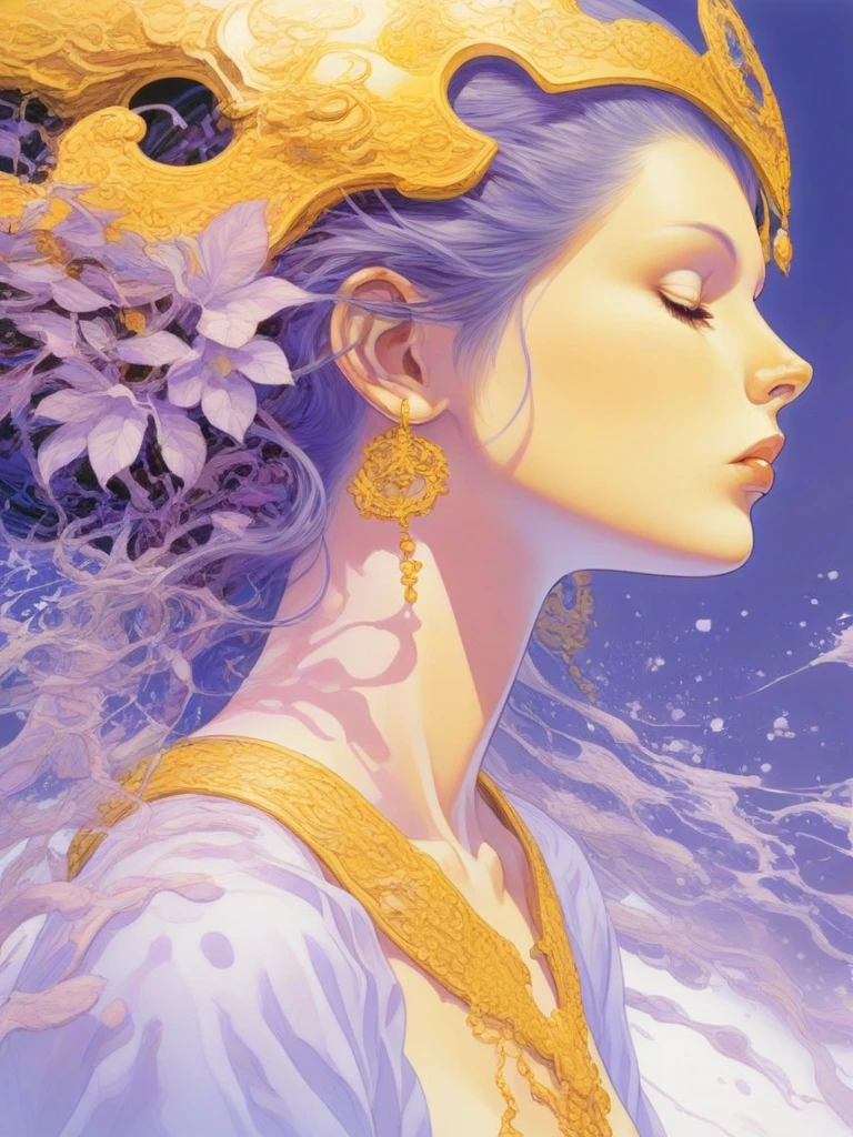 - Vivid Color Contrast: Strong usage of complementary colors, particularly yellows and purples, creating a striking visual balance.
