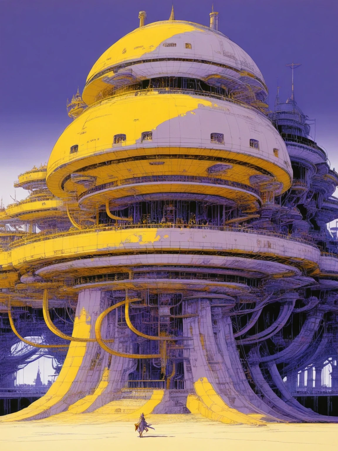 - Stylized Details: Fine intricate linework that emphasizes both architecture and landscapes, with an almost illustrative, graphic-novel-like quality.