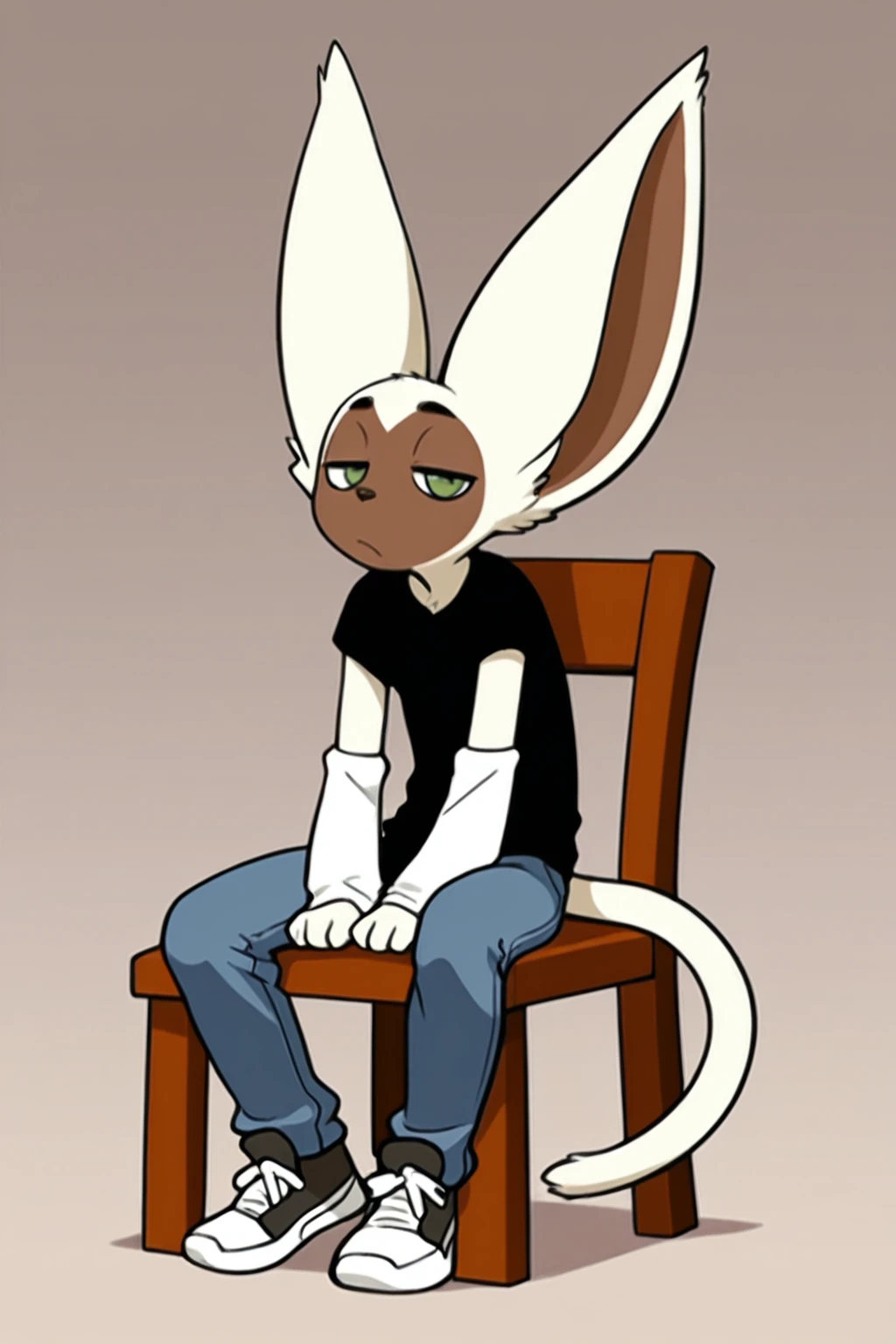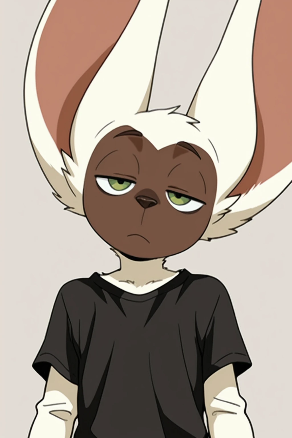 4. Momo, anthro, furry, big ears, white fur, green eyes, brown face,