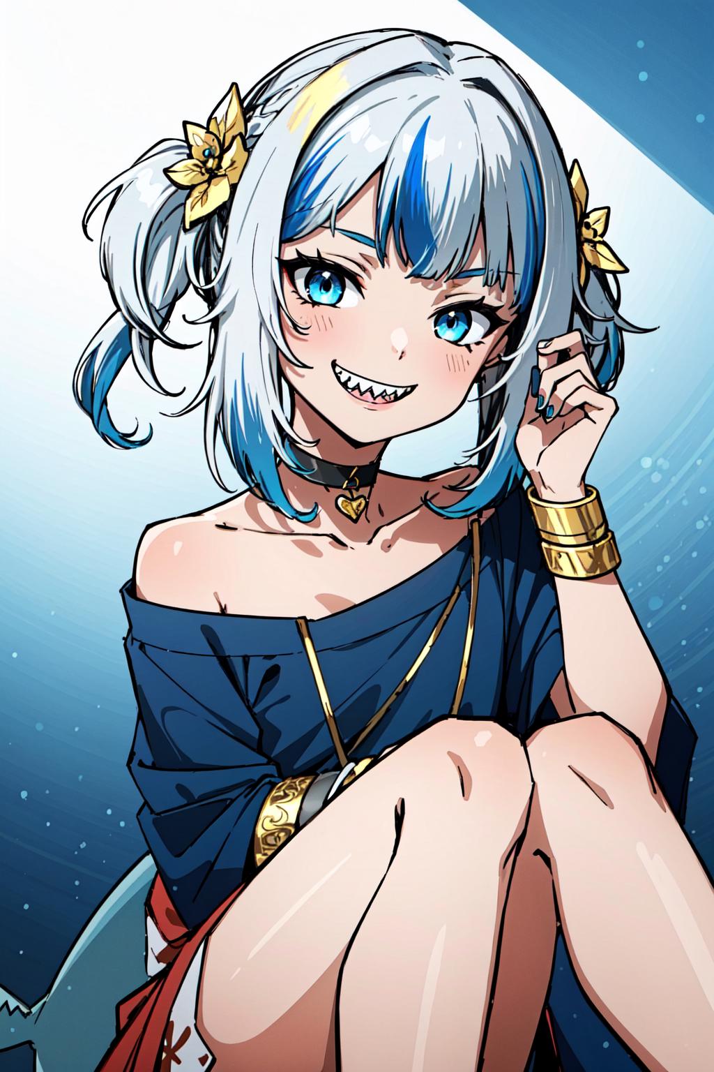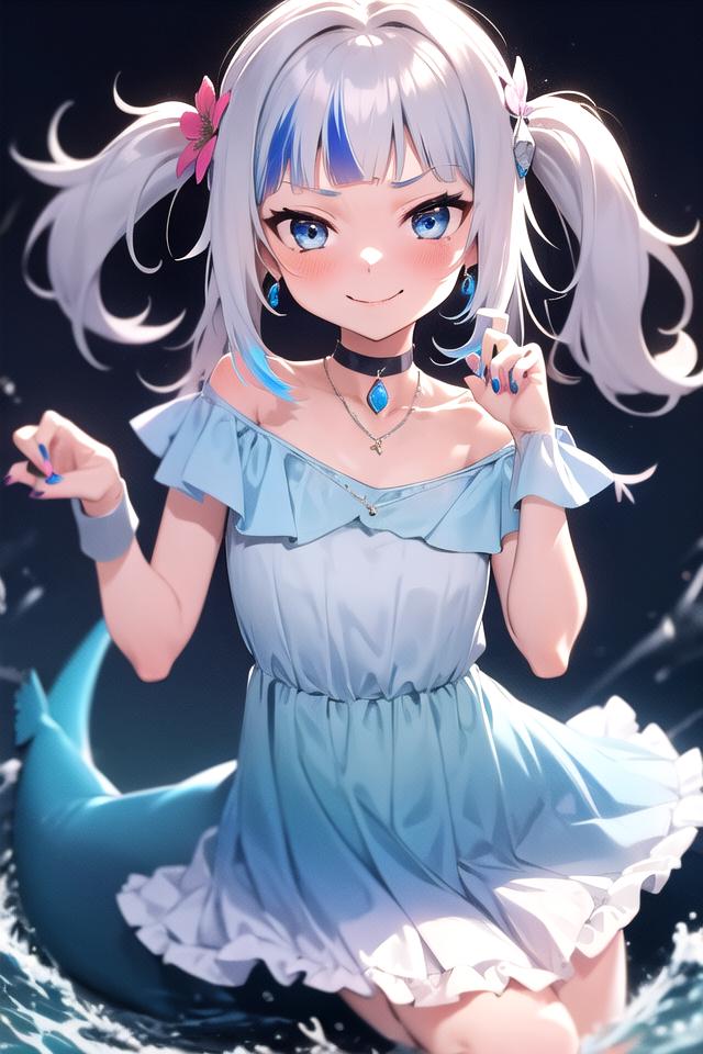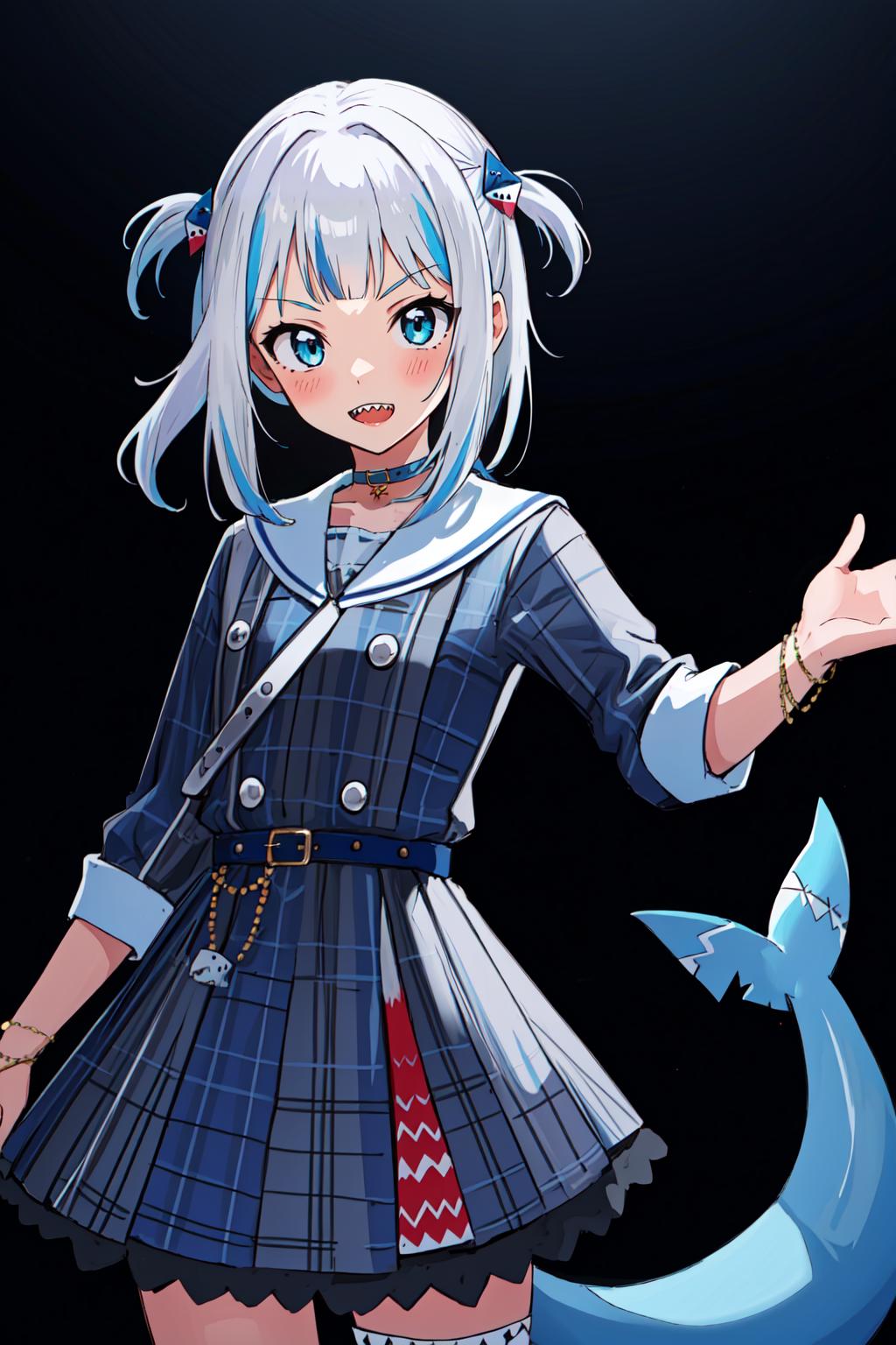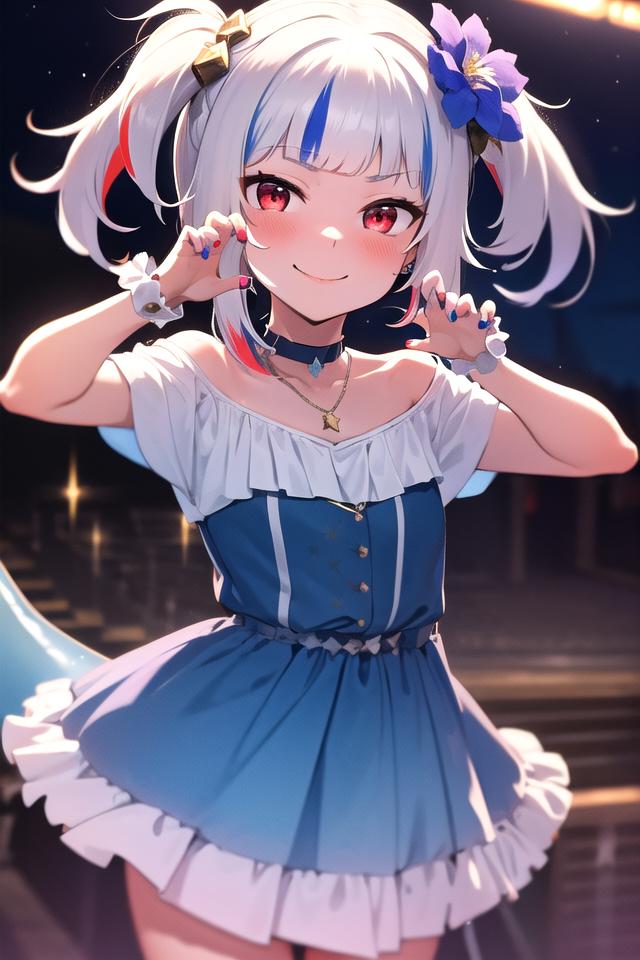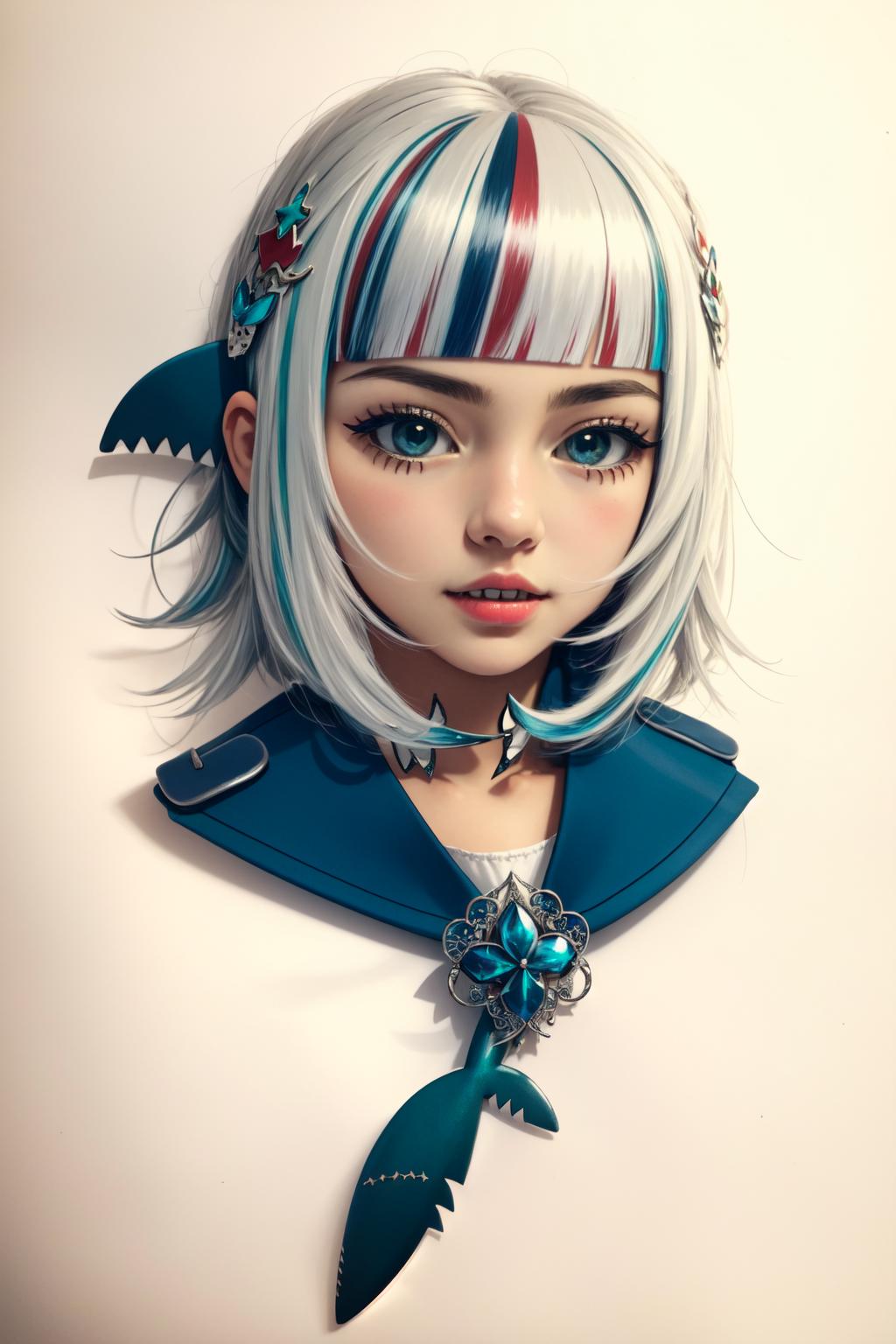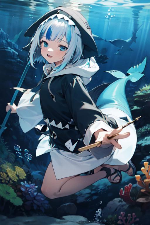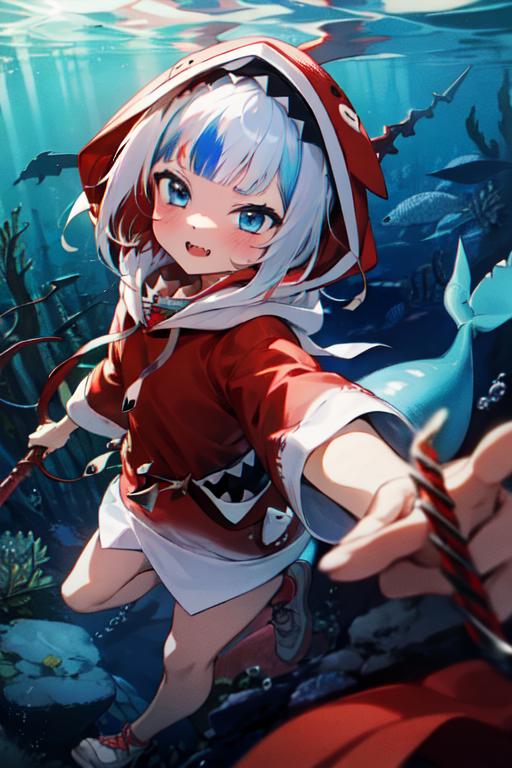Gura, multicolored hair, blue eyes, blue spear, or just " spear "or just it's not prompt