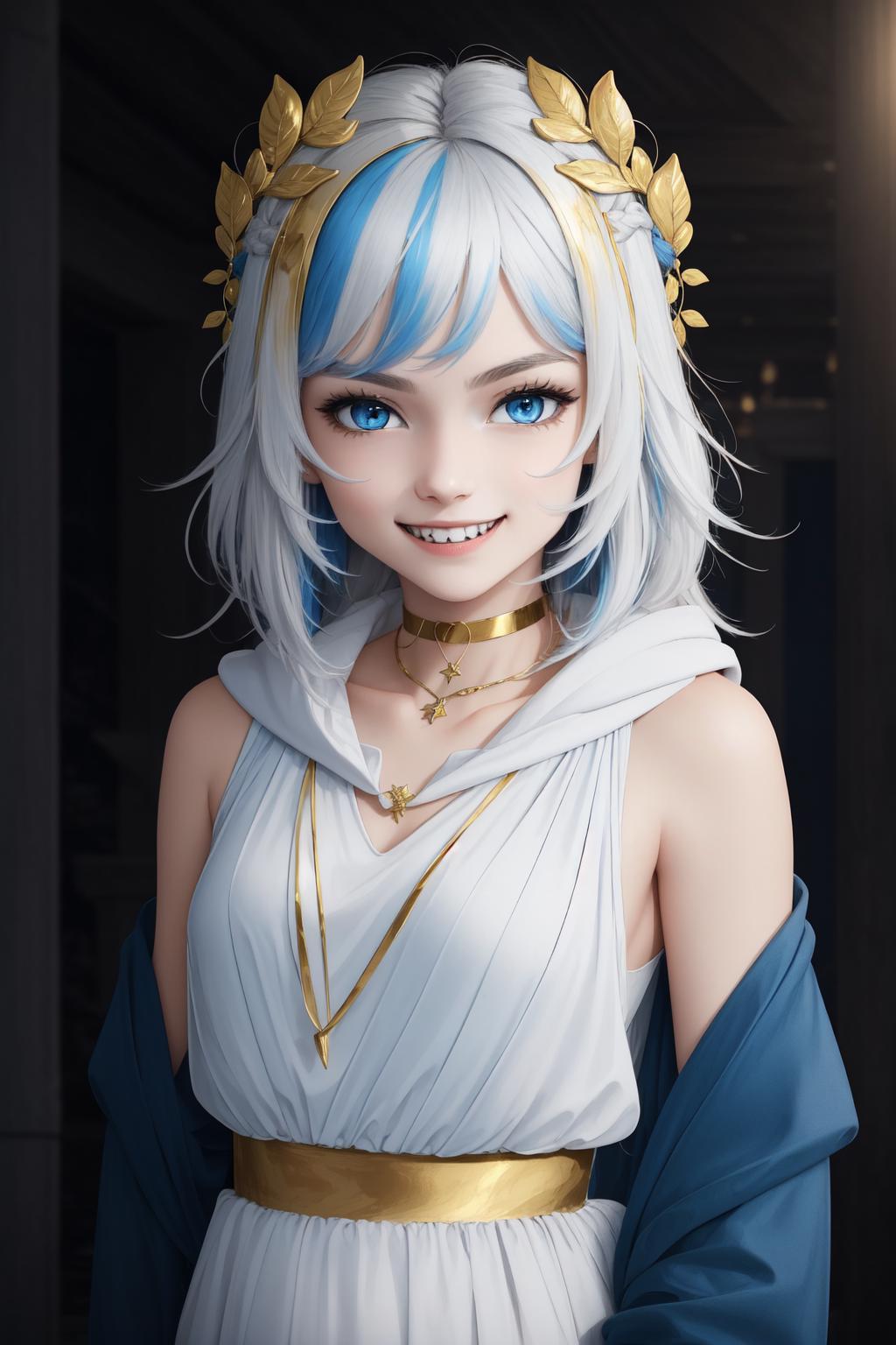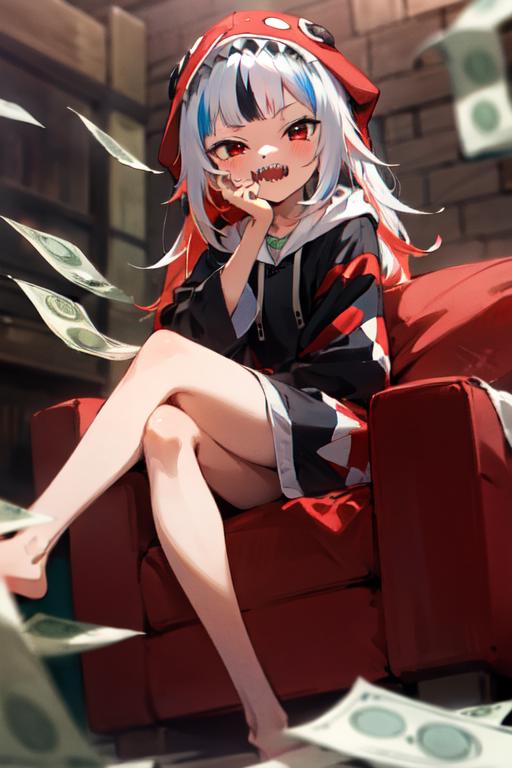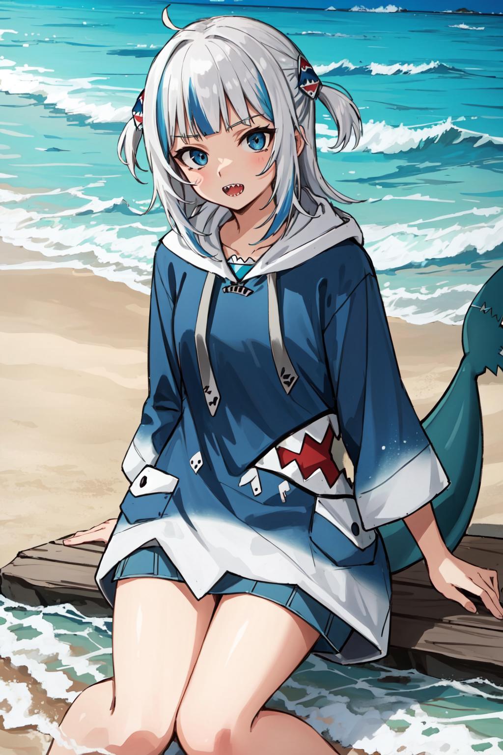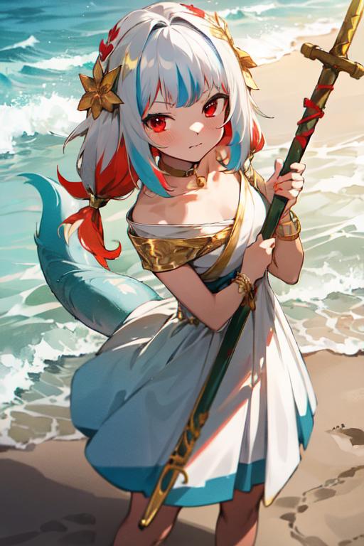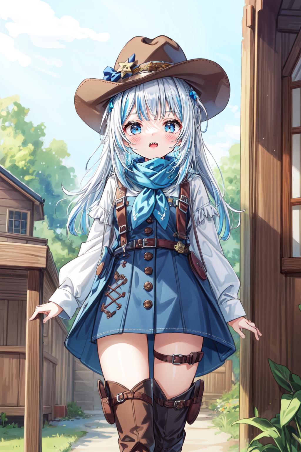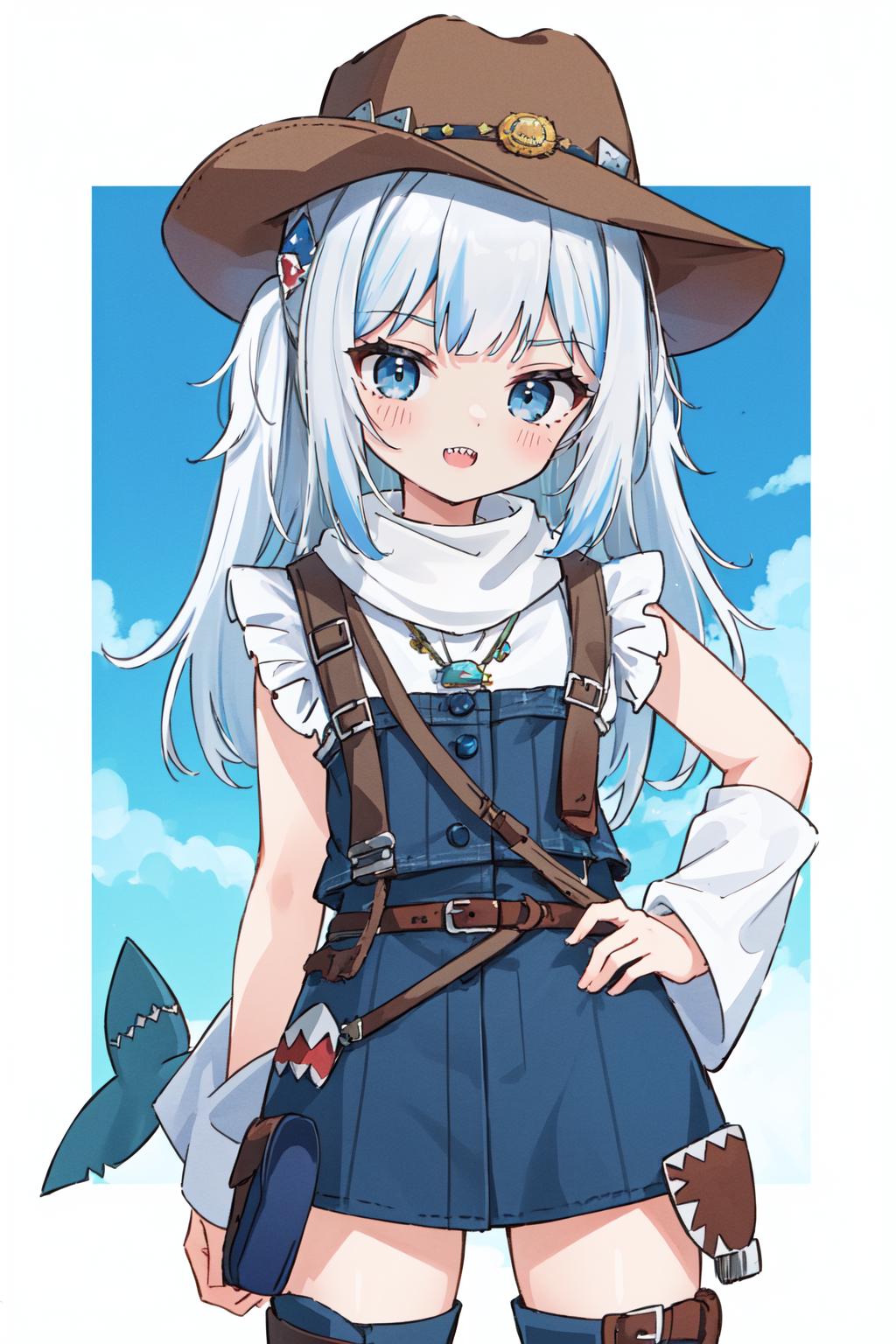 Gura, multicolored hair, blue eyes, blue spear, or just " spear "or just it's not prompt