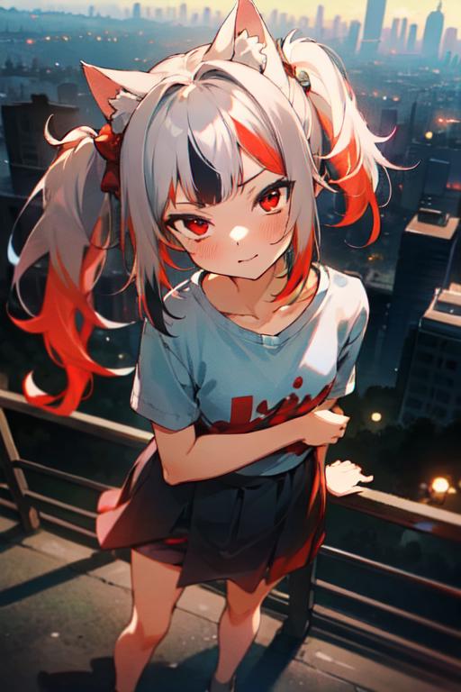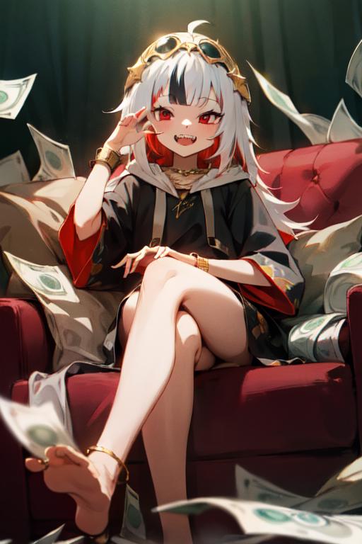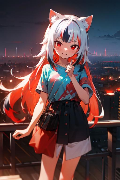 GuraV2, multicolored hair, red eyes, red spear,But hair colored it's complex sometimes mixing with red but just a little focus to what your triger