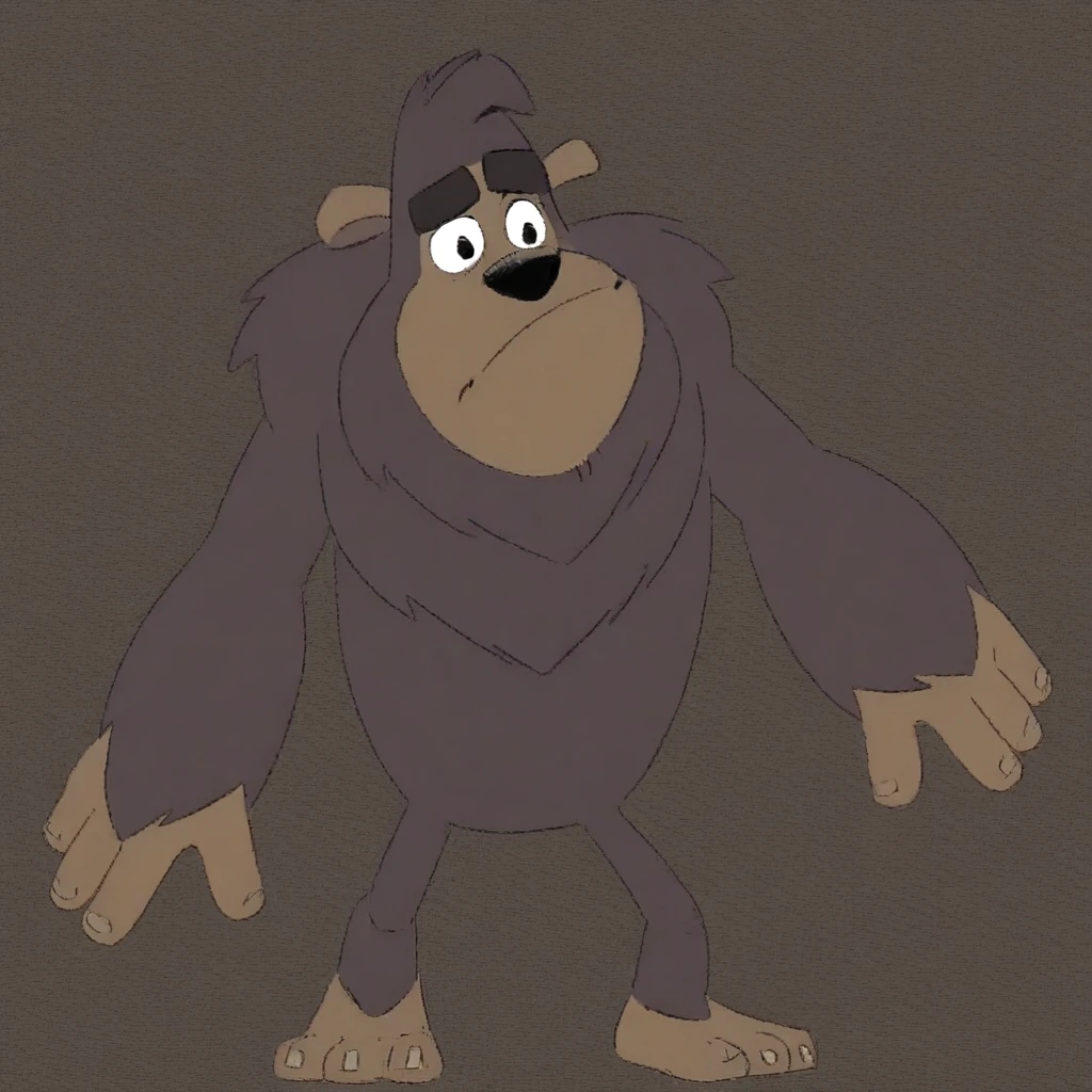 anthro, furry, Bigfoot, black eyes, big feet, big hands, fangs, floppy ears