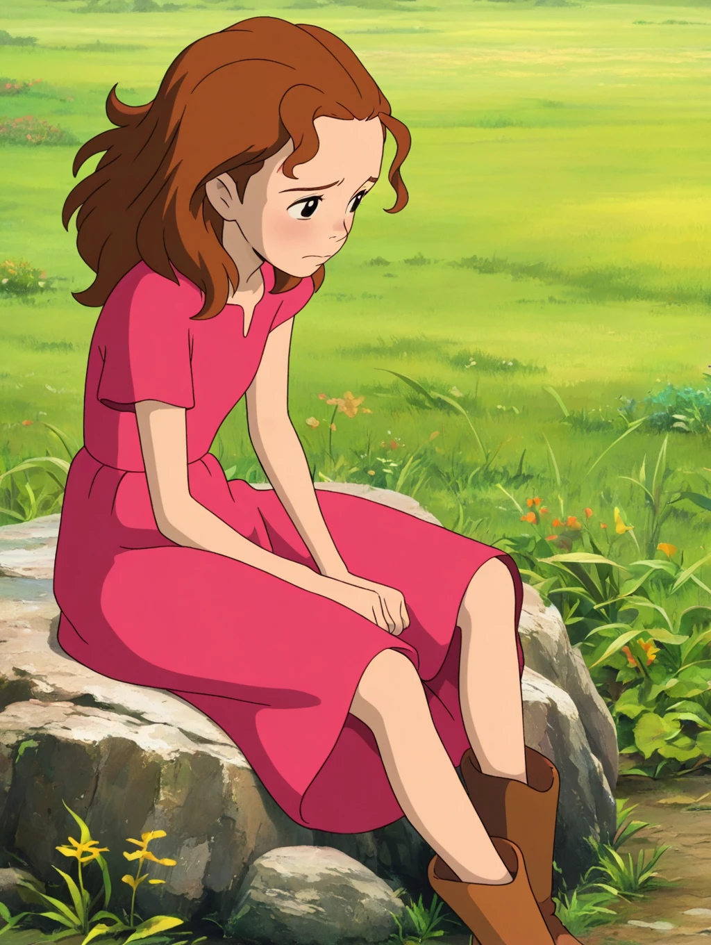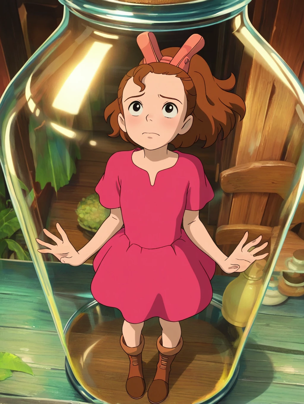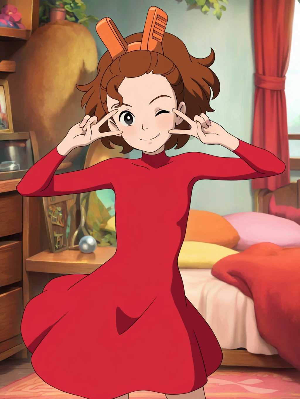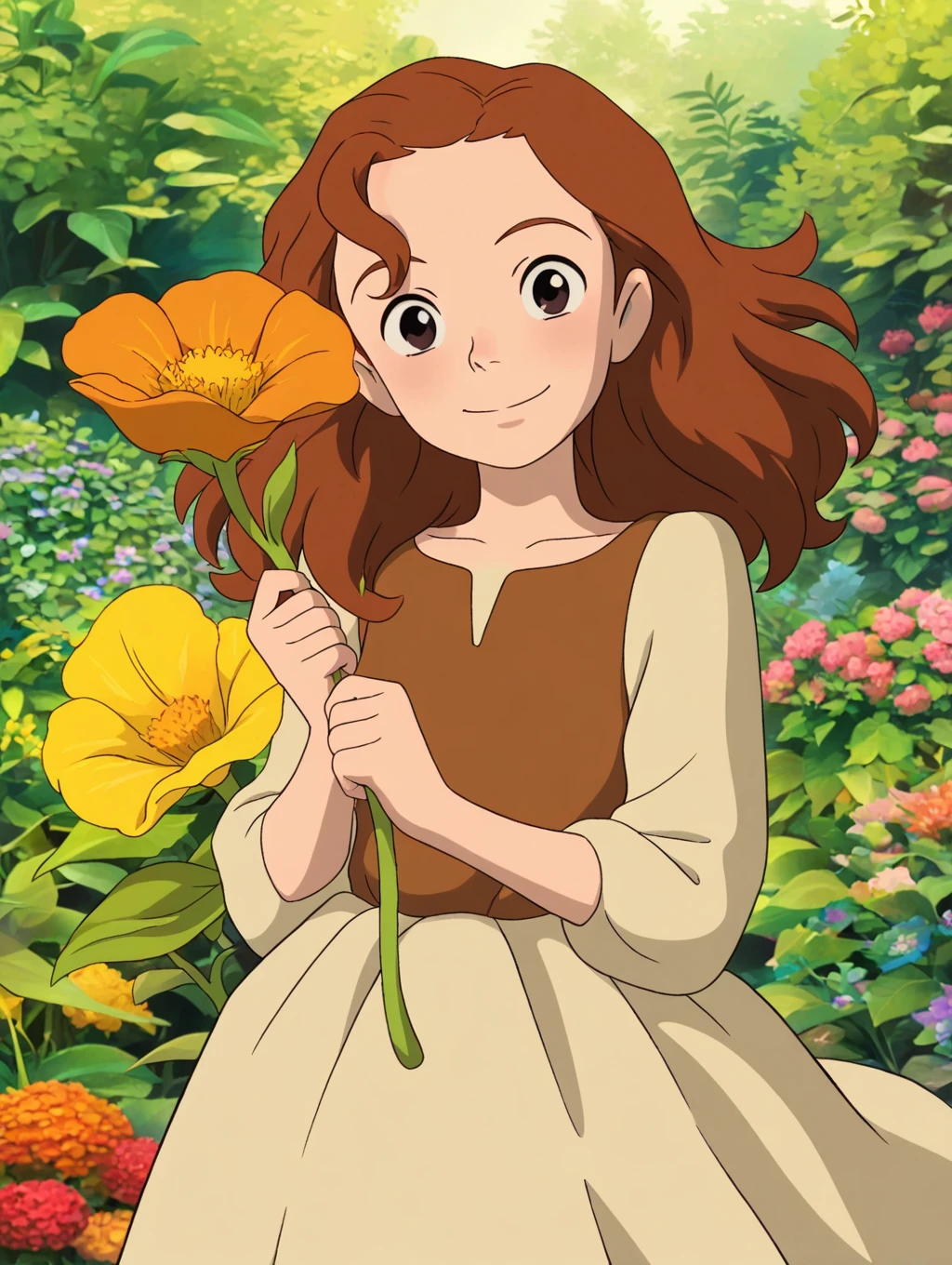masterpiece,best quality,amazing quality, Arrietty, 1girl, solo, brown hair, black eyes, looking at viewer, smile