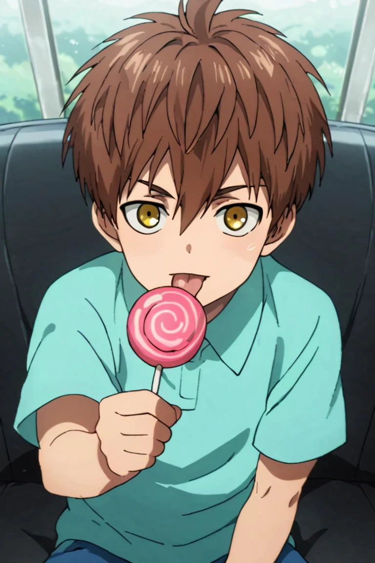 Child Emperor,Isamu,brown hair, yellow eyes,ahoge,