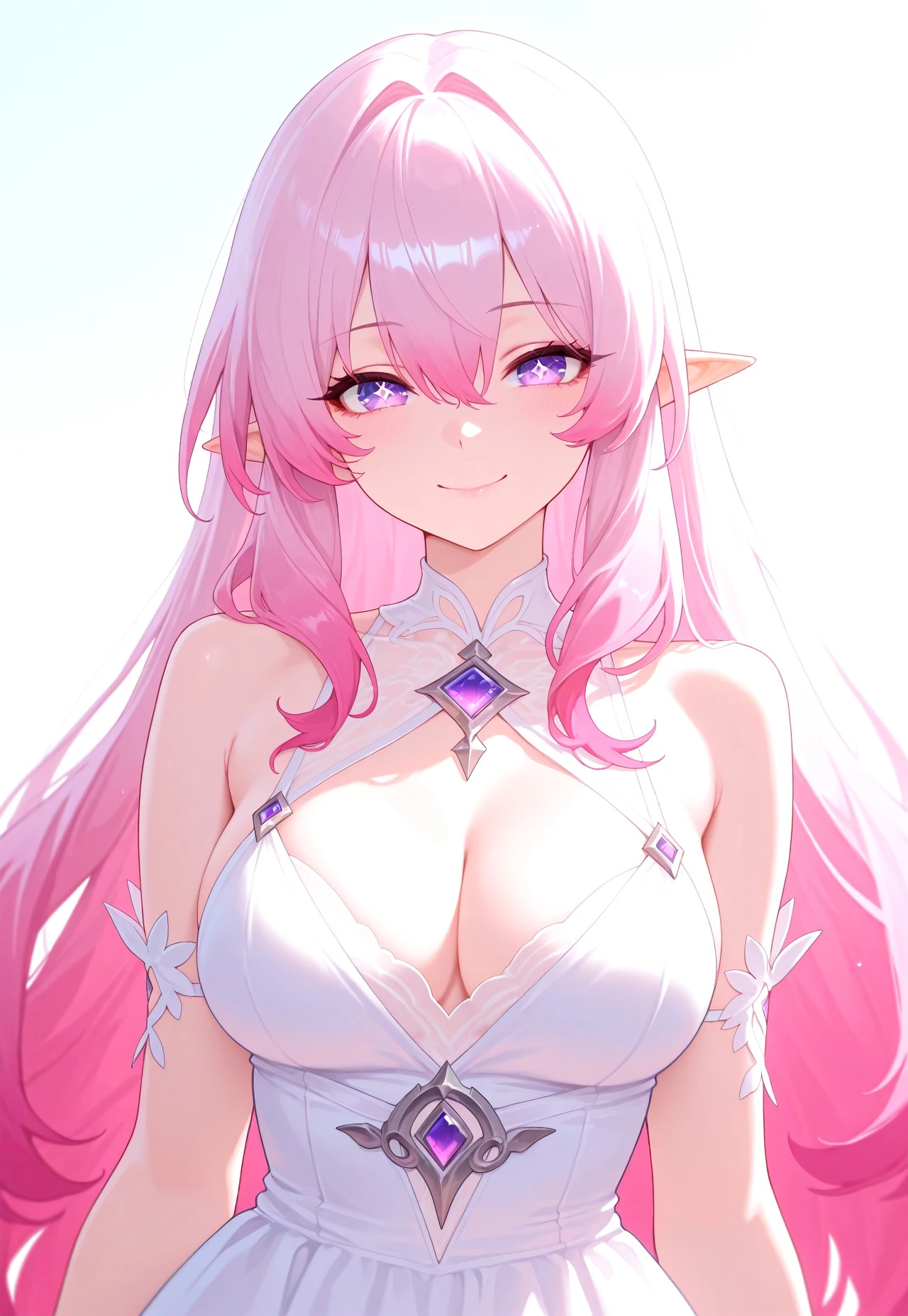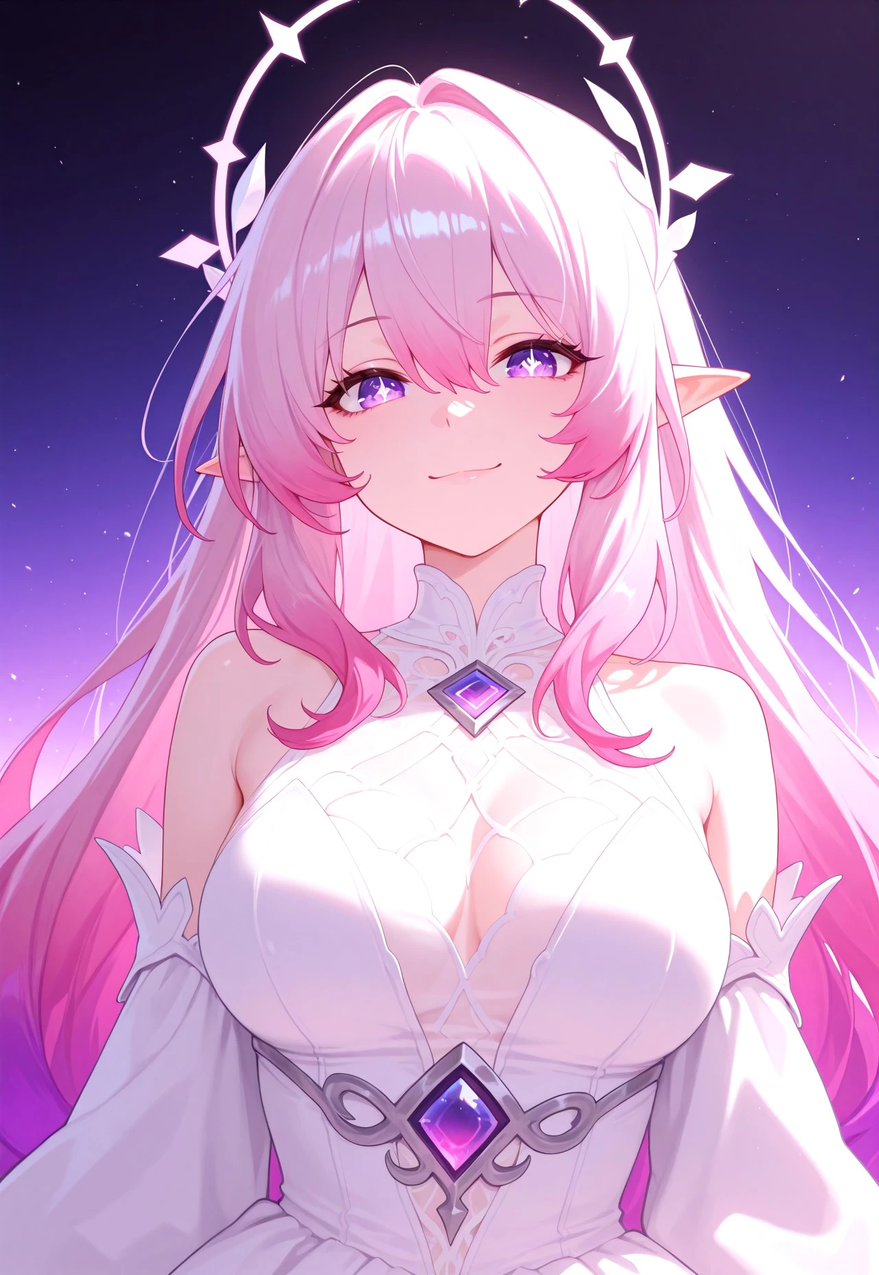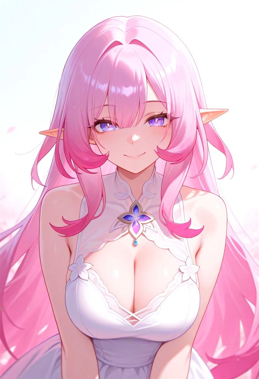 hsr_cyrene, large breasts, long hair, very long hair, pink hair, pointy ears, gradient hair, teal hair at tip