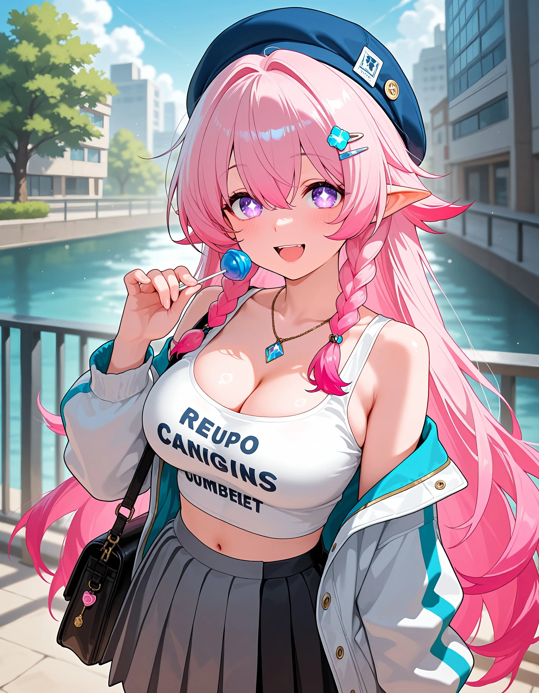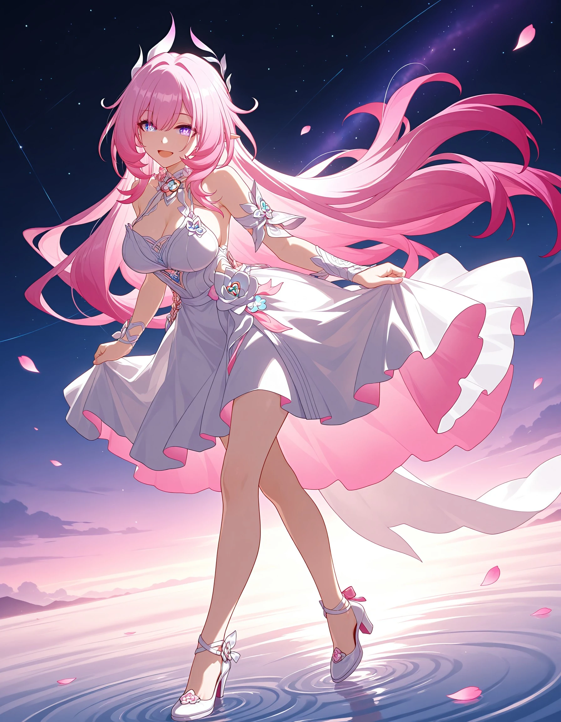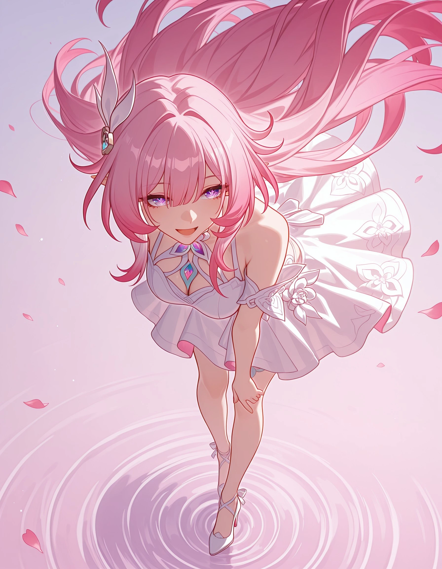 hsr_cyrene, large breasts, long hair, very long hair, pink hair, pointy ears, gradient hair, teal hair at tip