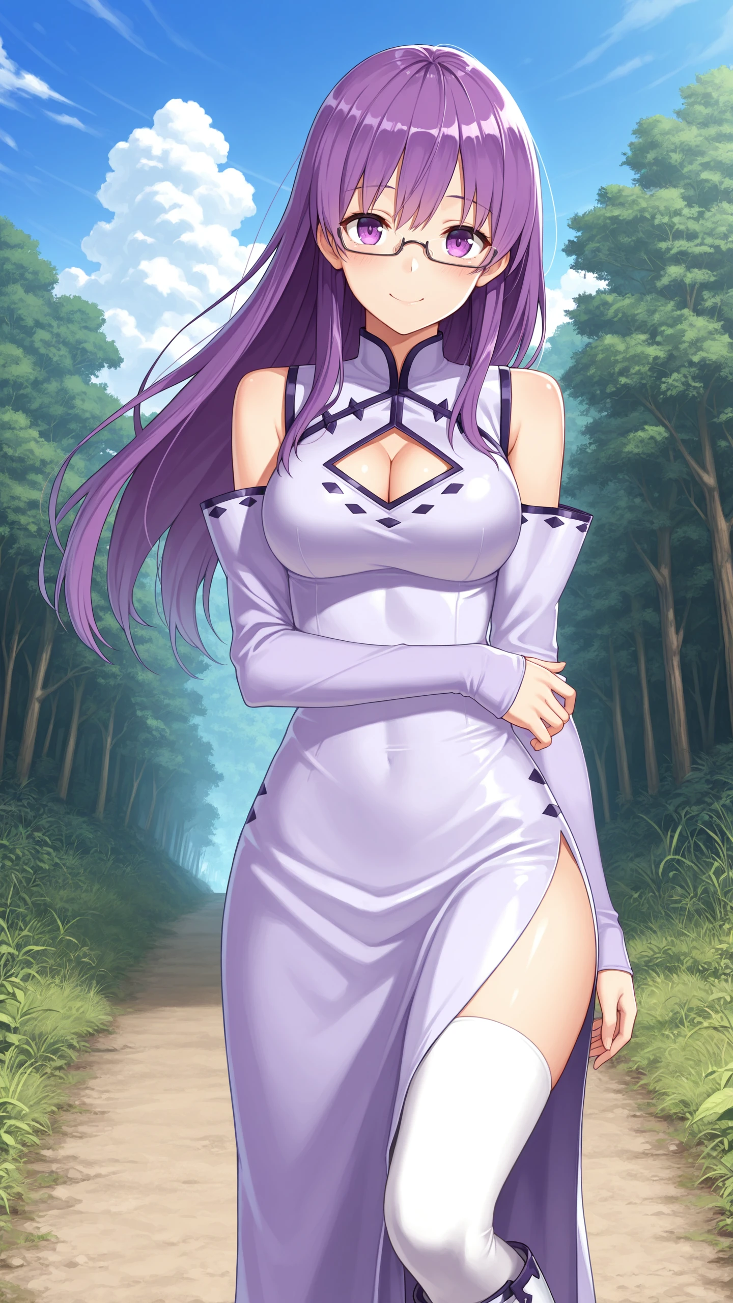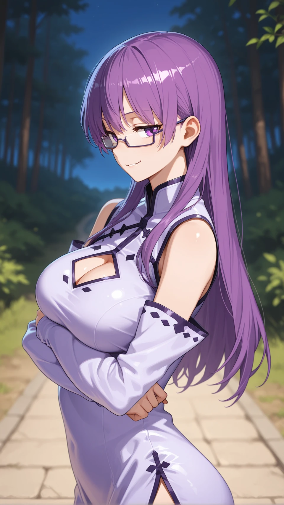 sh33le, purple hair, long hair, purple eyes, glasses, semi-rimless eyewear,