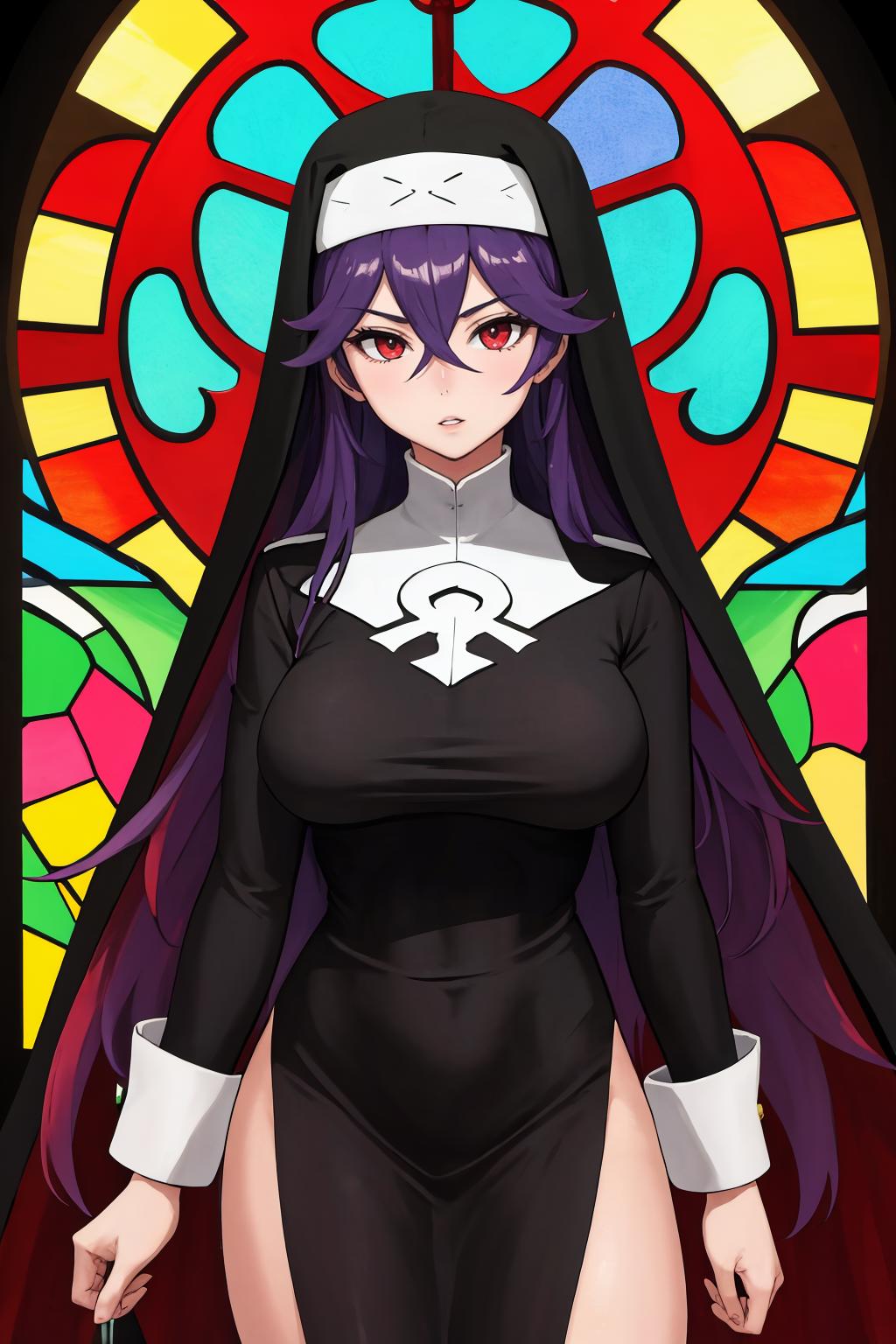 veronica, nun, habit, side slit, no panties, dress
