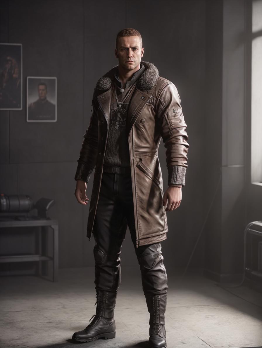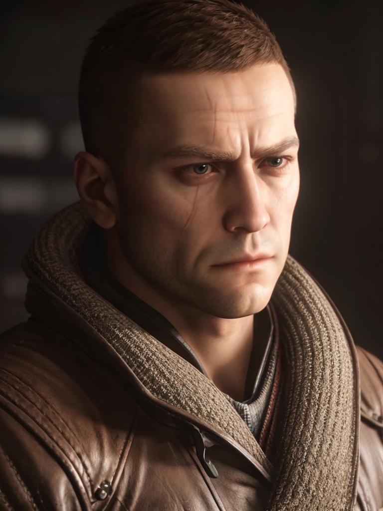 Example promts; wolfensteinblazko wearing a leather coat standing in a room / wolfensteinblazko with a subtle beard wearing a leather coat looking at something in the distance.