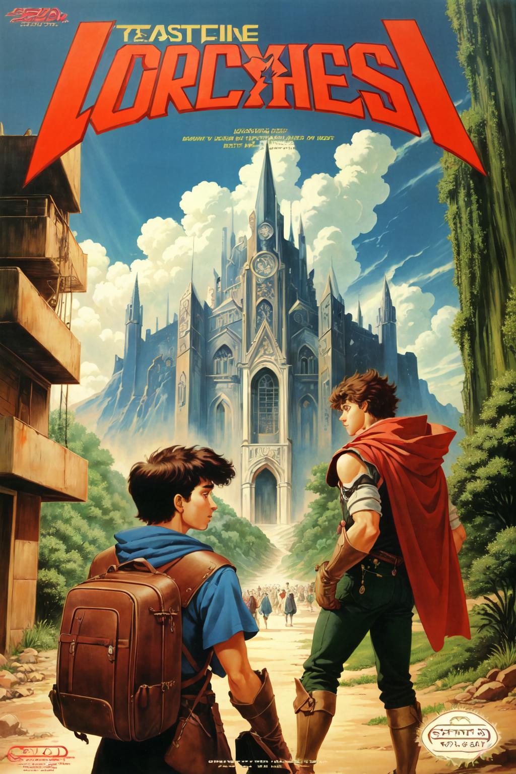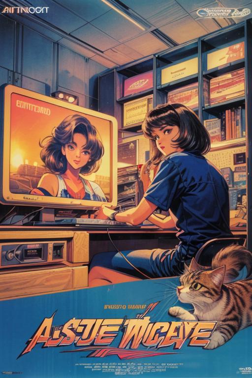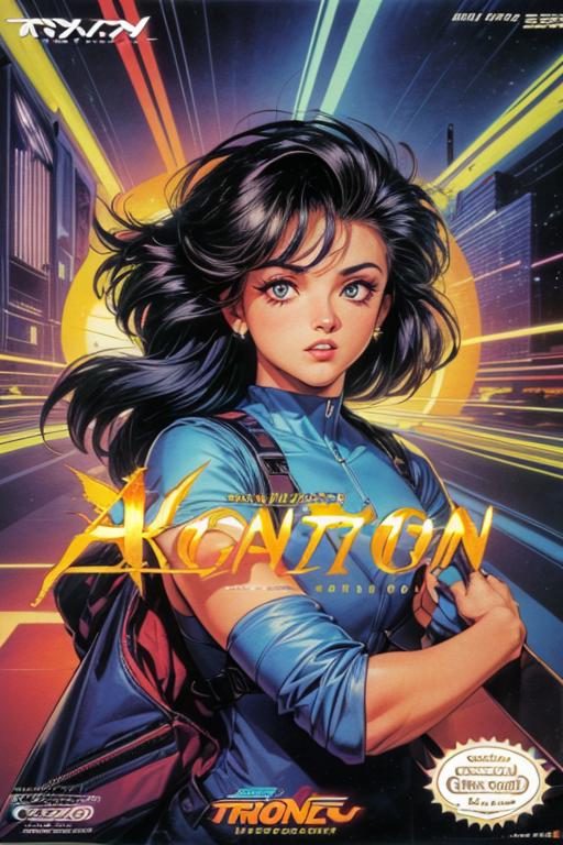 logo, English text, 1980s /(style/), copyright name,retro artstyle