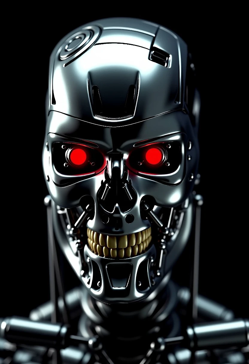 an UpgradedT800_Endo Terminator Robot with red eyes