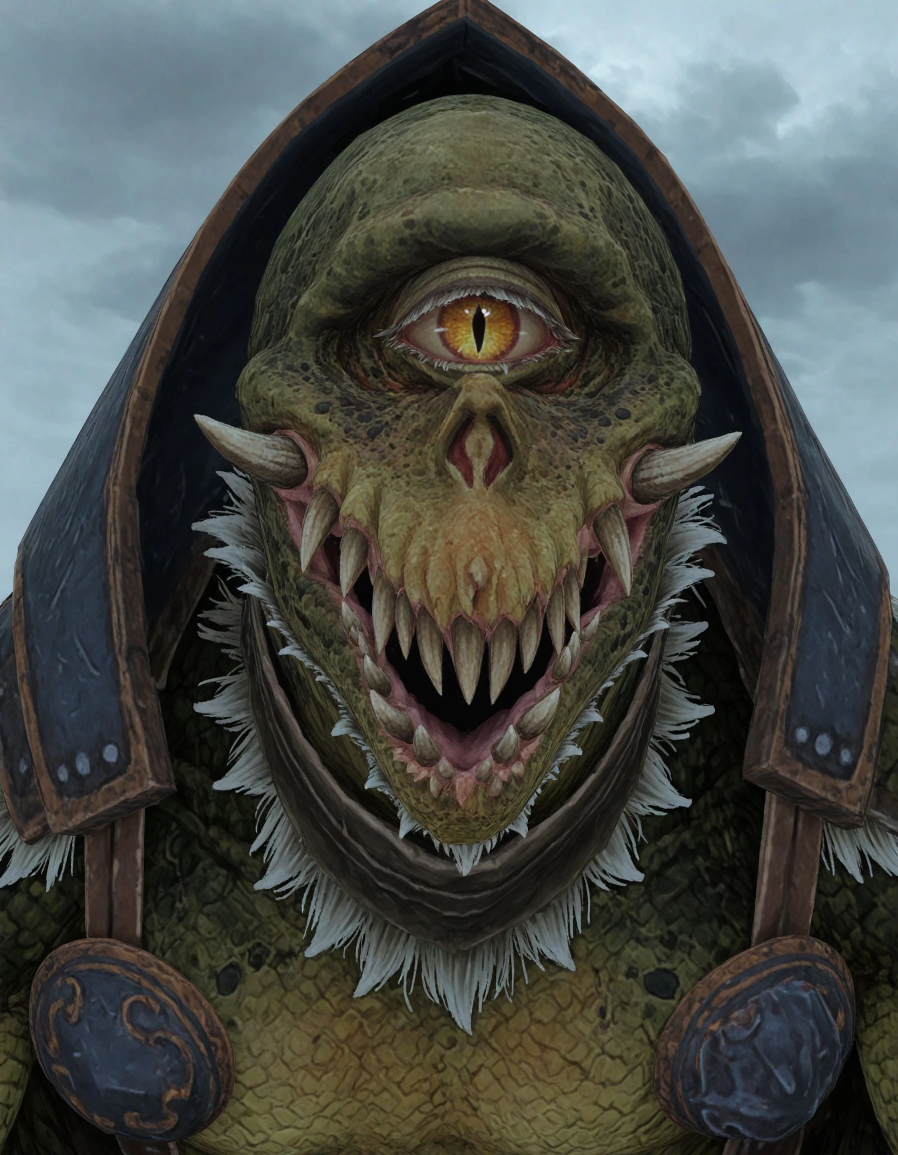 FimirWarrior, cyclops, yellow eye, monster, scales,