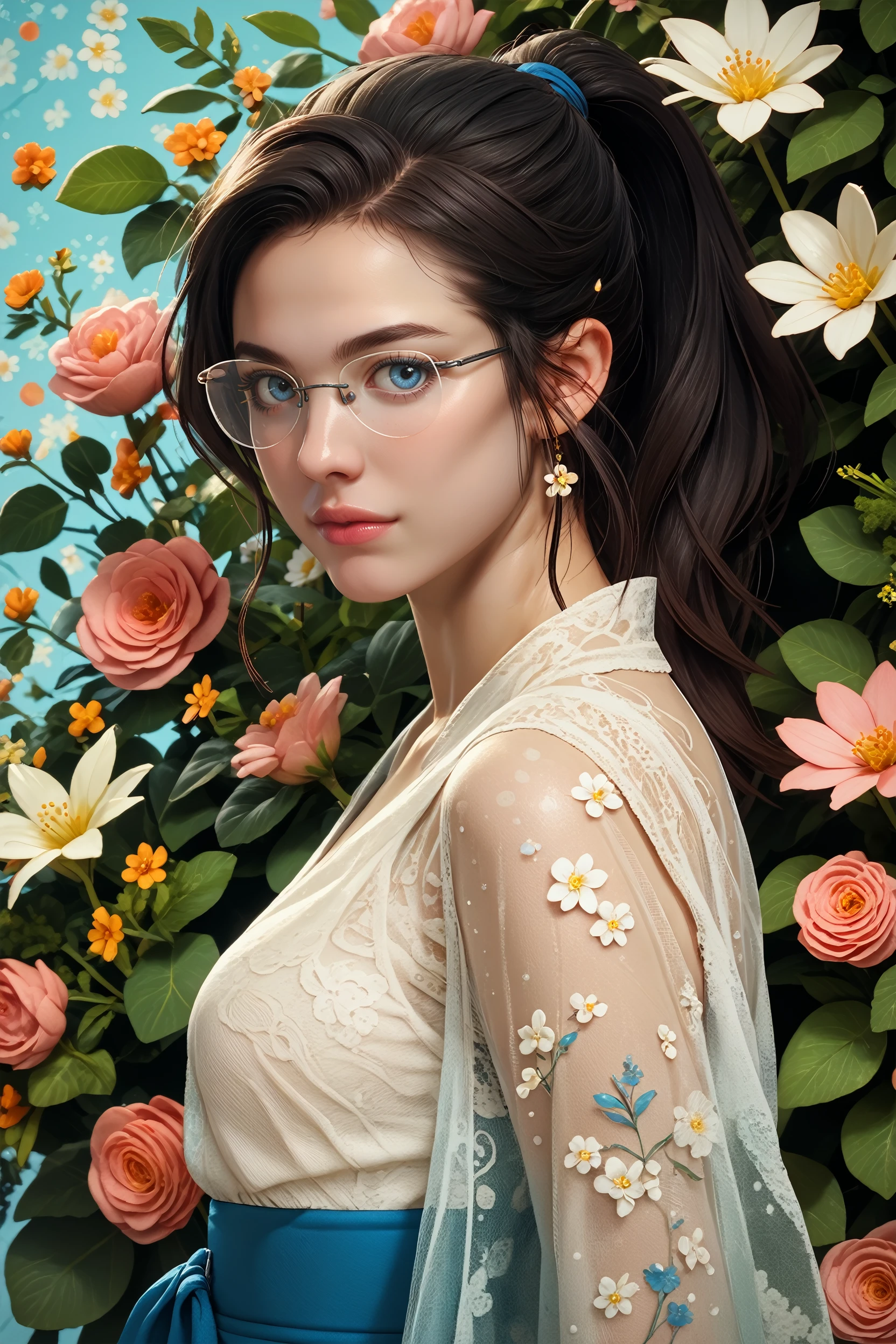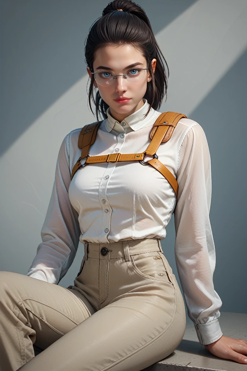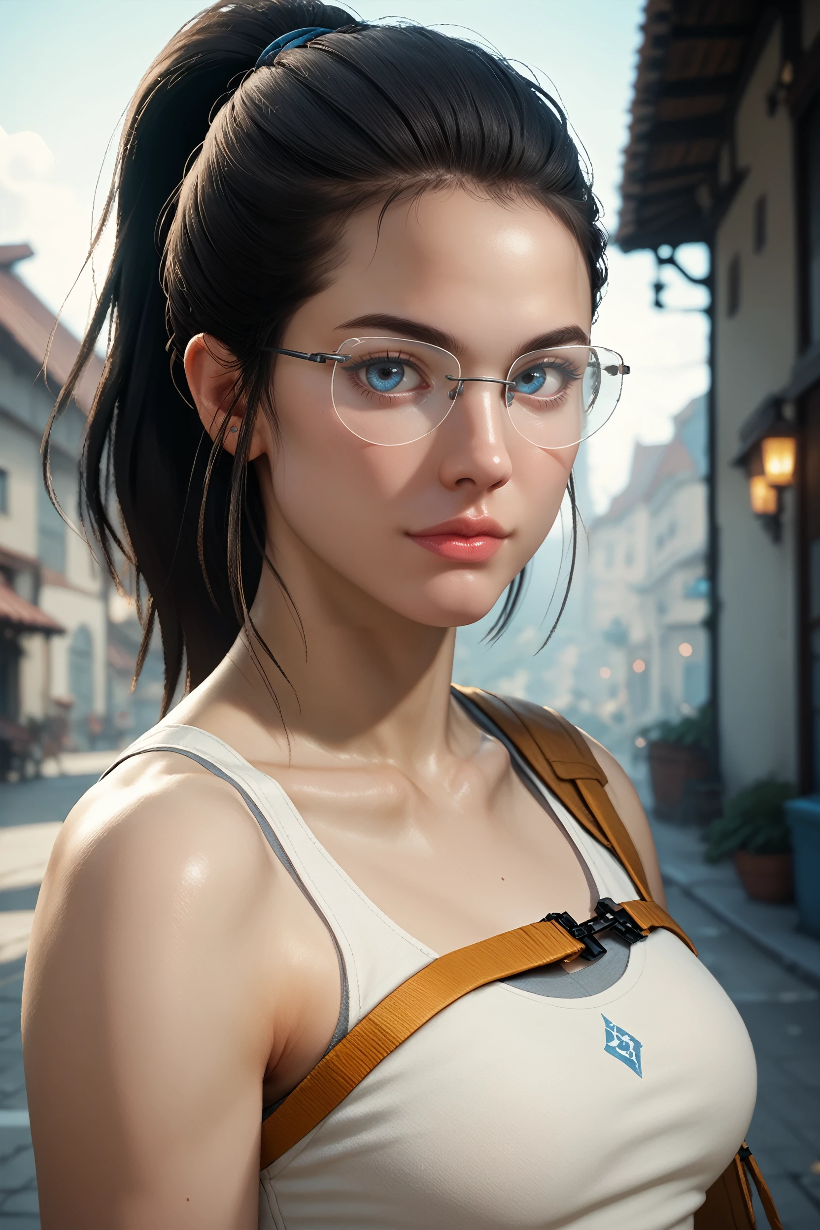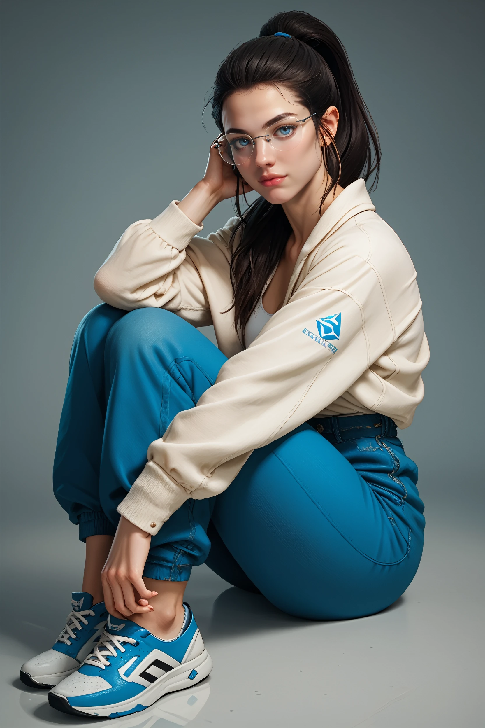 DSMama, 1girl, black hair, ponytail, long hair, blue eyes, glasses