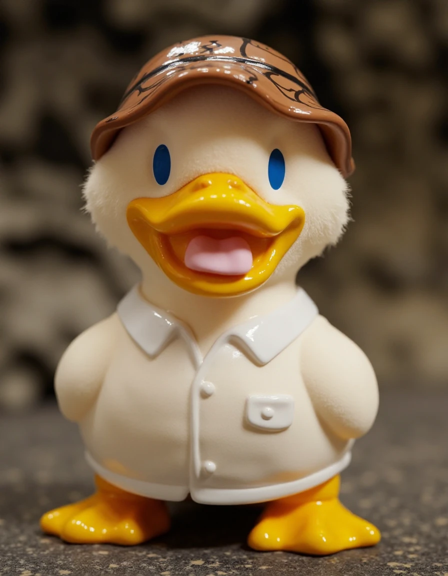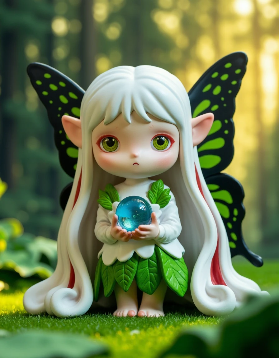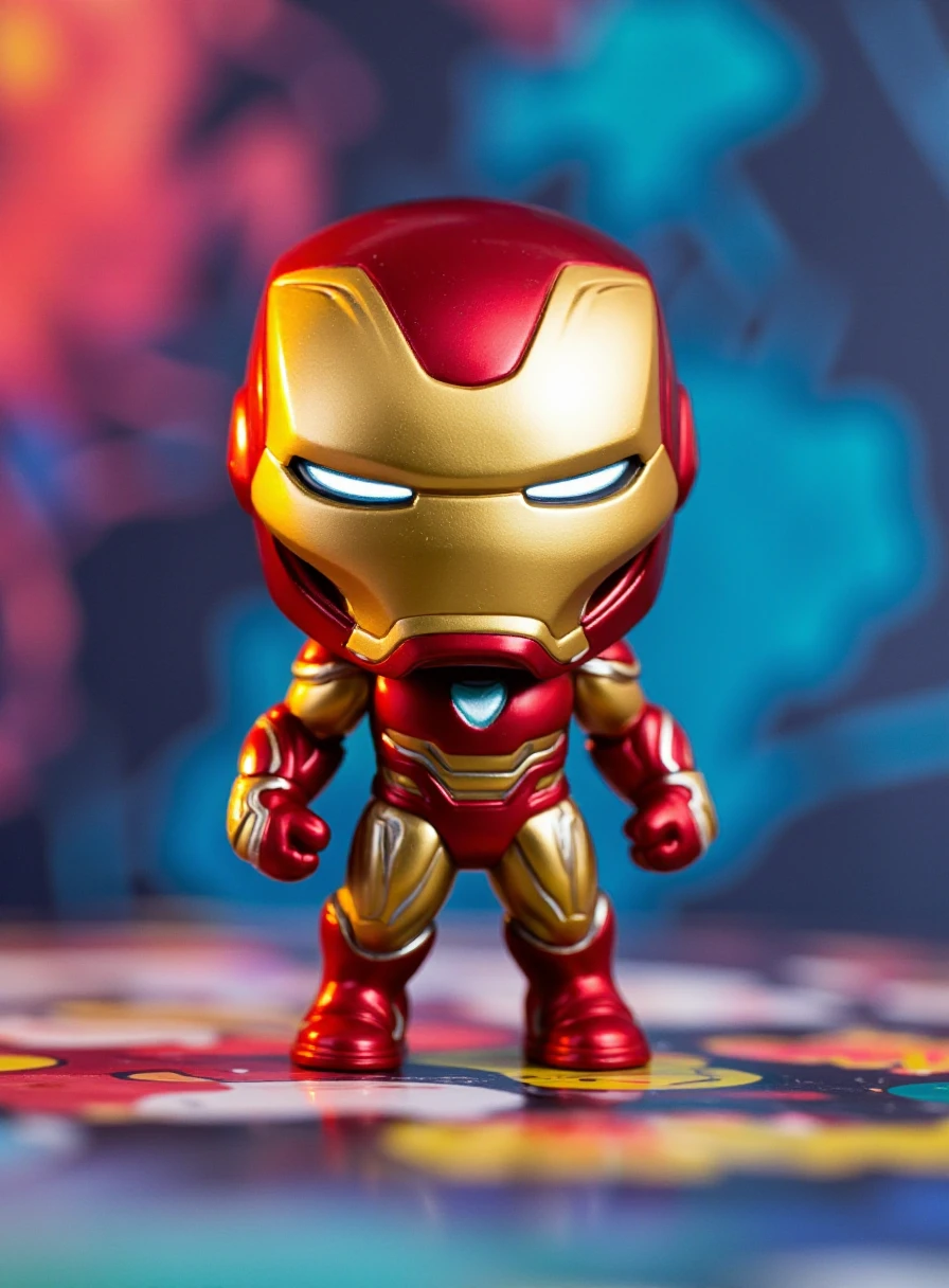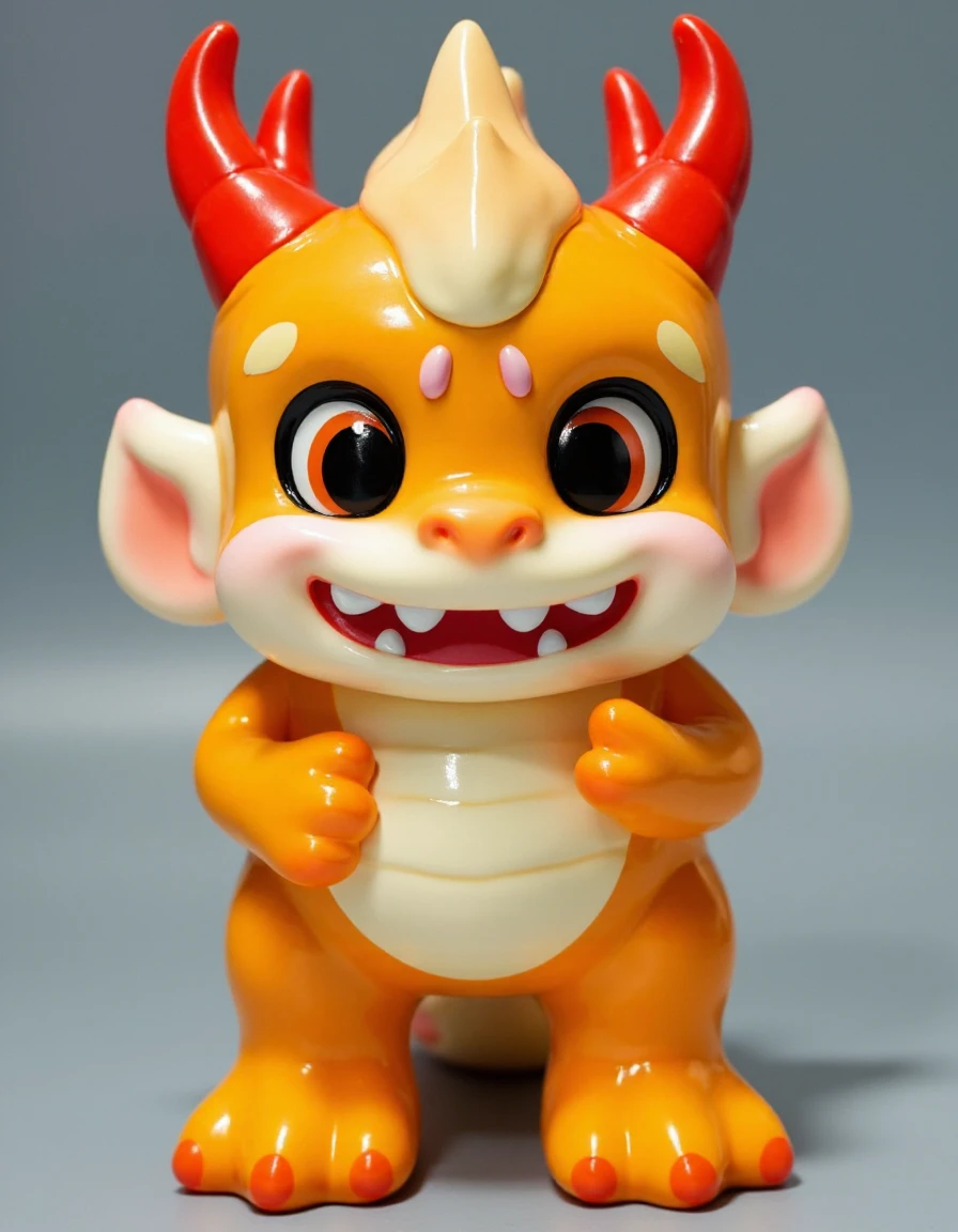 popmart, blindbox, A girl with black hair and a red polka-dot headscarf stands near an oven <lora:blindbox_flux_lora_v2:1>