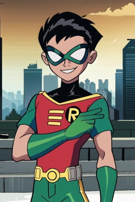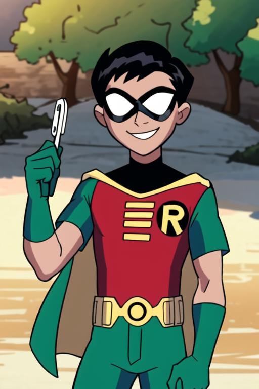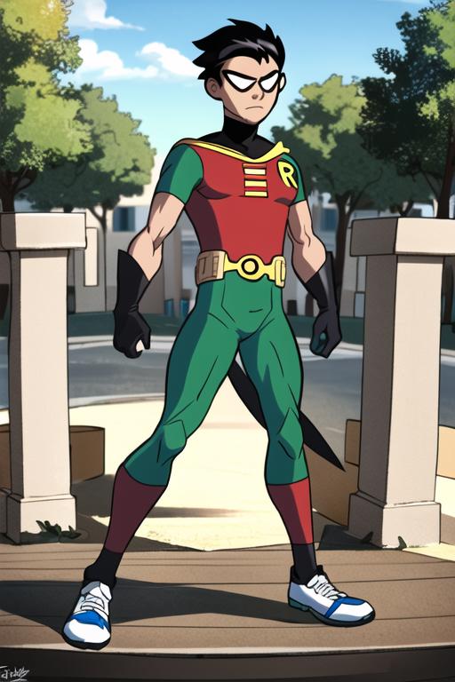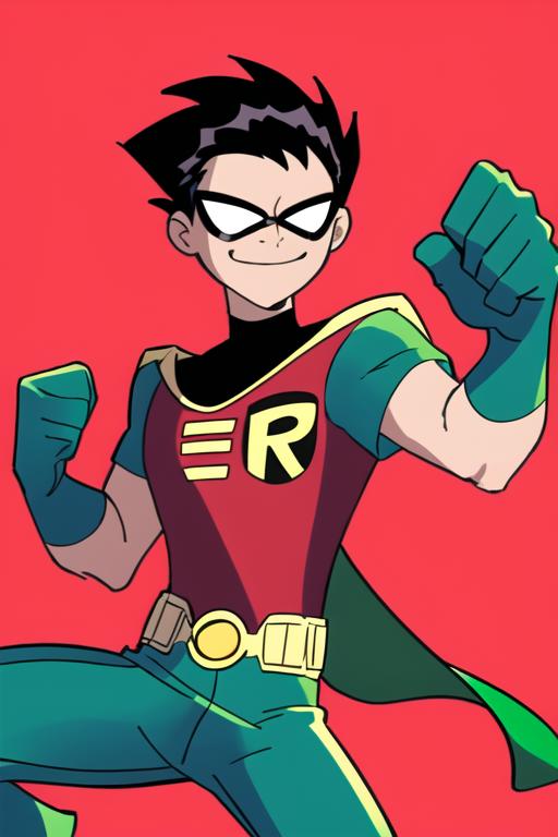 robin_tt 1boy,solo,short sleeves,green pants,domino maskWould you like to have a model of a character? Contact me; I can assist you