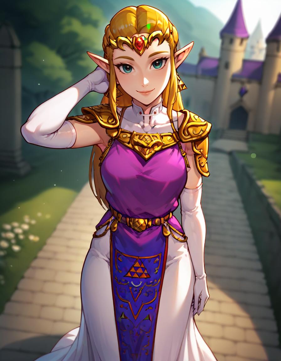 Princess Zelda LORA trained on Pony Diffusion V6 SDXL.