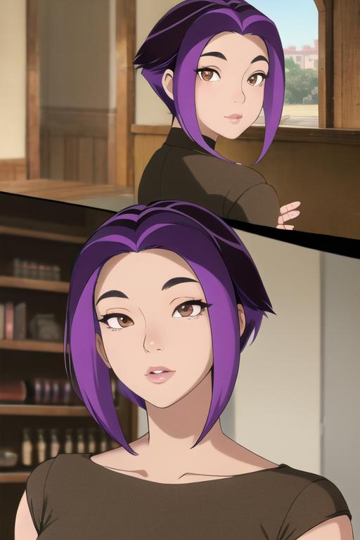 akimakunimoto, purple hair, short hair, brown eyesRecommended weight ~0.7 - 1