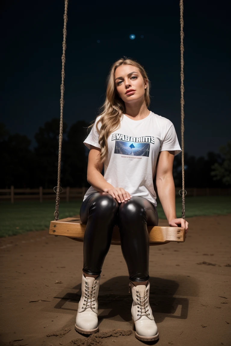 (best quality), (masterpiece), photo, realistic, <lora:MandyroseQuiron_v04i03e25t05_Lora:0.87> mandyroseQuiron woman, solo, Balancing on a tree branch, she reaches for a blooming blossom, her grace defying gravity, Alexander Wang black leather biker vest, wrestlingNegative prompt: