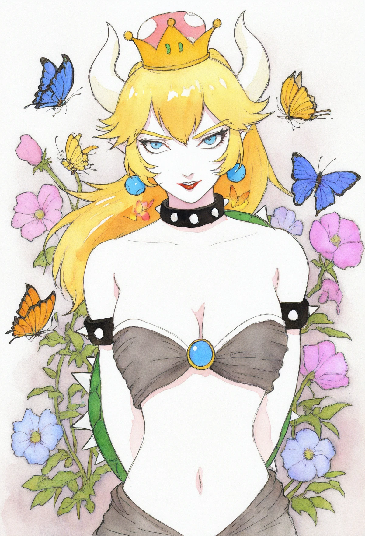 flower, weapon, jewelry, earrings, necklace, bracelet, cape, turban, hair ornament, lipstick, armor, bug, butterfly, wings, horns, dragonfly, snake, blood, helmet, headpiece, skullBe mindful of negative prompts/embeddings, noticed my usual negatives caused predominantly orange backgrounds where there is none in the dataset.