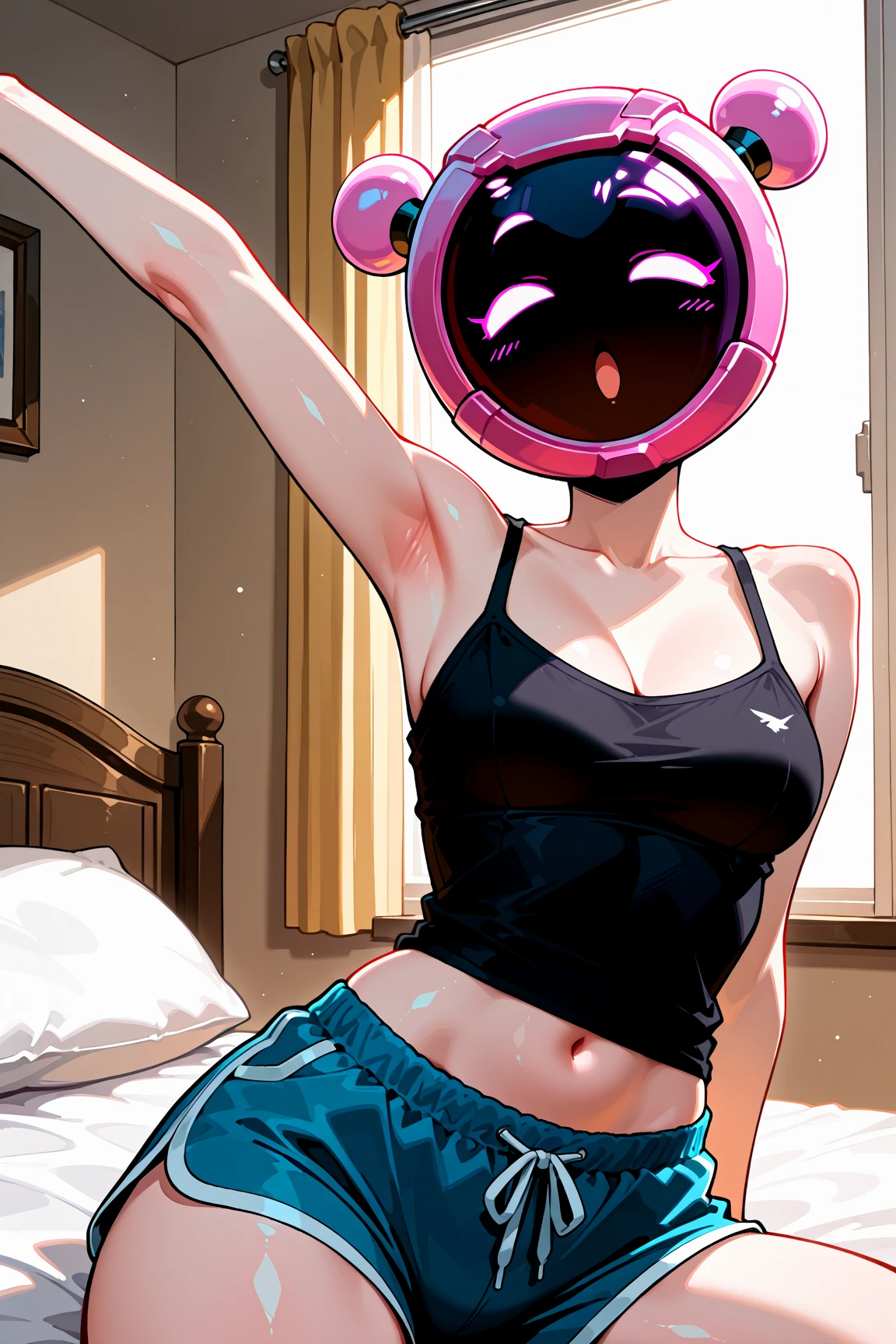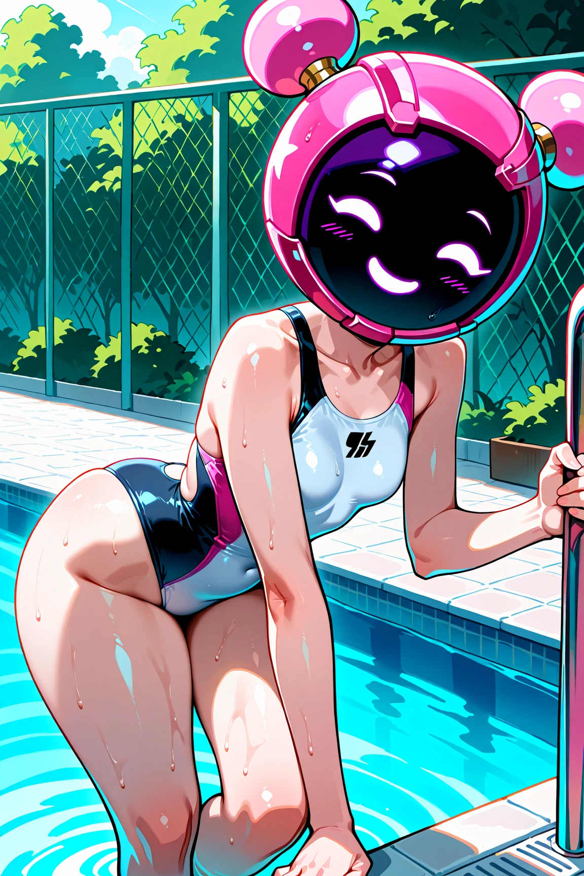 CTRider, pink eyes, mob face, no sclera, no pupils, pink helmet, covered face