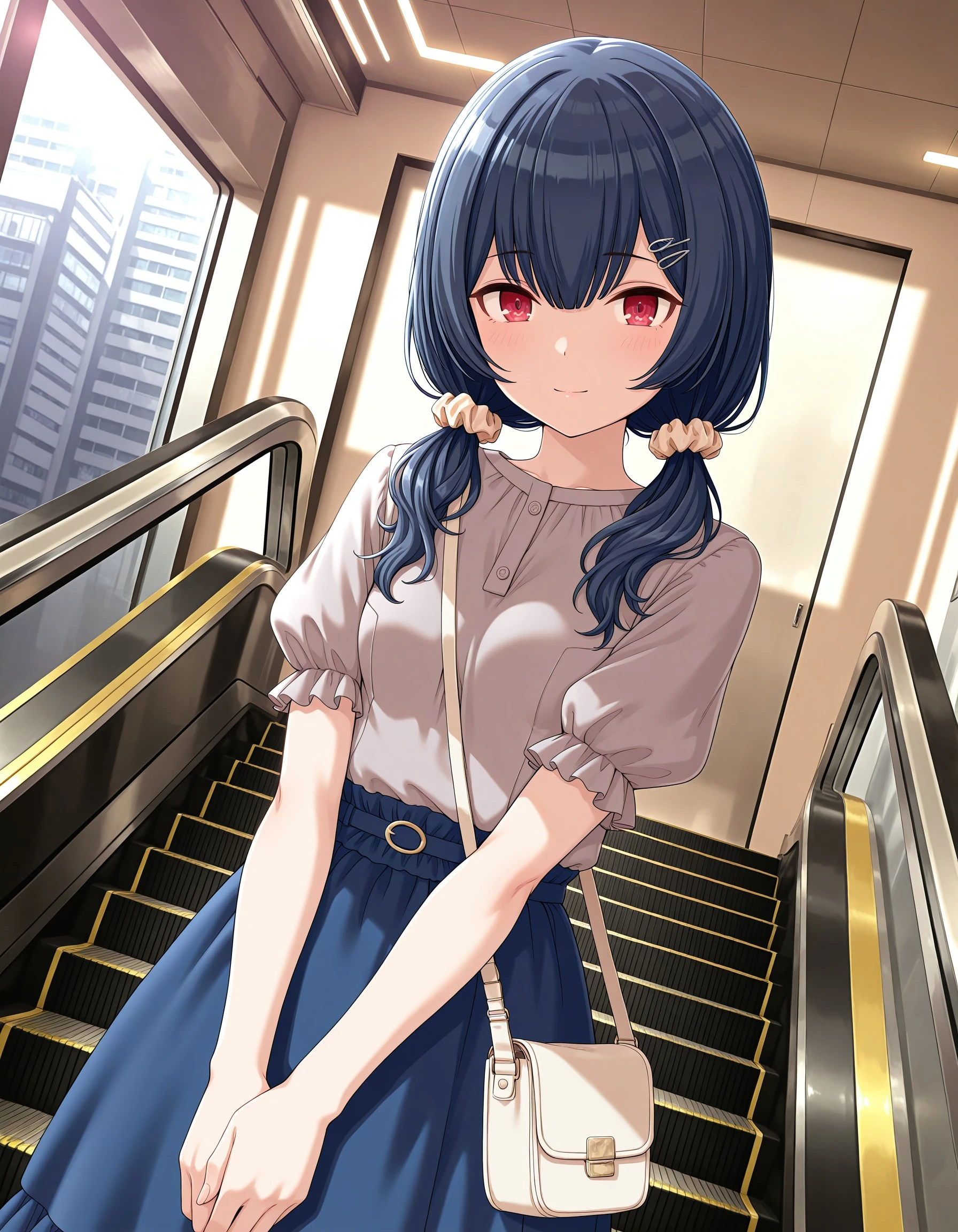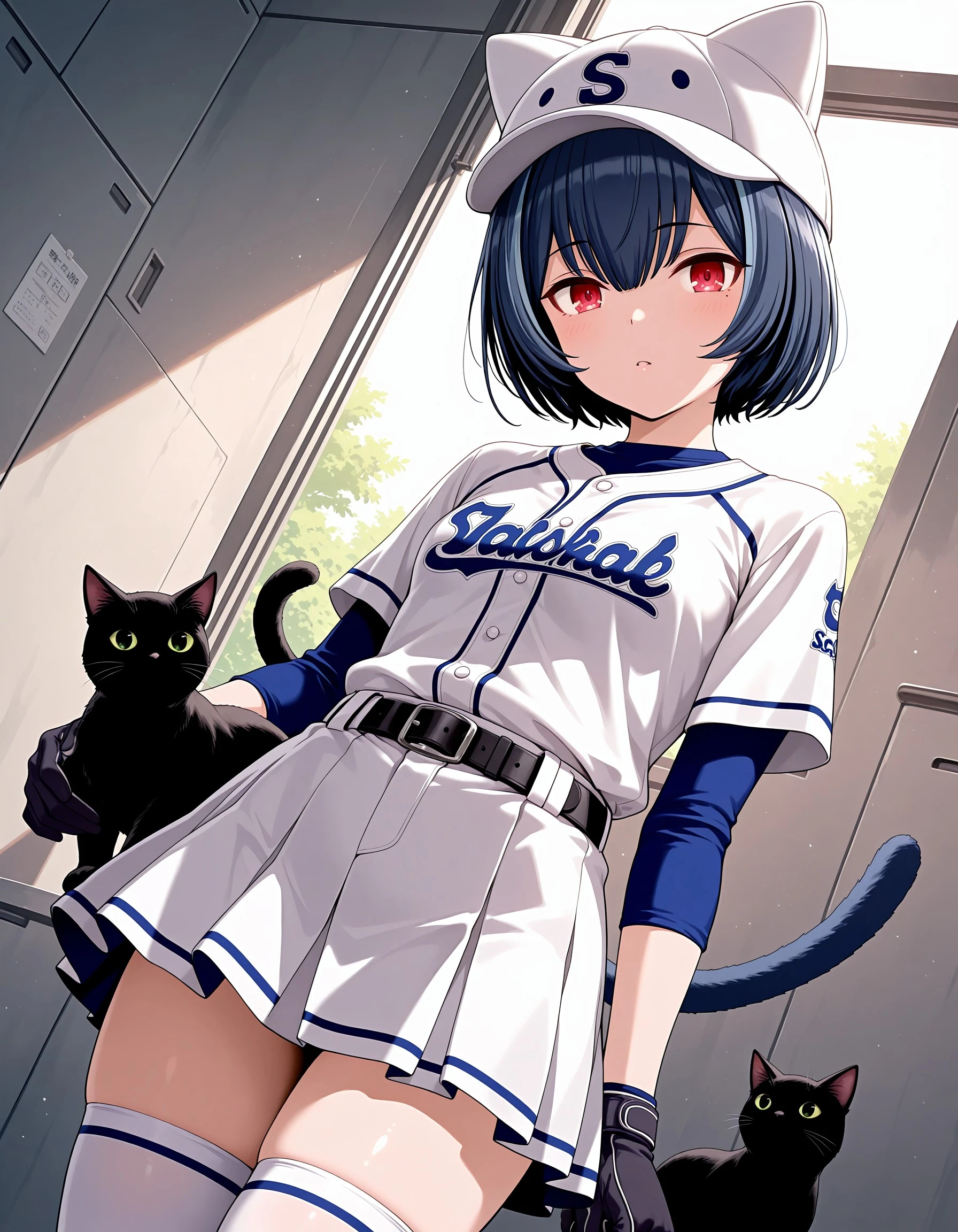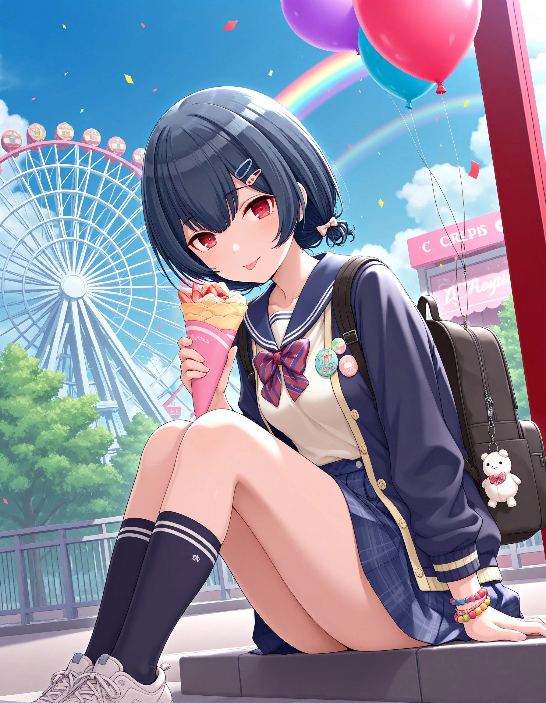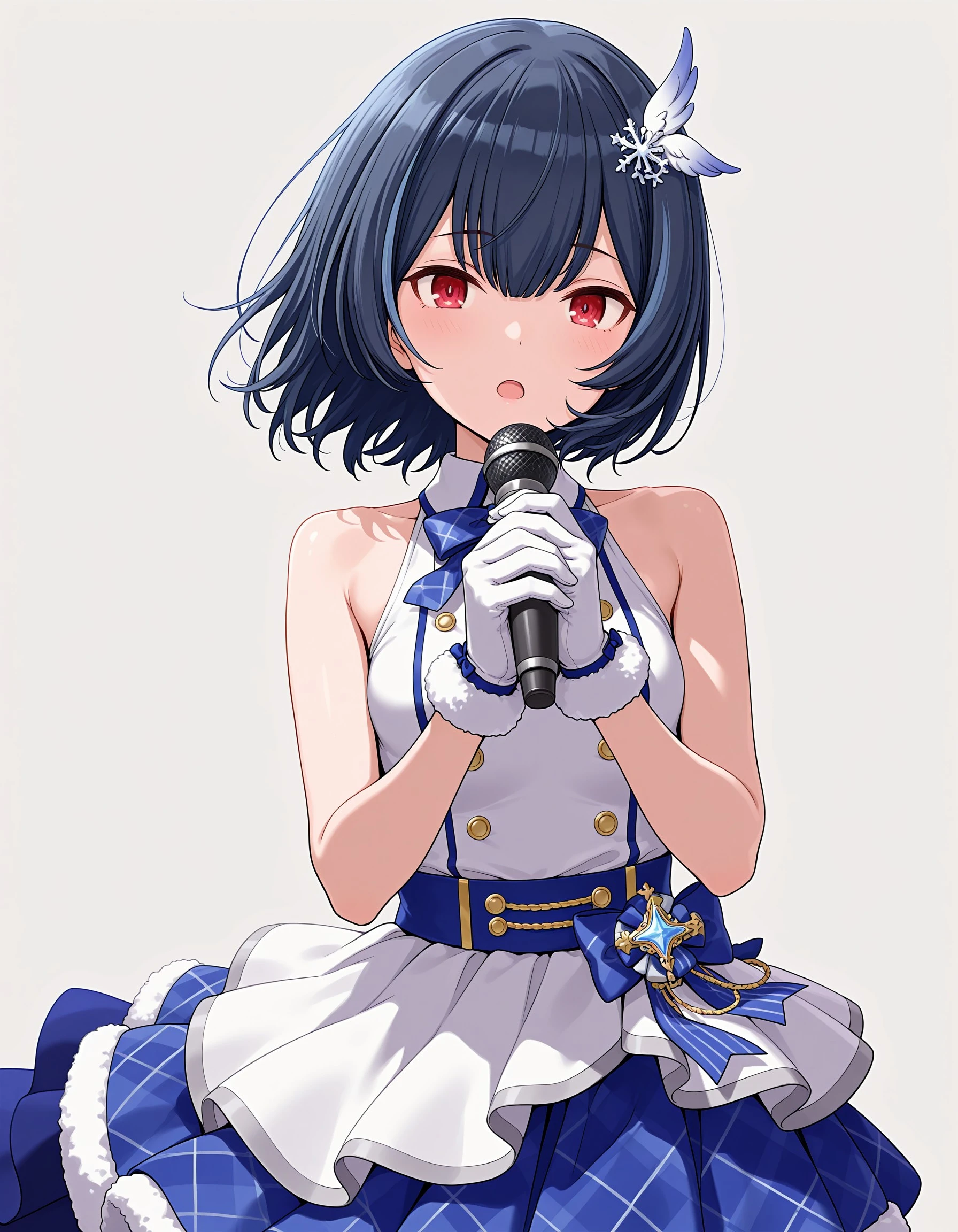 sc_rinze, black hair, blue hair, bangs, red eyes, small breasts