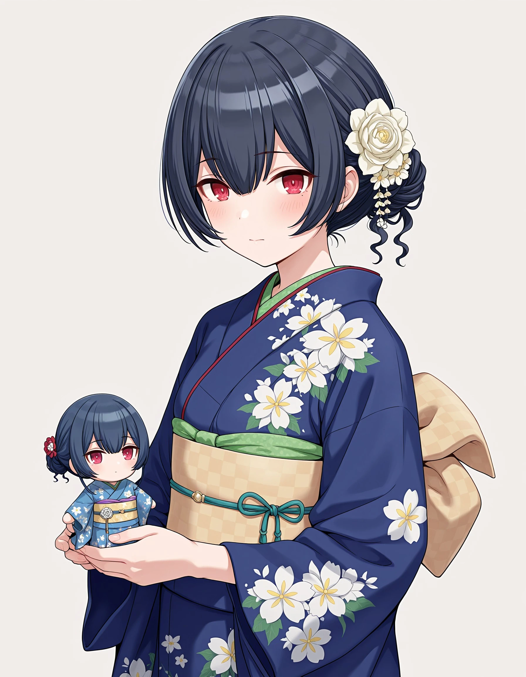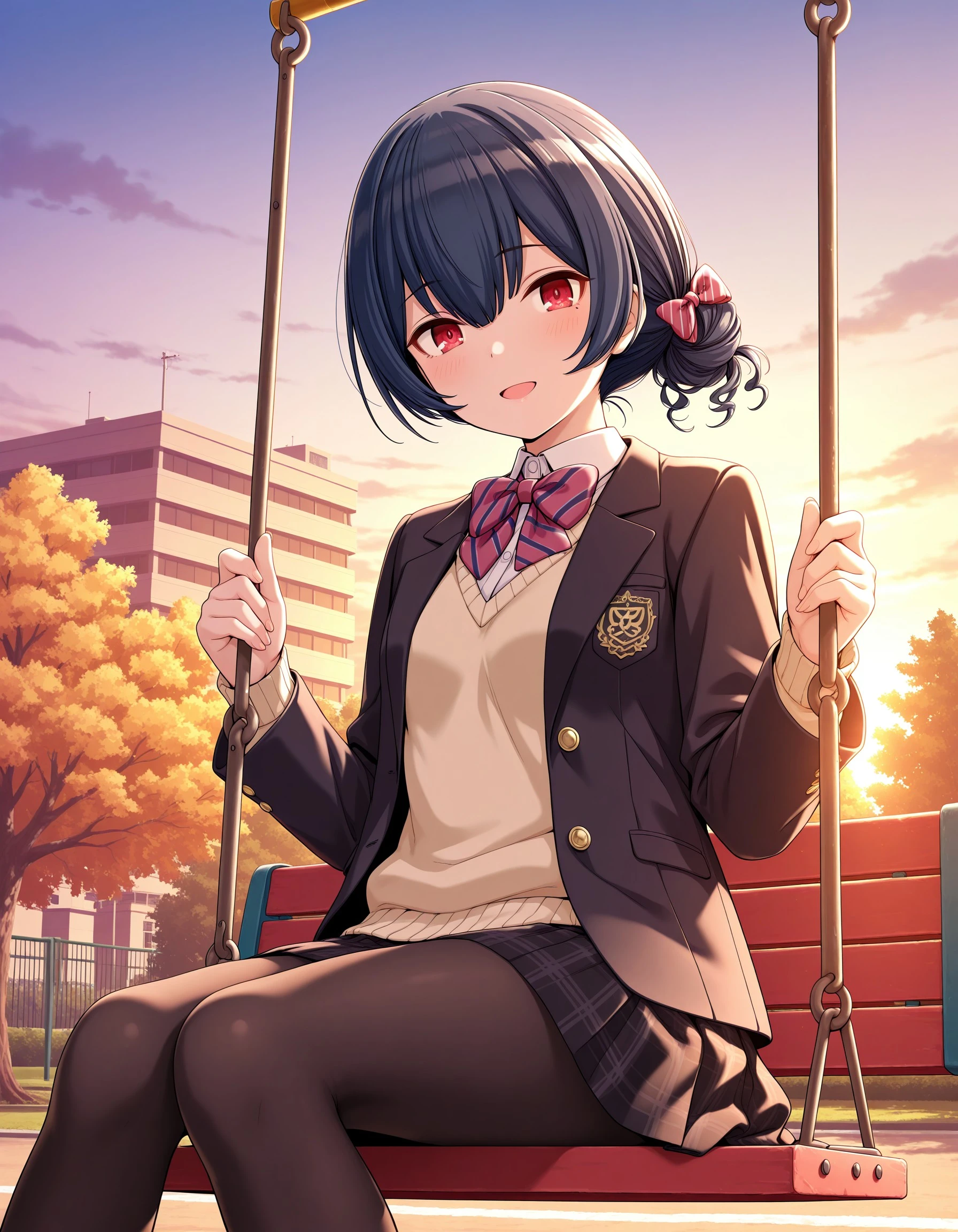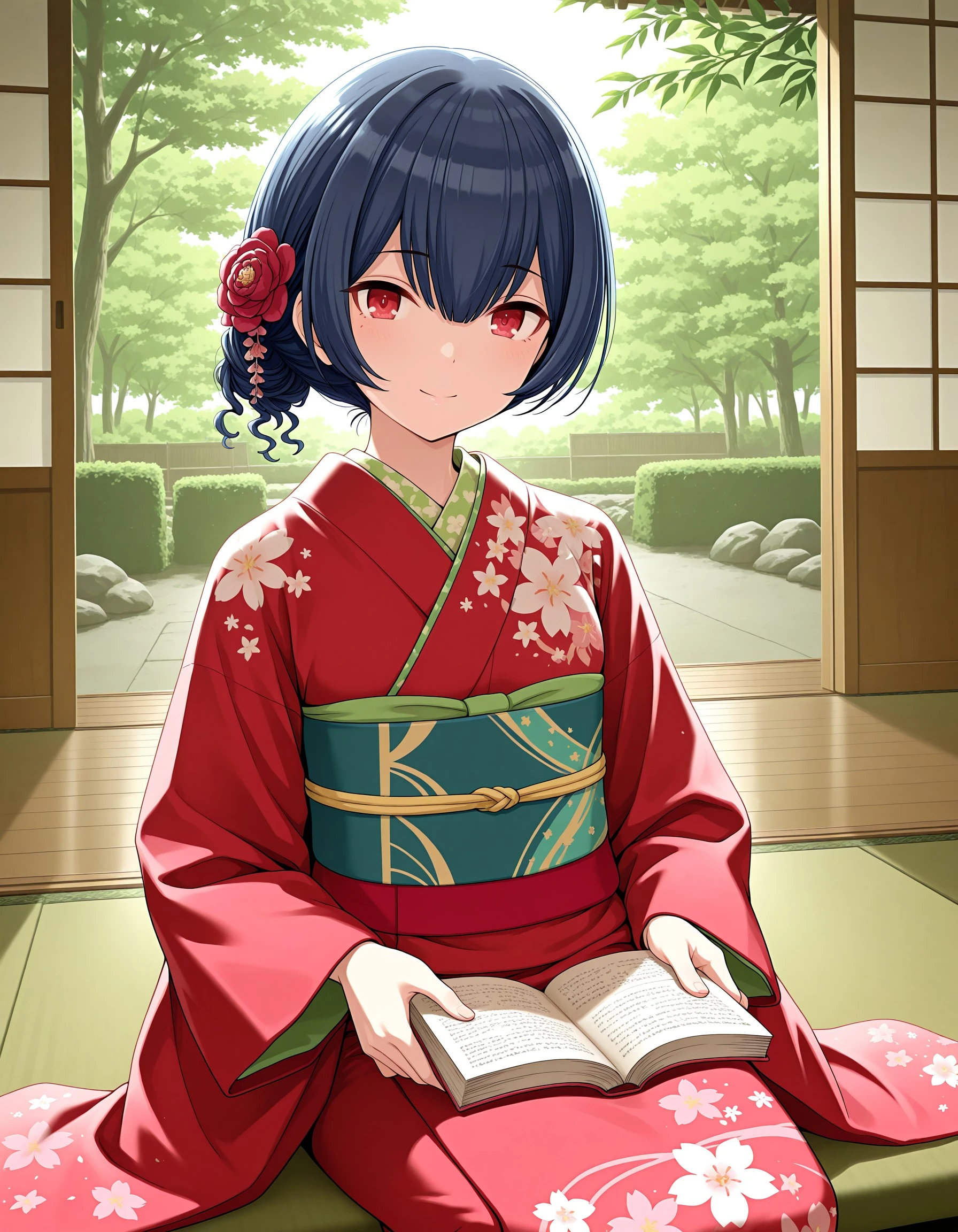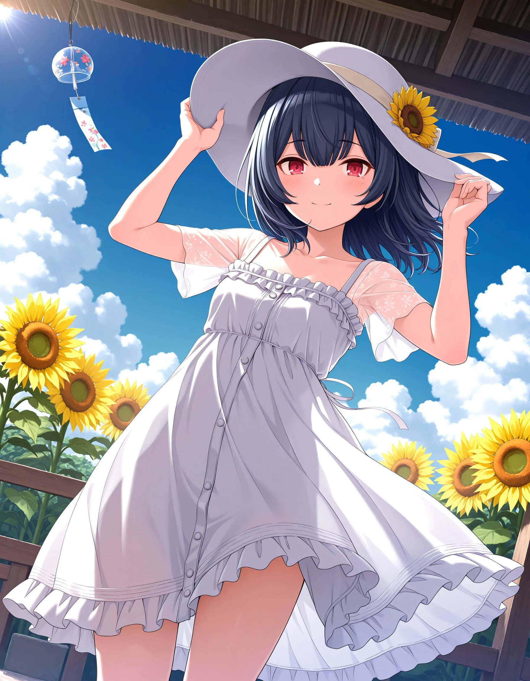 sc_rinze, black hair, blue hair, bangs, red eyes, small breasts