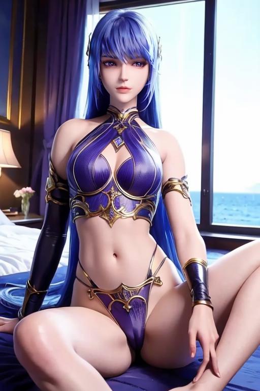 You can use caier, veil, thighhighs, purple hair, blue hair